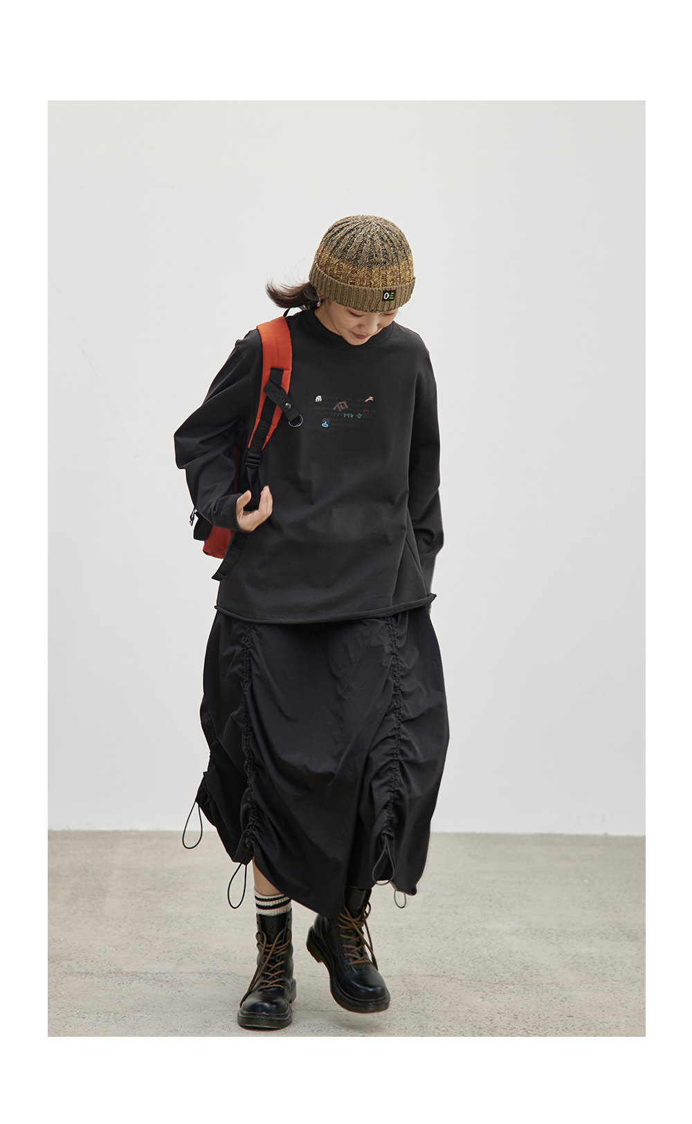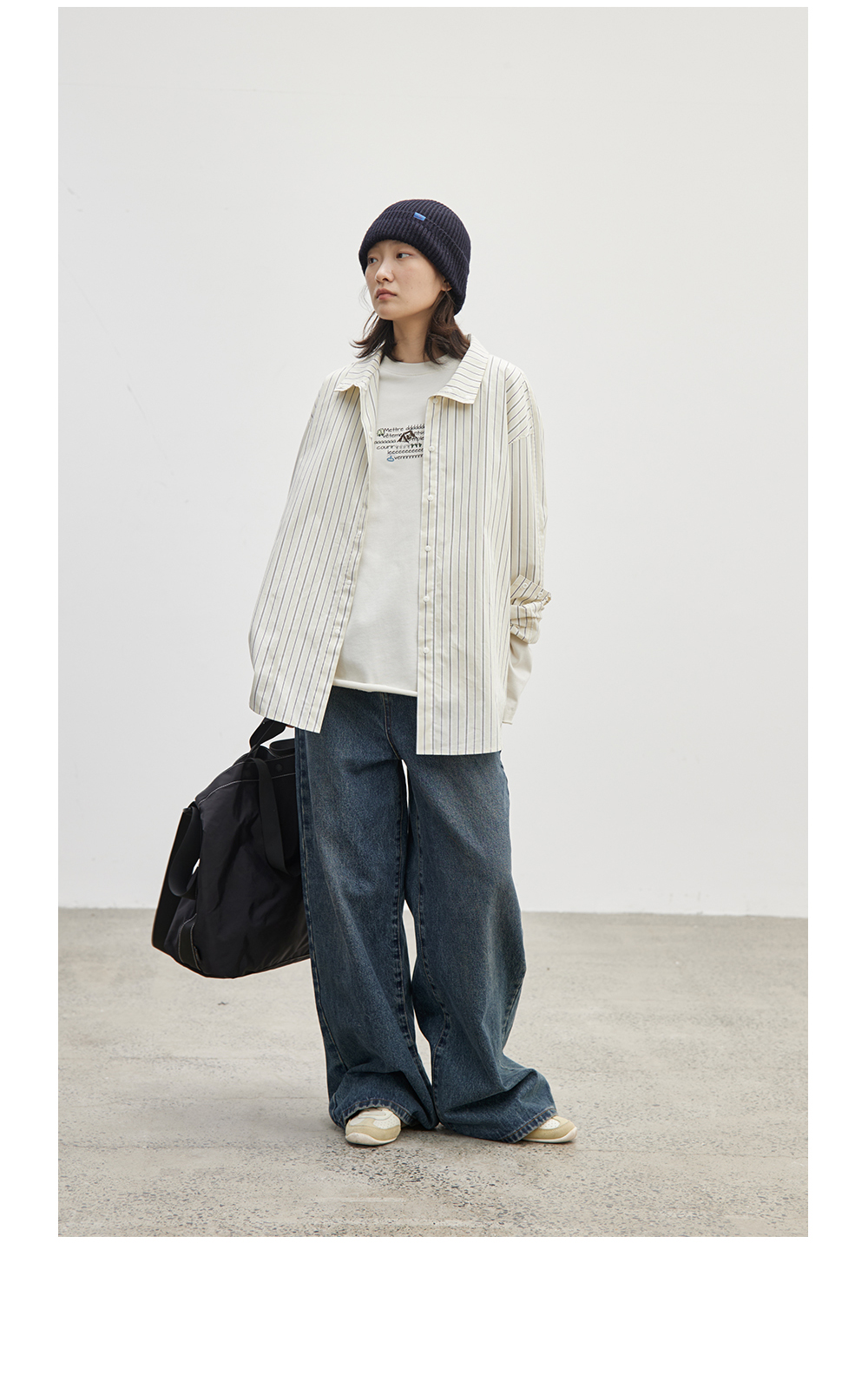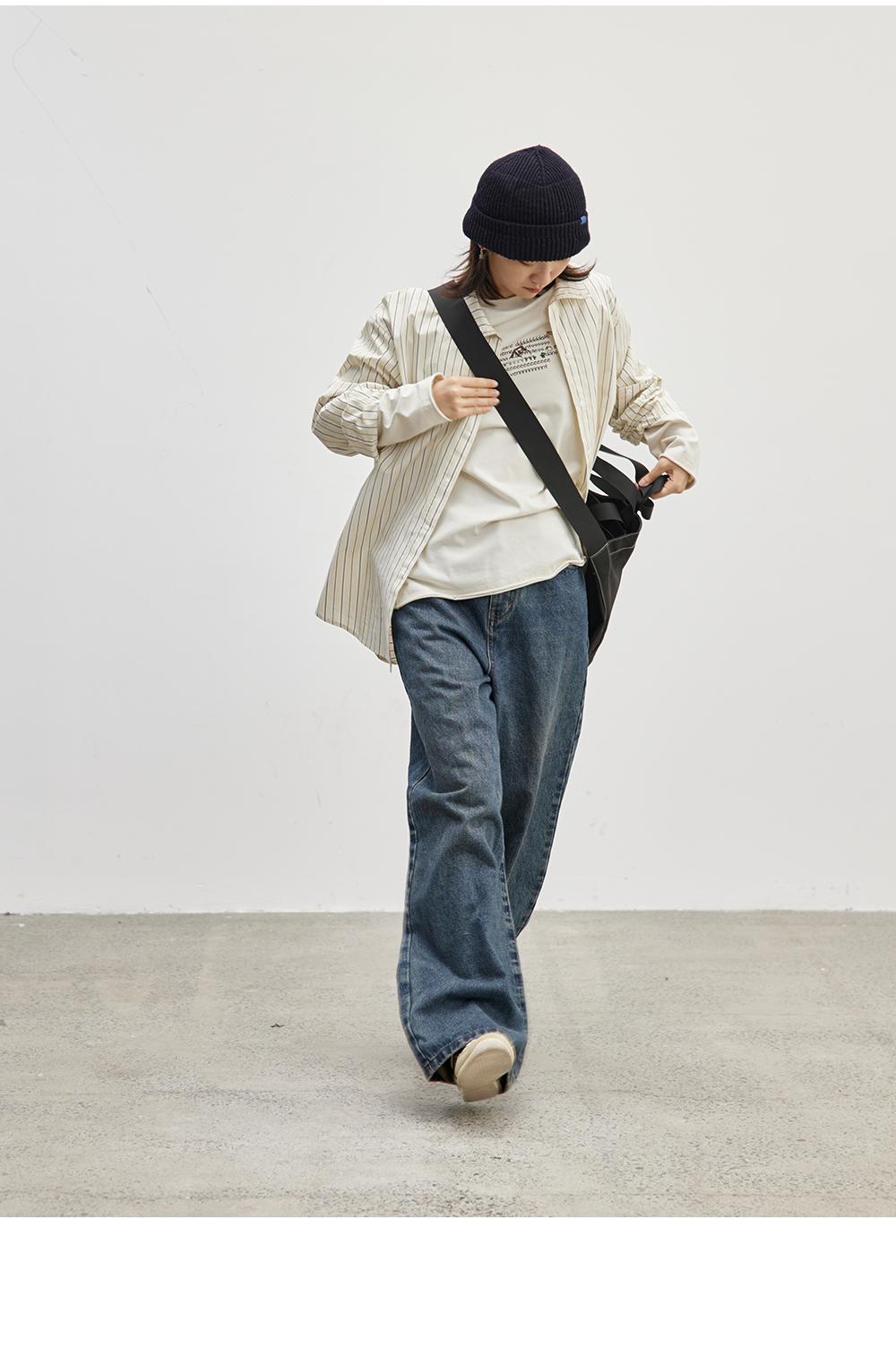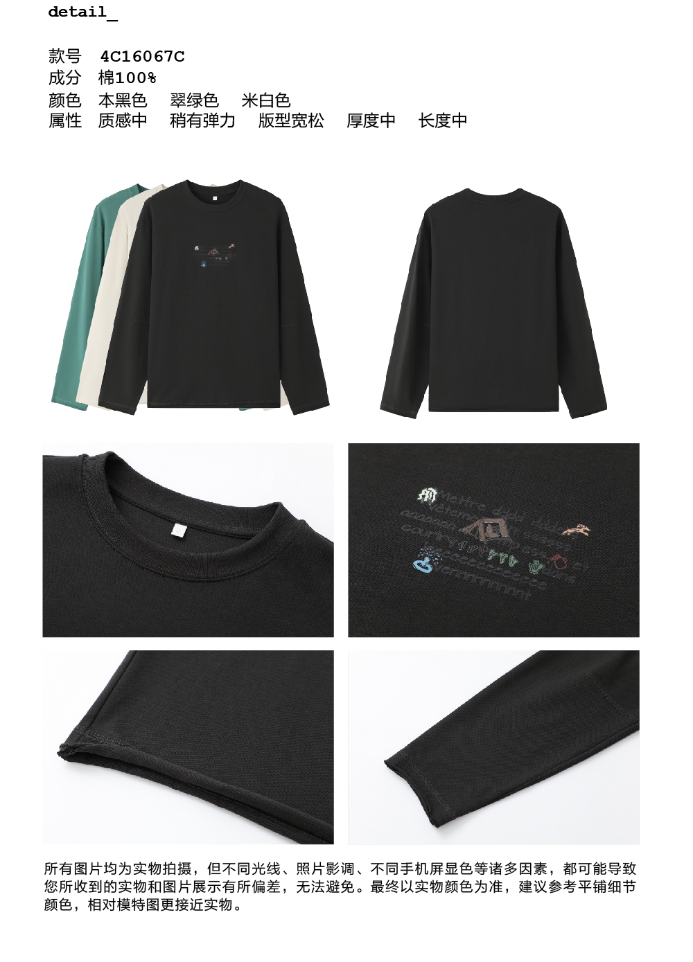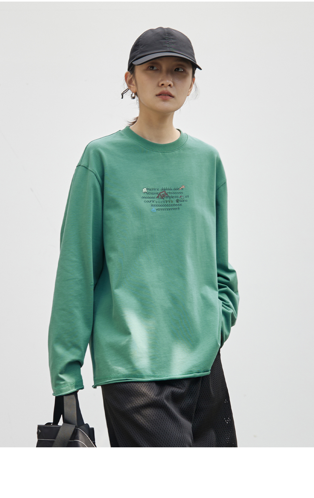 步履不停/4C16067C/慵懒印花图案白色长袖t恤