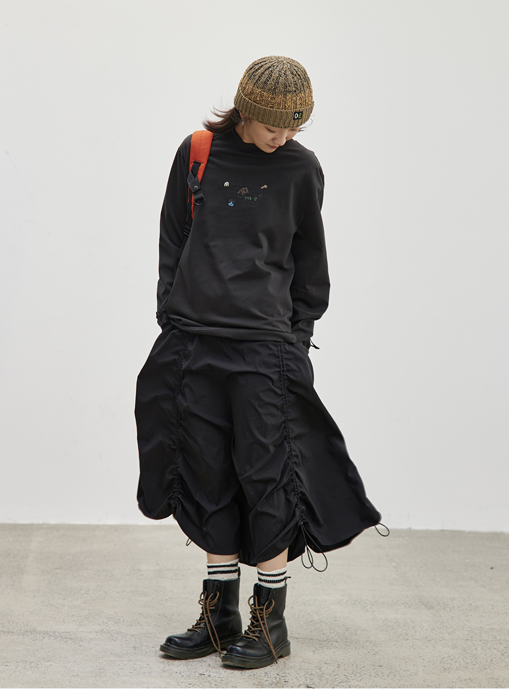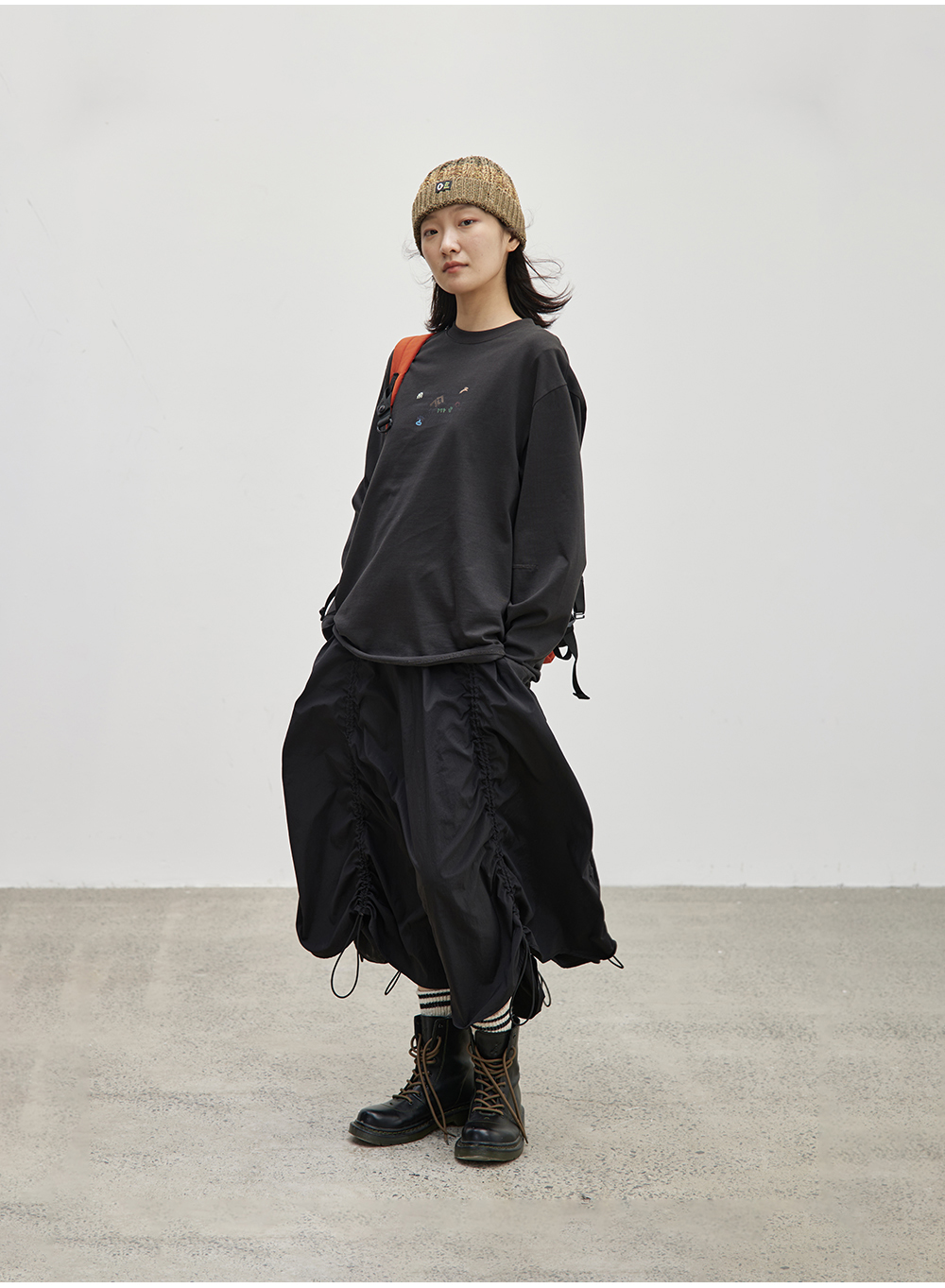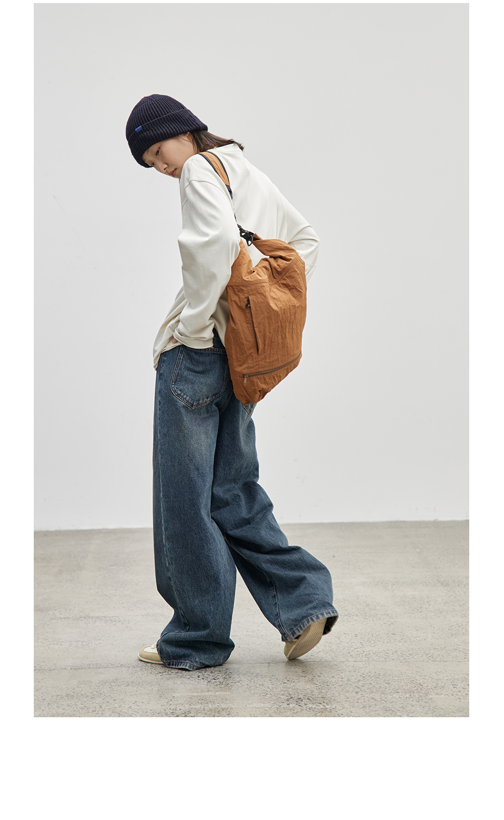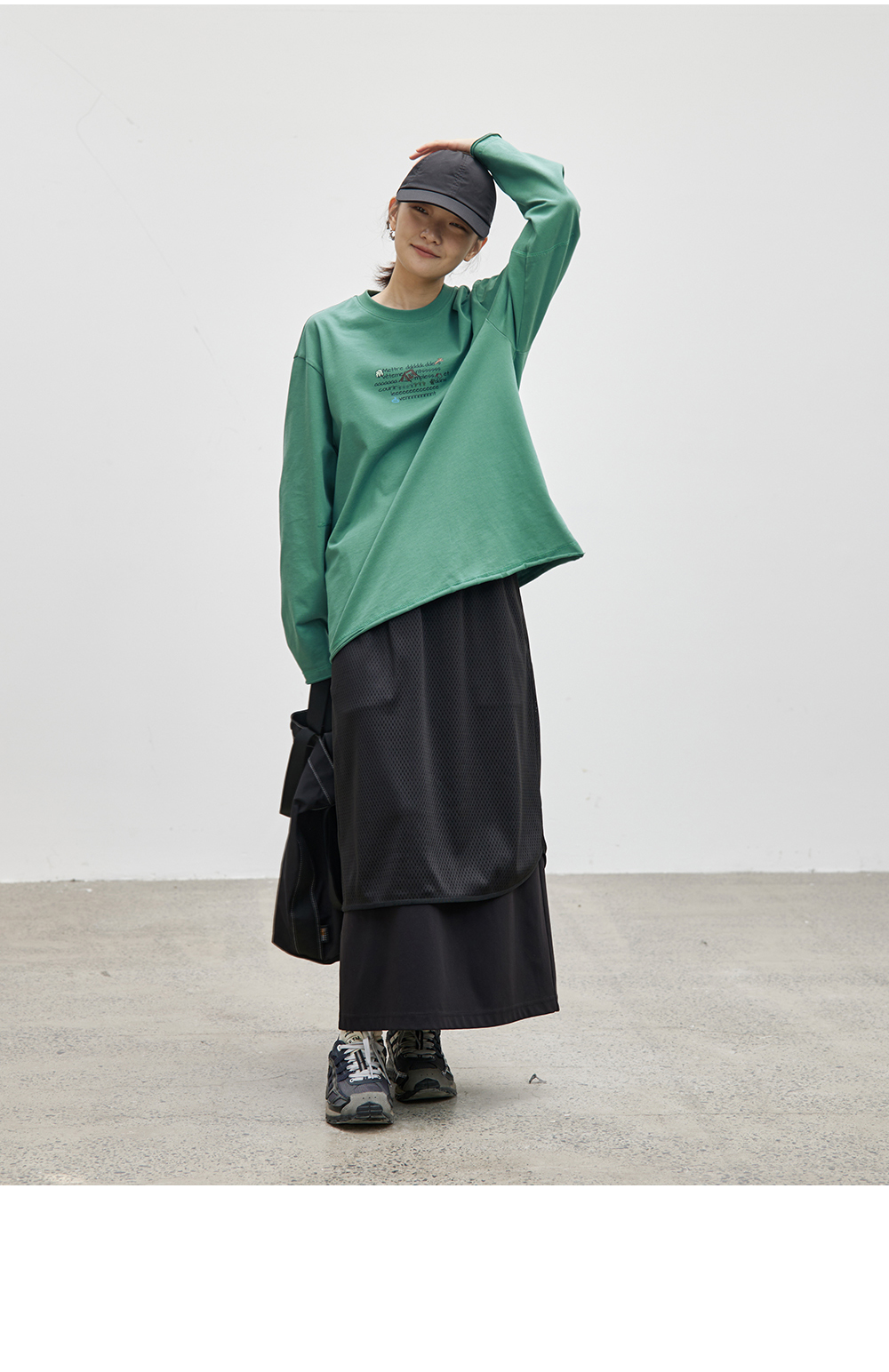 步履不停/4C16067C/慵懒印花图案白色长袖t恤