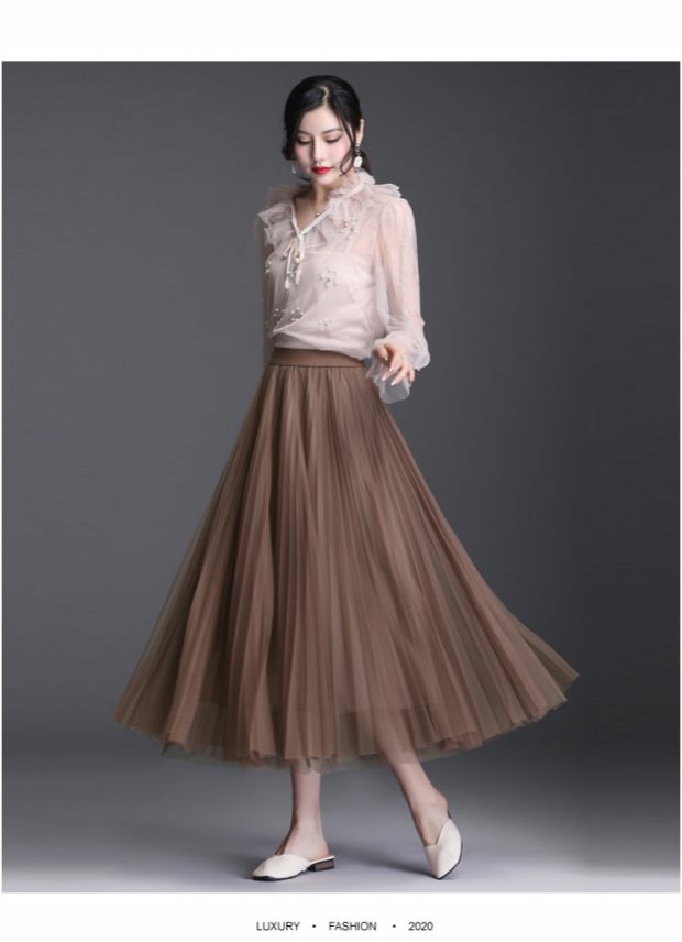 8895# 秋冬款半身纱裙 颜色:卡其/黑色 尺码:均码