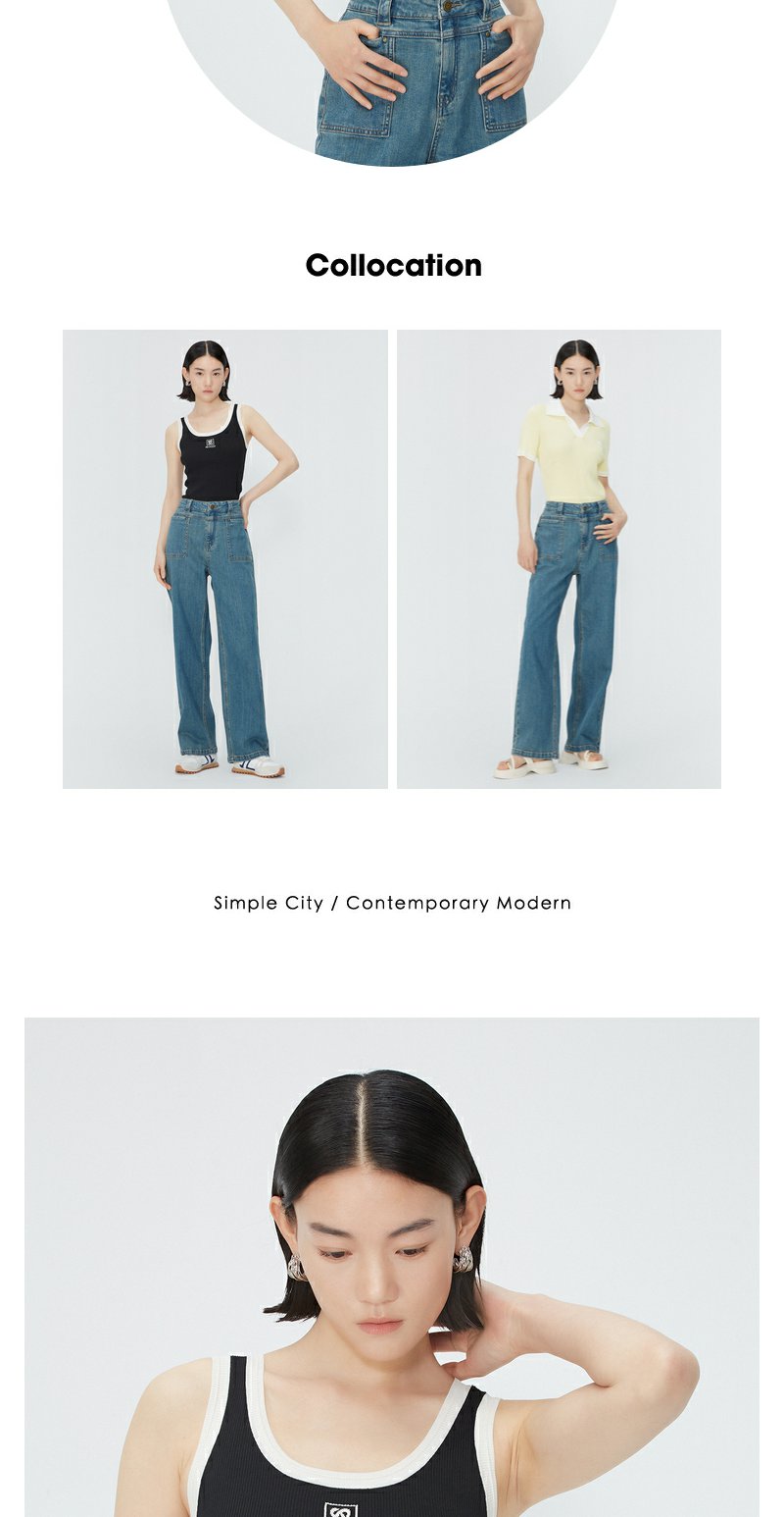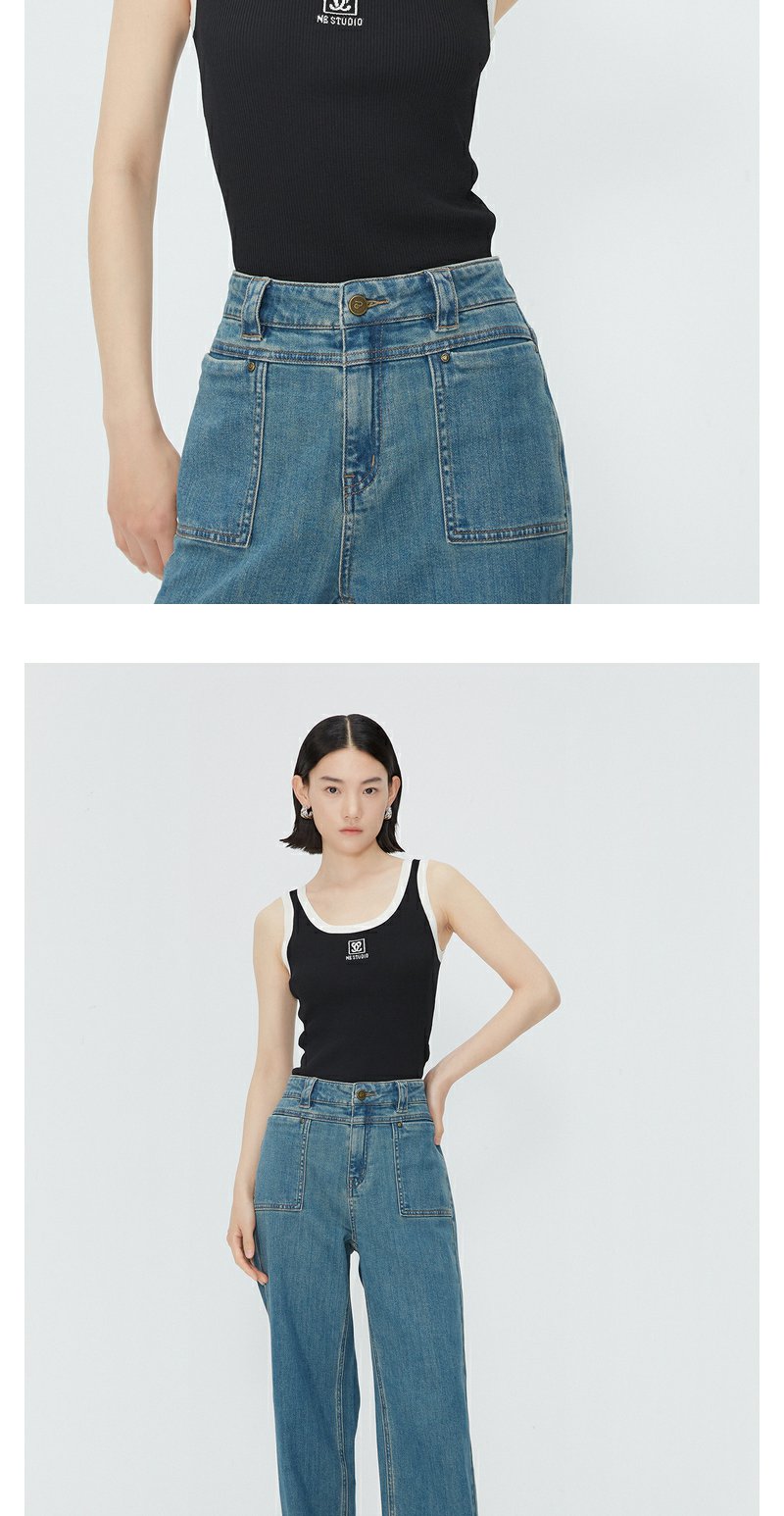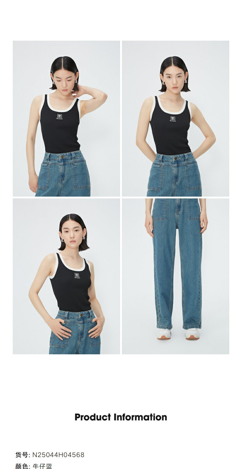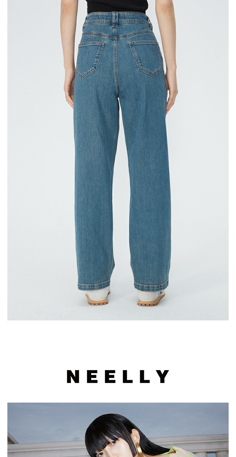 NEELLY纳俪商场同款夏季新款复古水洗牛仔裤女高腰深蓝休闲长裤N25044H04568