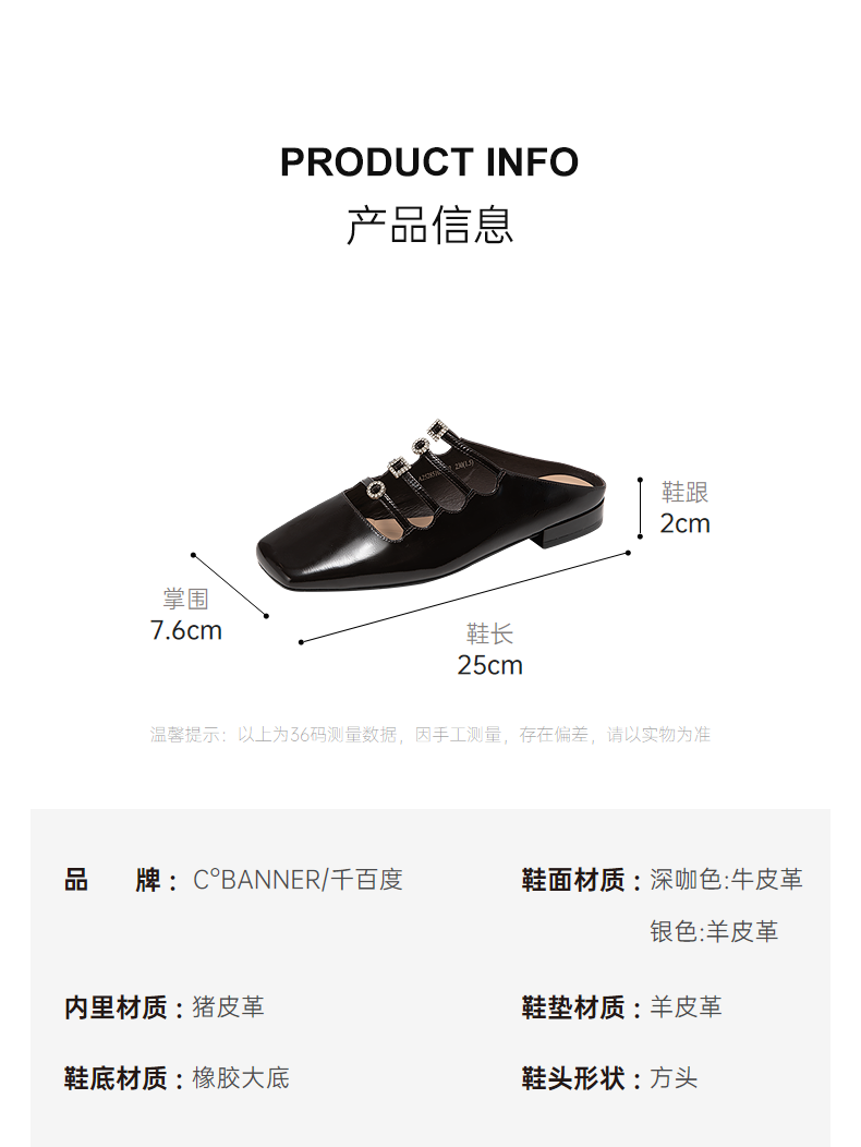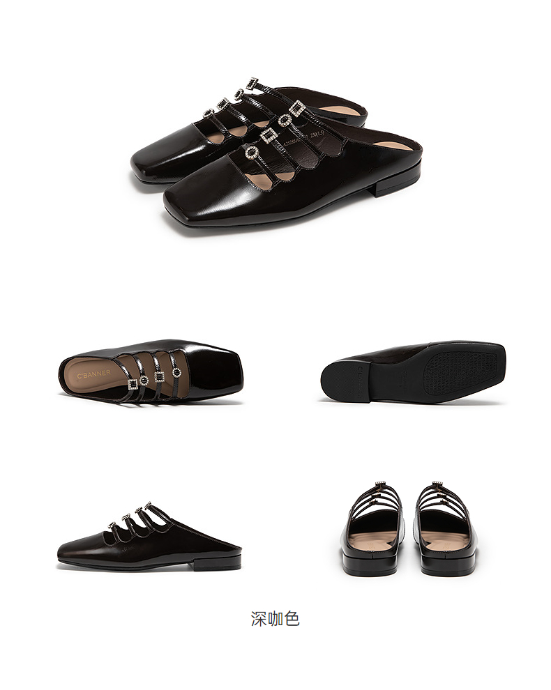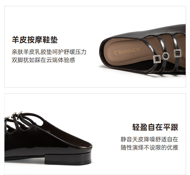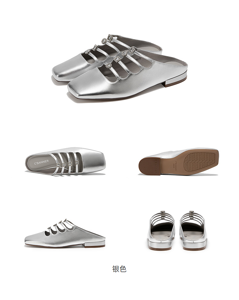 【静音系列】千百度闪钻真皮包头拖女平底外穿凉拖鞋A25285103