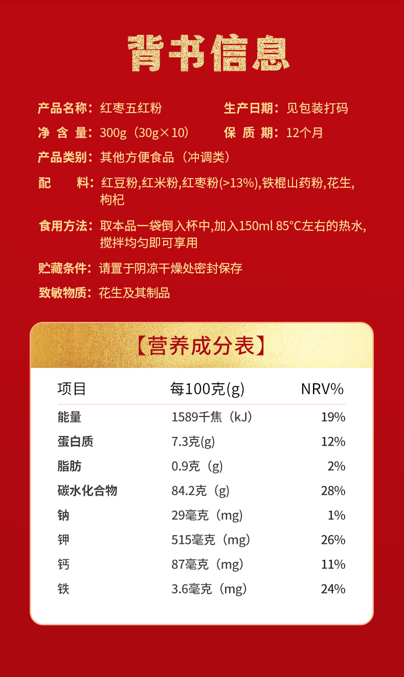 好想你红枣五红粉红豆山药枸杞300g宿舍女性懒人谷物营养早餐代餐