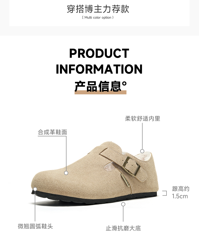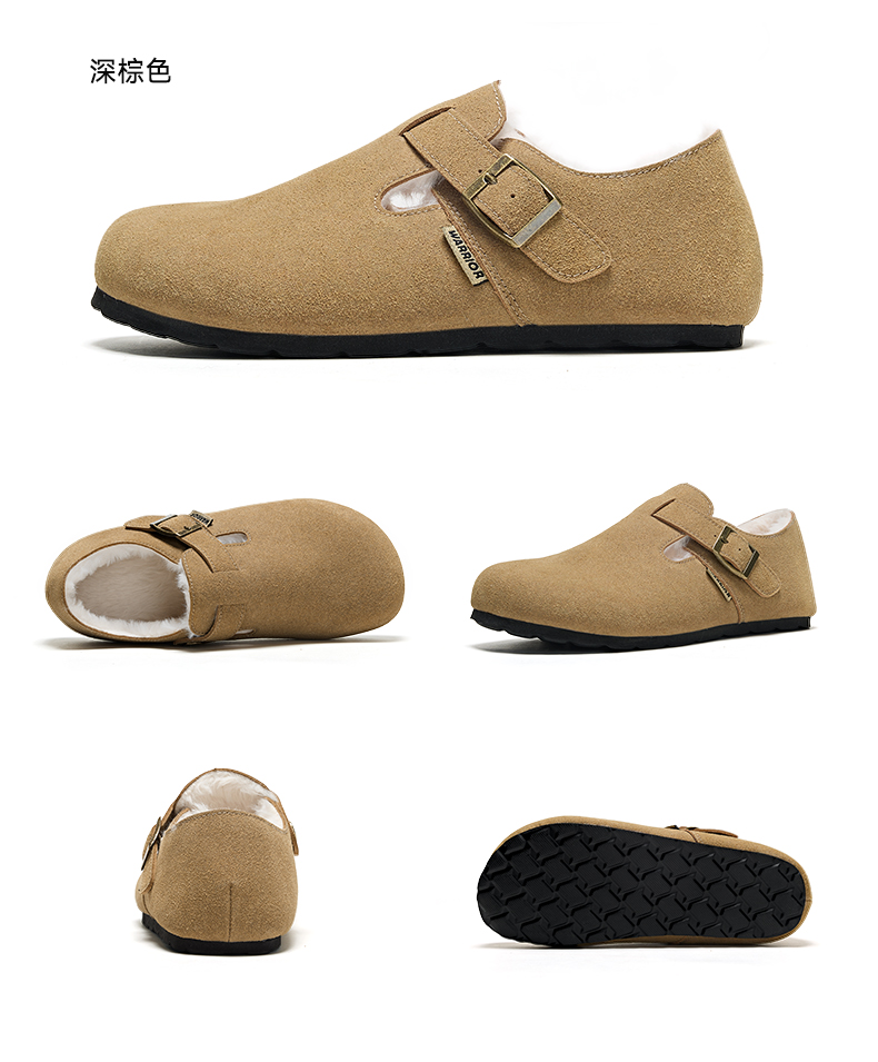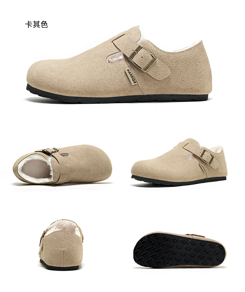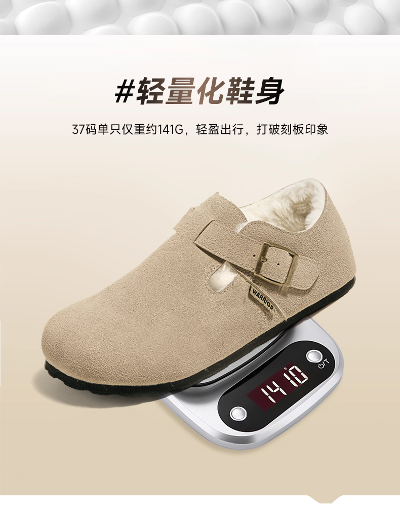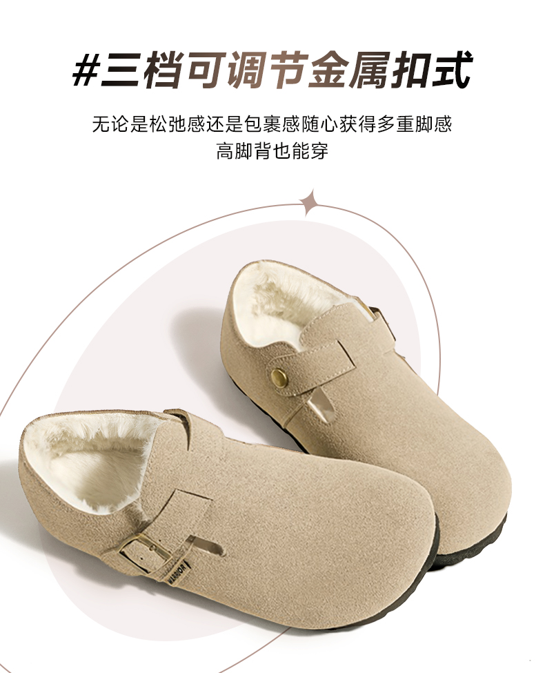 回力加绒勃肯鞋女鞋2025冬季新款毛绒棉鞋一脚蹬毛毛鞋雪地靴鞋子