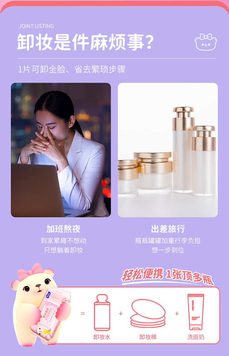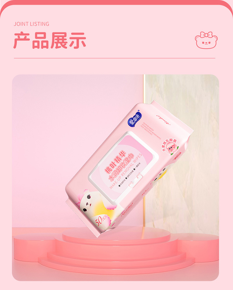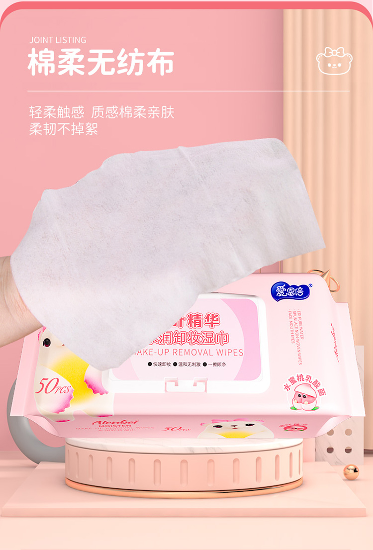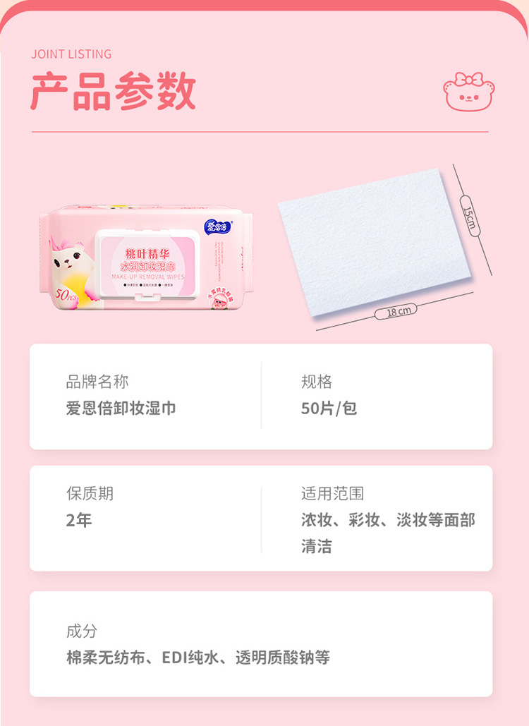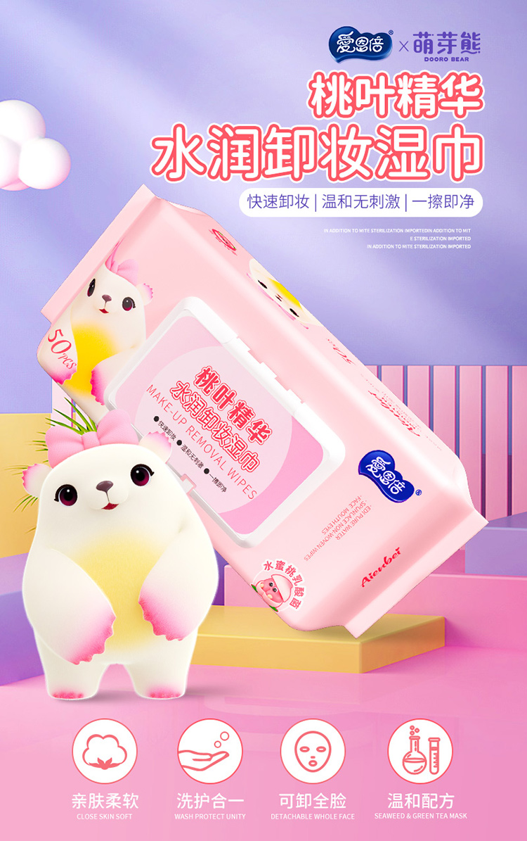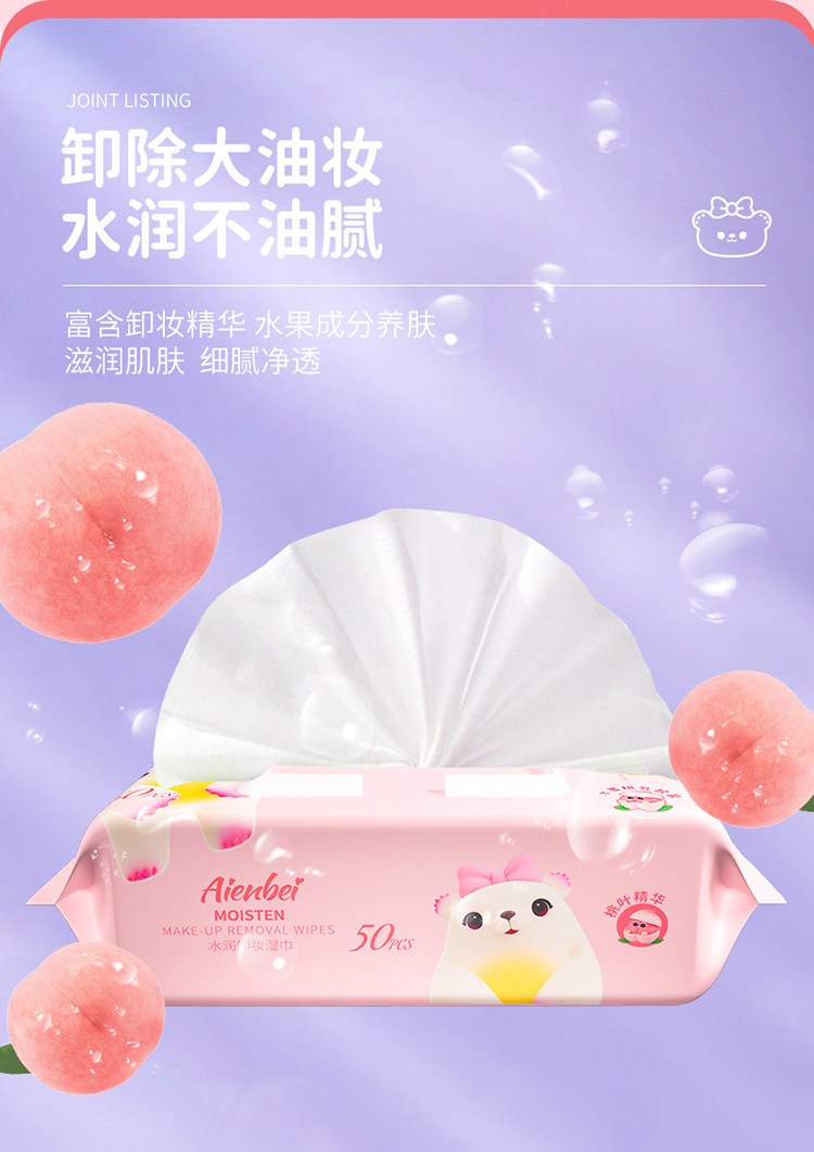 爱恩倍 桃叶精华水润卸妆湿巾脸部深层清洁温和无刺激50片*3包