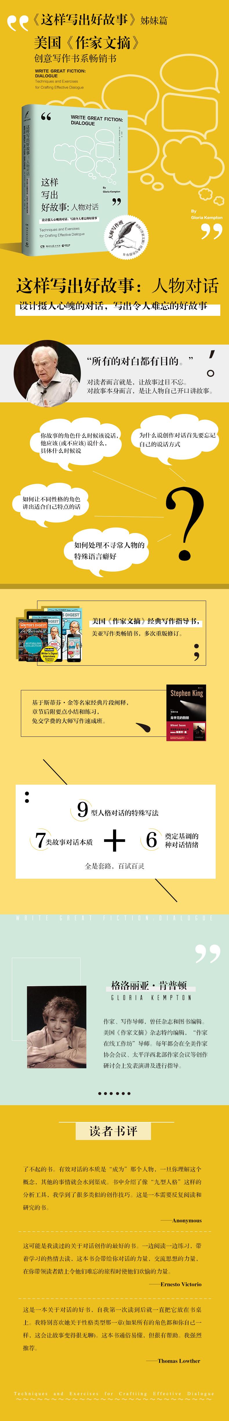 ●第一章 释放内在的声音——对话的目的 第二章 无声的人物与故事——消除你的恐惧 第三章 类型故事,主流故事及文学故事——对话的实质 第四章 动力之轮——对话推动故事向前发展 第五章 叙述、对话和行动——学着编织你的话语 第六章 用人物自身的语言——向读者展现人物及其动机 第七章 故事的发生地——利用对话展现故事的背景和环境 第八章 刹车或油门——对话作为控制节奏的手段 第九章 增强张力与悬念——利用对话加剧冲突 第十章 一个漆黑的、风雨交加的夜晚——利用对话奠定基调、烘托情感 第十一章 嗯、啊、哦——处理语言癖好的一些基本方法 第十二章 唉!效果不理想的对话——最常见的错误 第十三章 标点符号和最后的考虑因素——细枝末节的处理 第十四章 创作对话的注意事项——一些实用的建议 第十五章 与读者建立联结——你能让他们有所改变