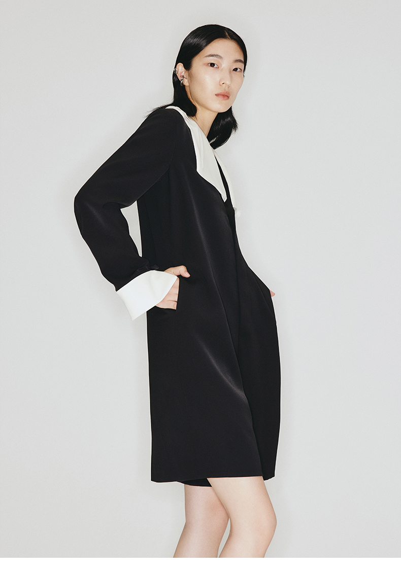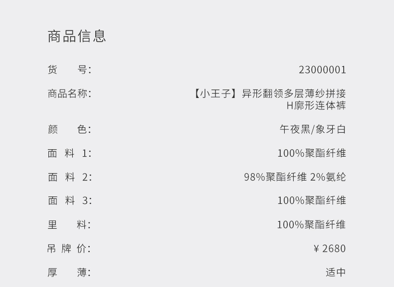 【小王子】异形翻领多层薄纱拼接H廓形连体裤/23000001