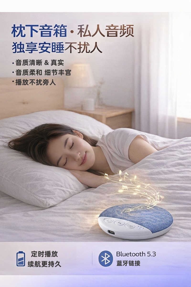 💤爆火电子“哄睡神器”❗不入耳、不扰枕边人❗瑞士AURARO 第6代枕边音响 沉浸贴耳发声 可放在枕头下 扁平设计 无异物感