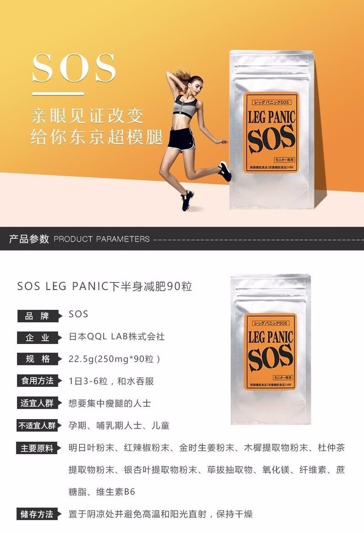 【保税仓】SOS LEG PANIC 下半身塑身(土黄) 90粒
