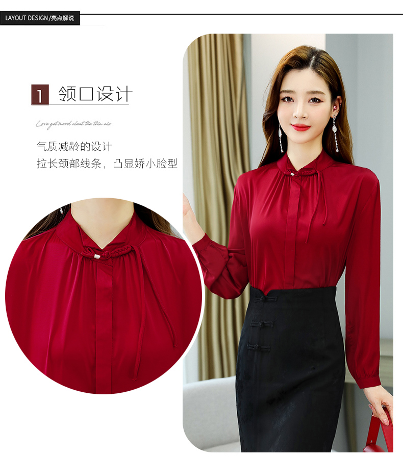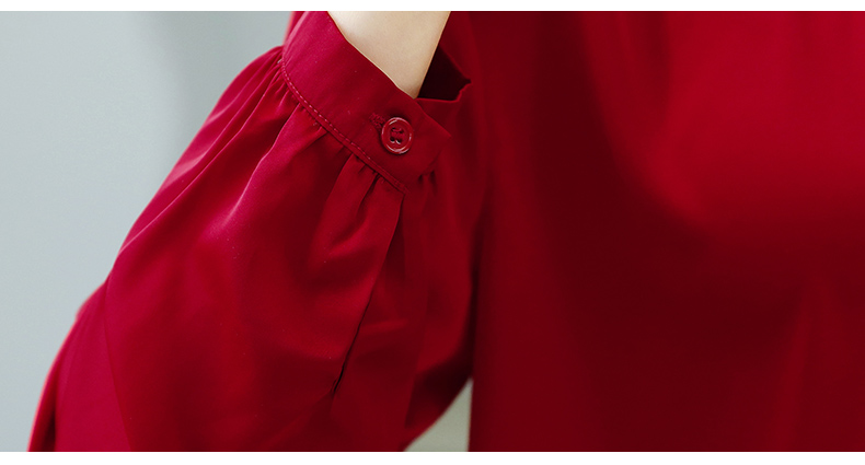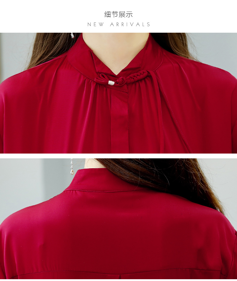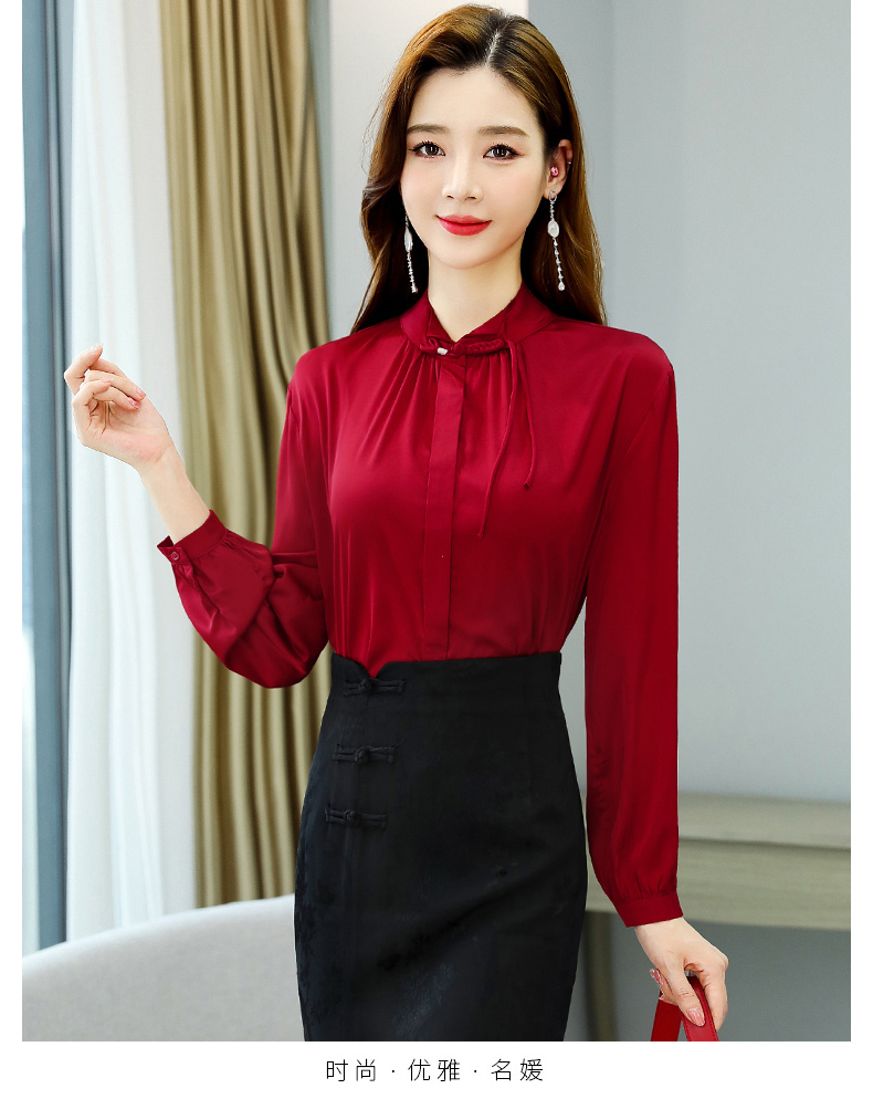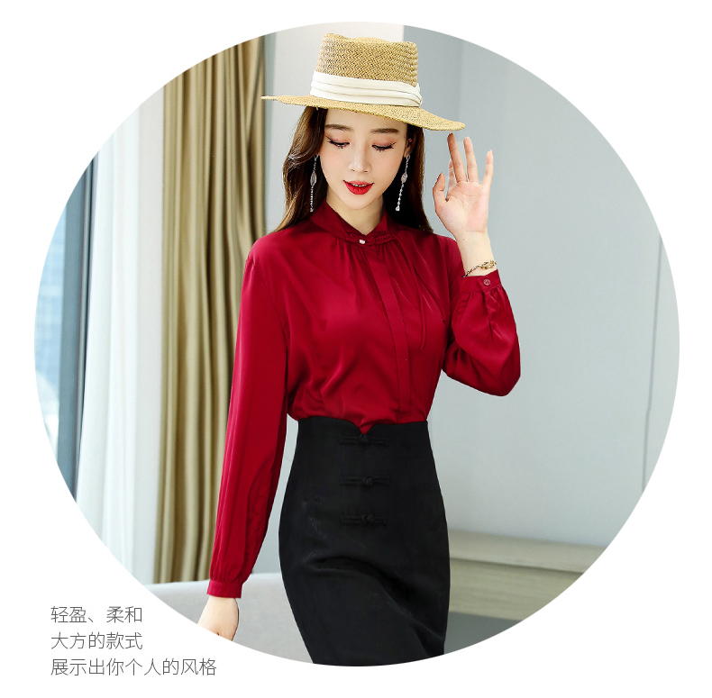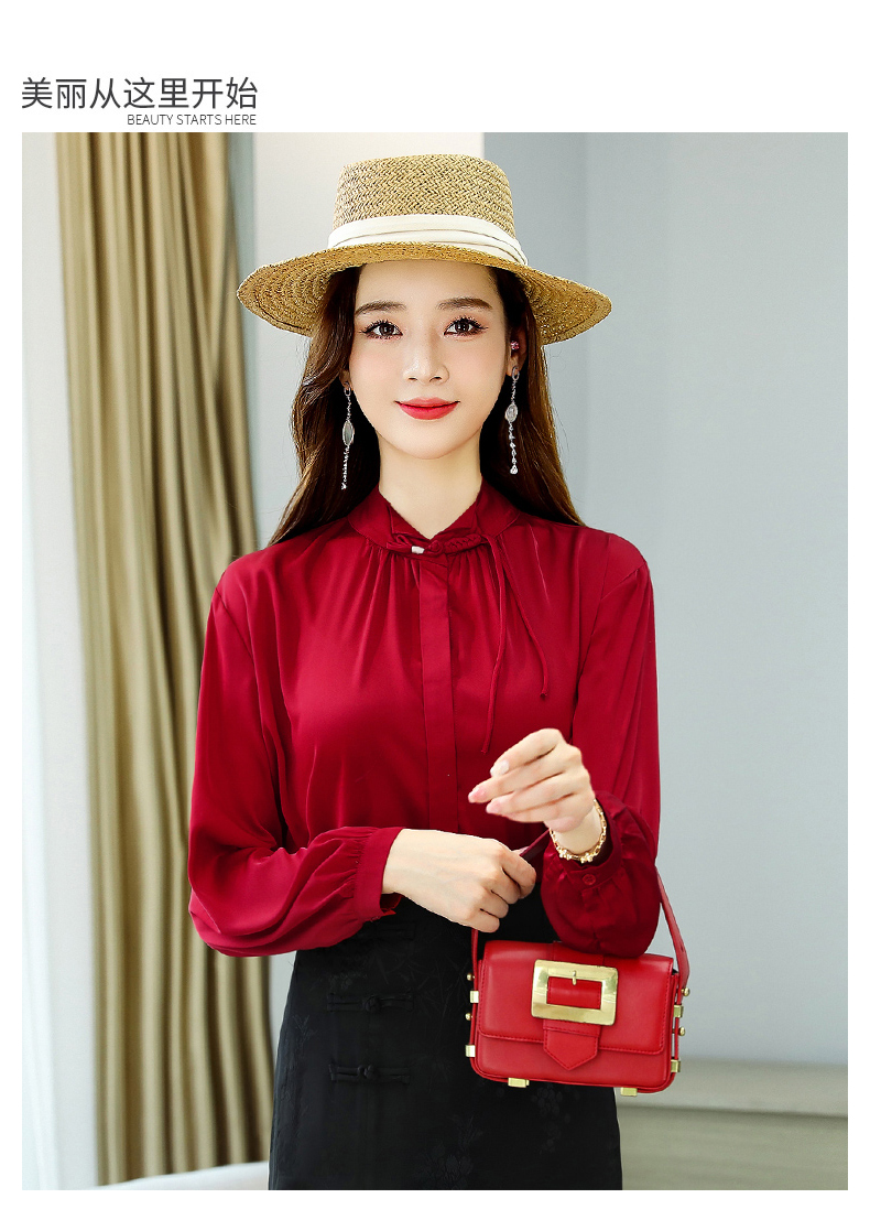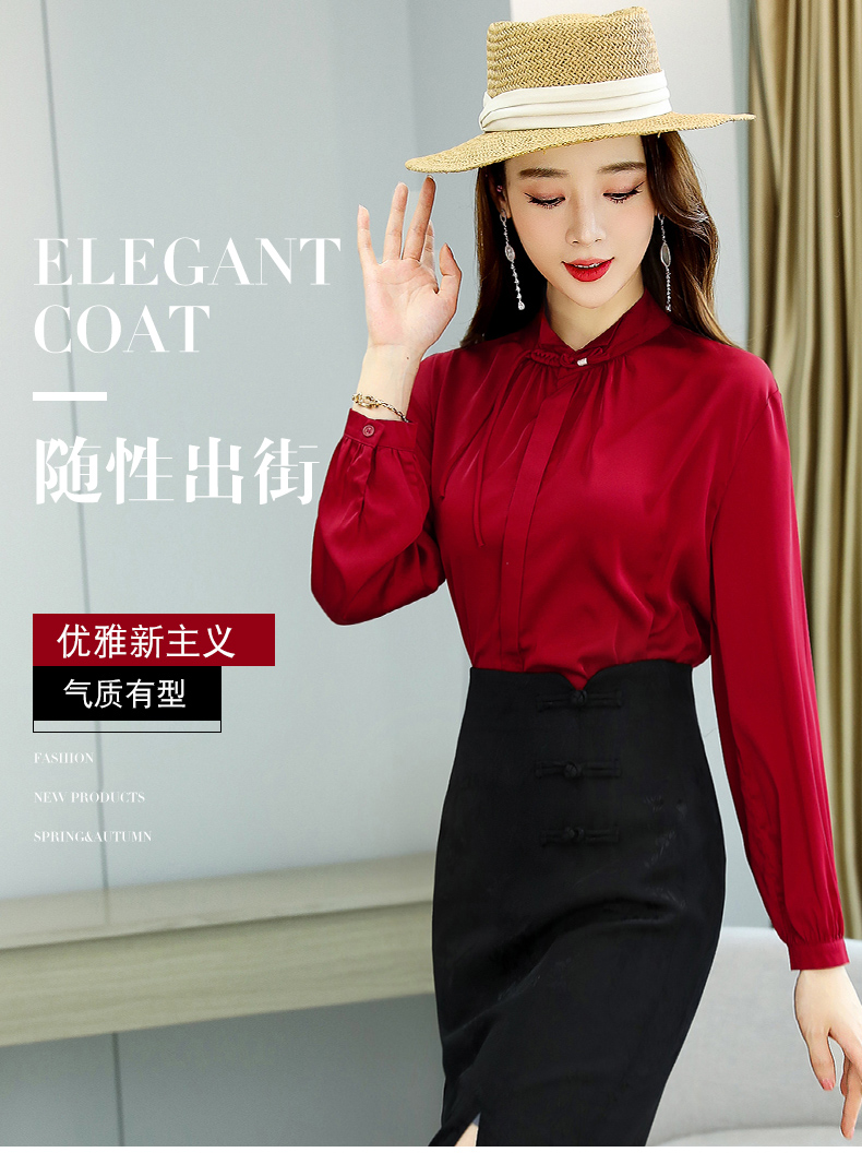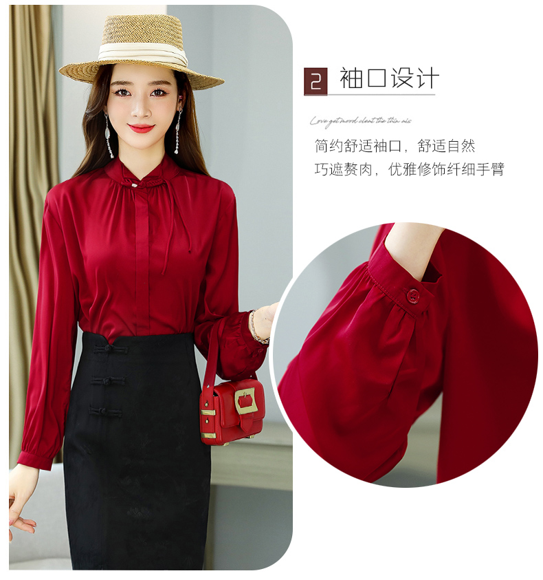 2022春季新款韩版洋气小衫红色上衣女气质优雅立领长袖雪纺衫 HR- YGYL8932