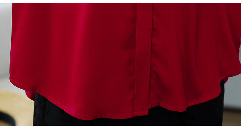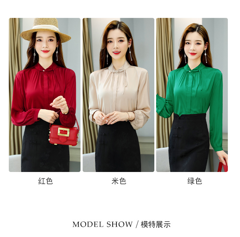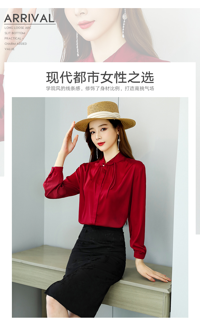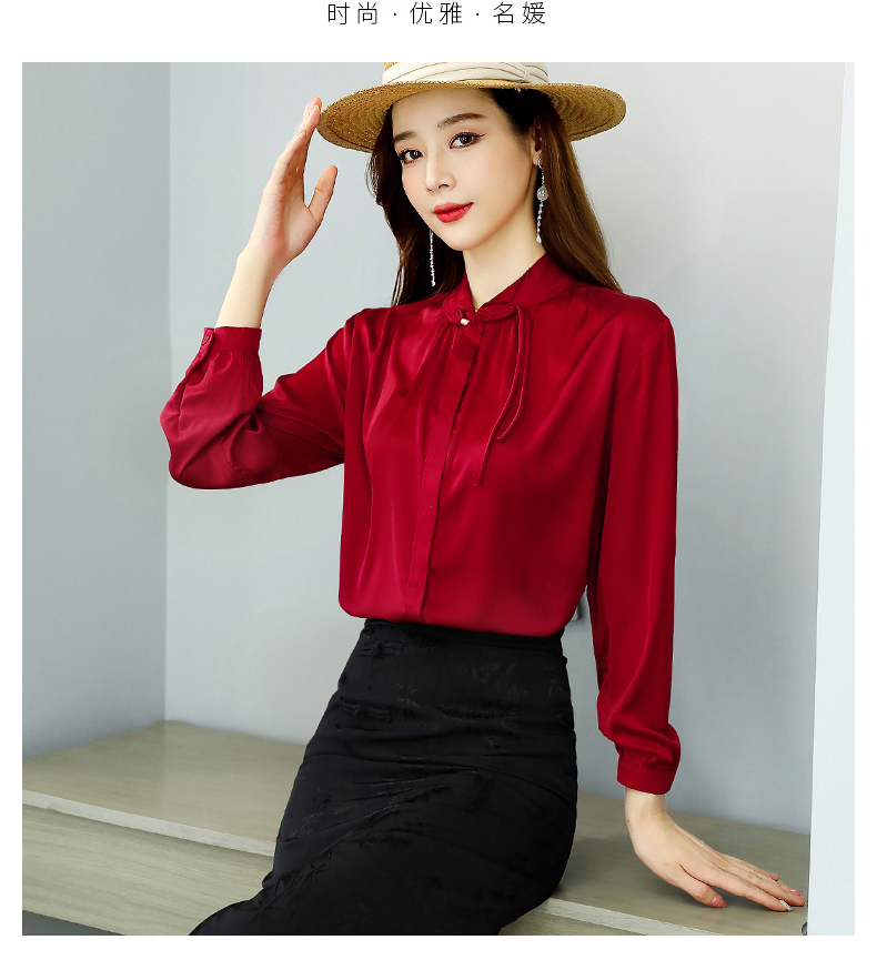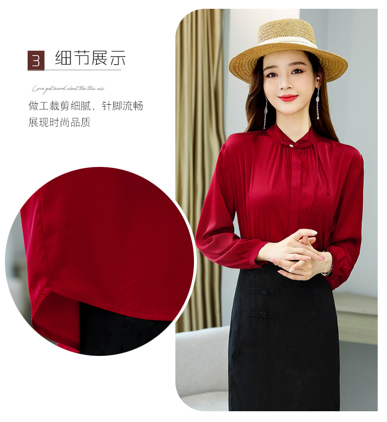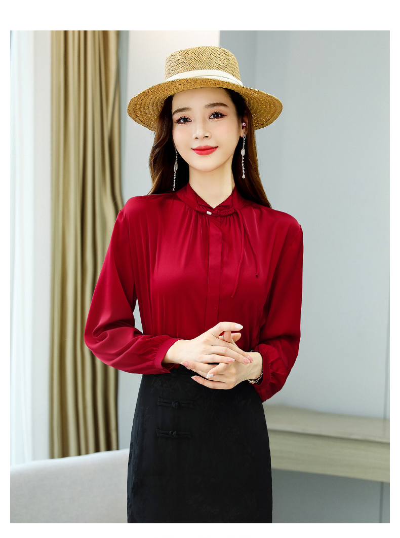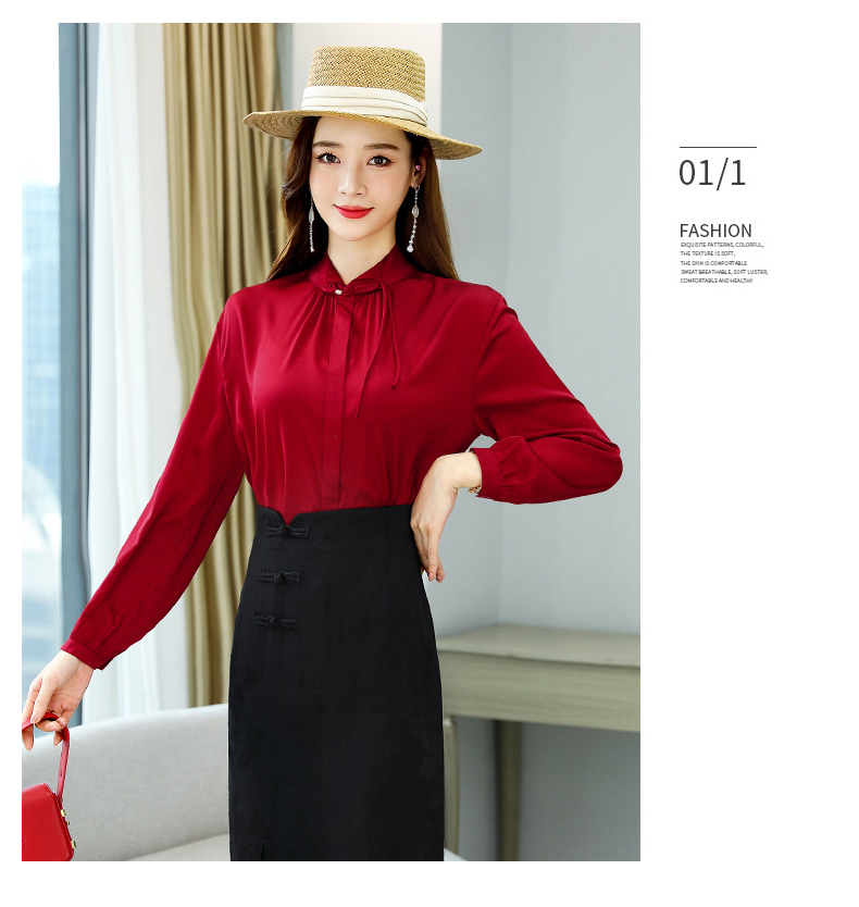 2022春季新款韩版洋气小衫红色上衣女气质优雅立领长袖雪纺衫 HR- YGYL8932