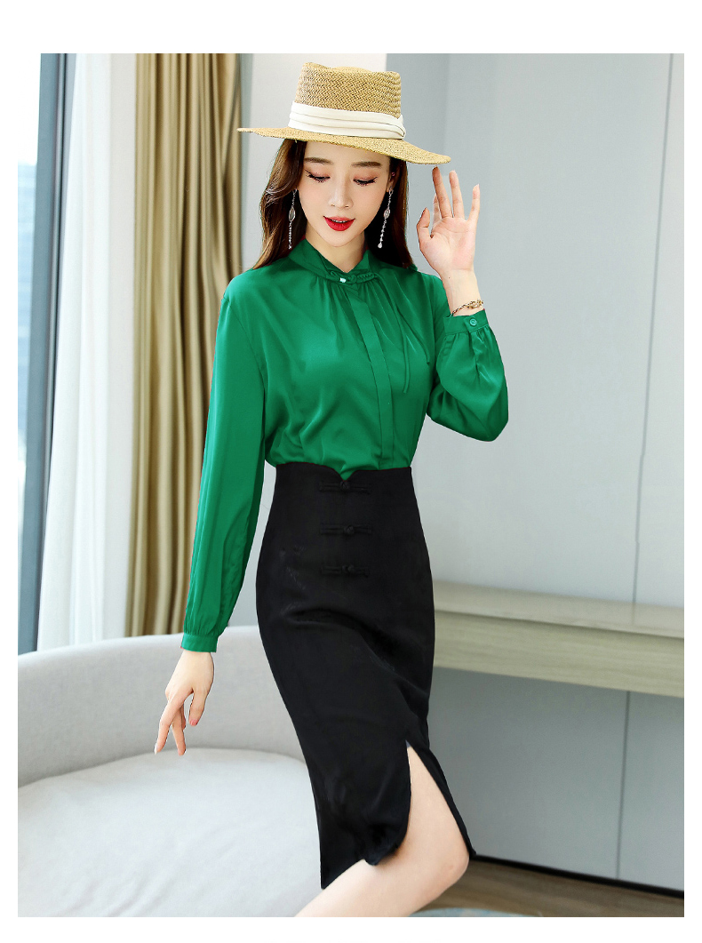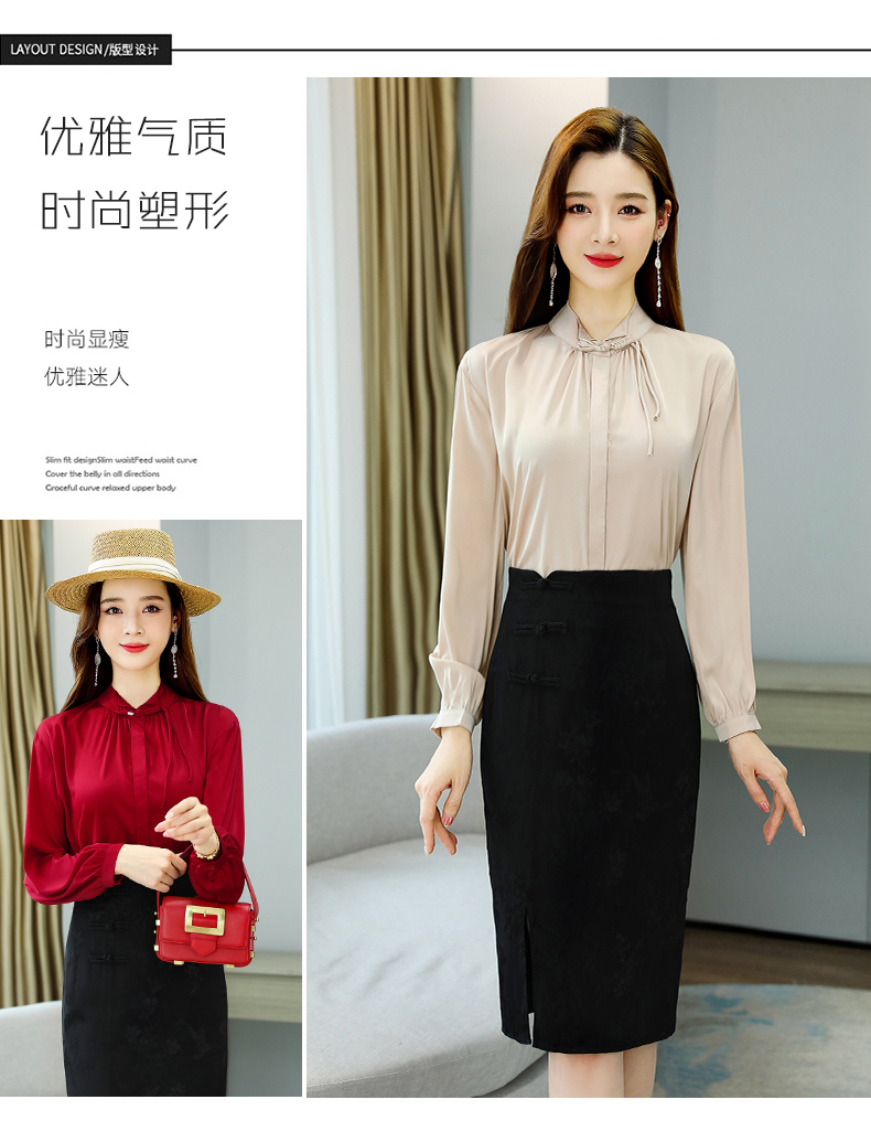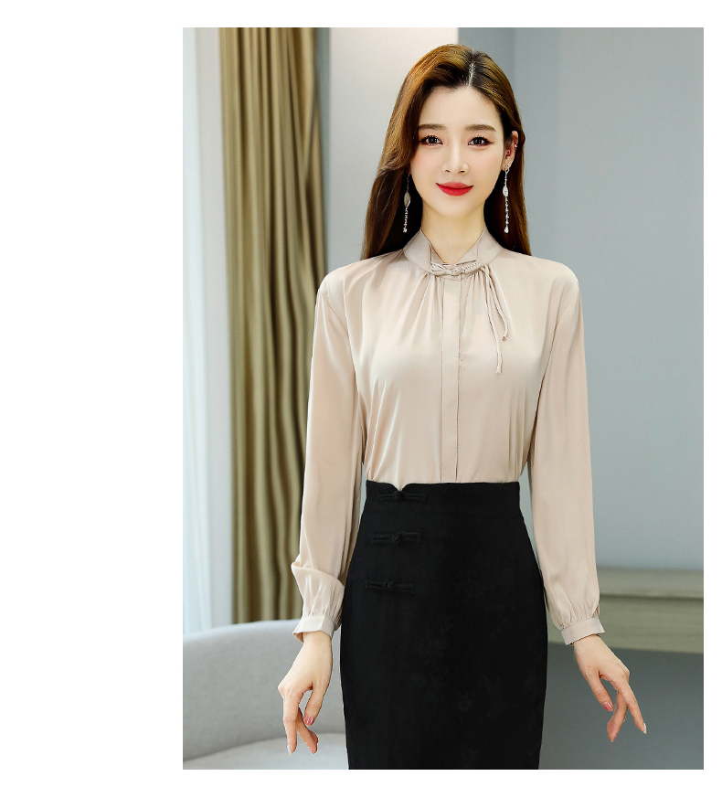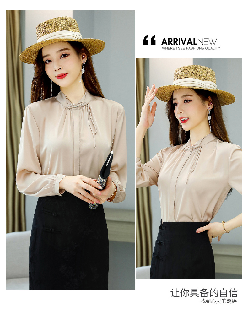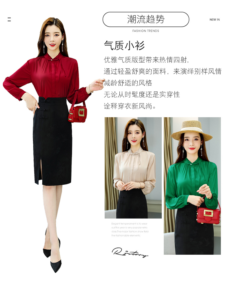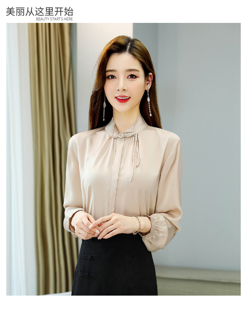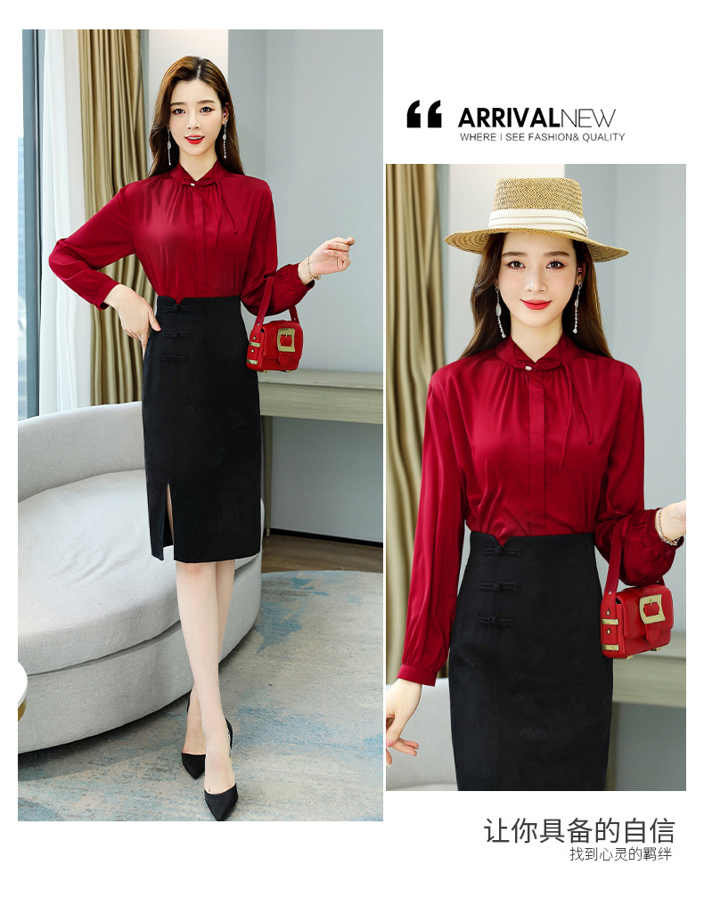 2022春季新款韩版洋气小衫红色上衣女气质优雅立领长袖雪纺衫 HR- YGYL8932