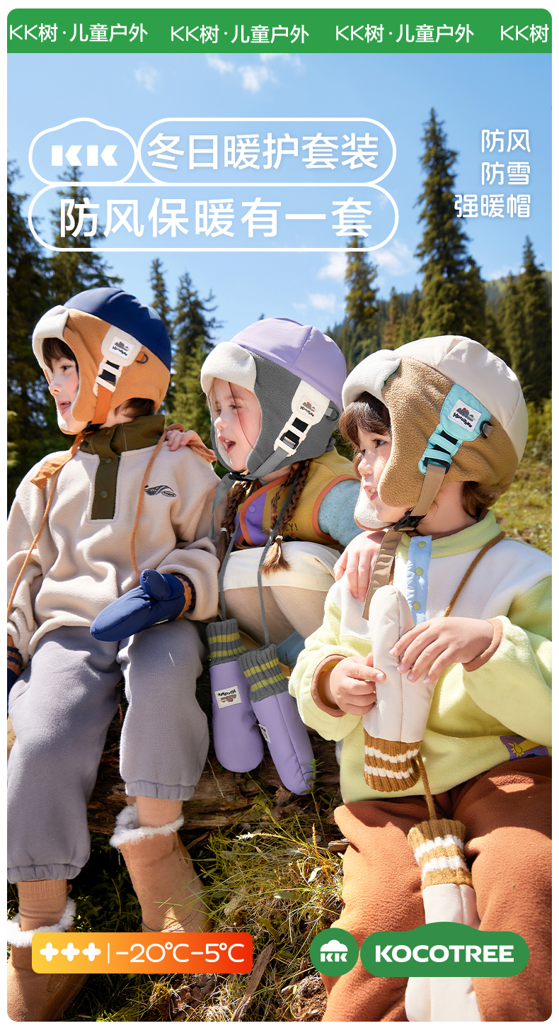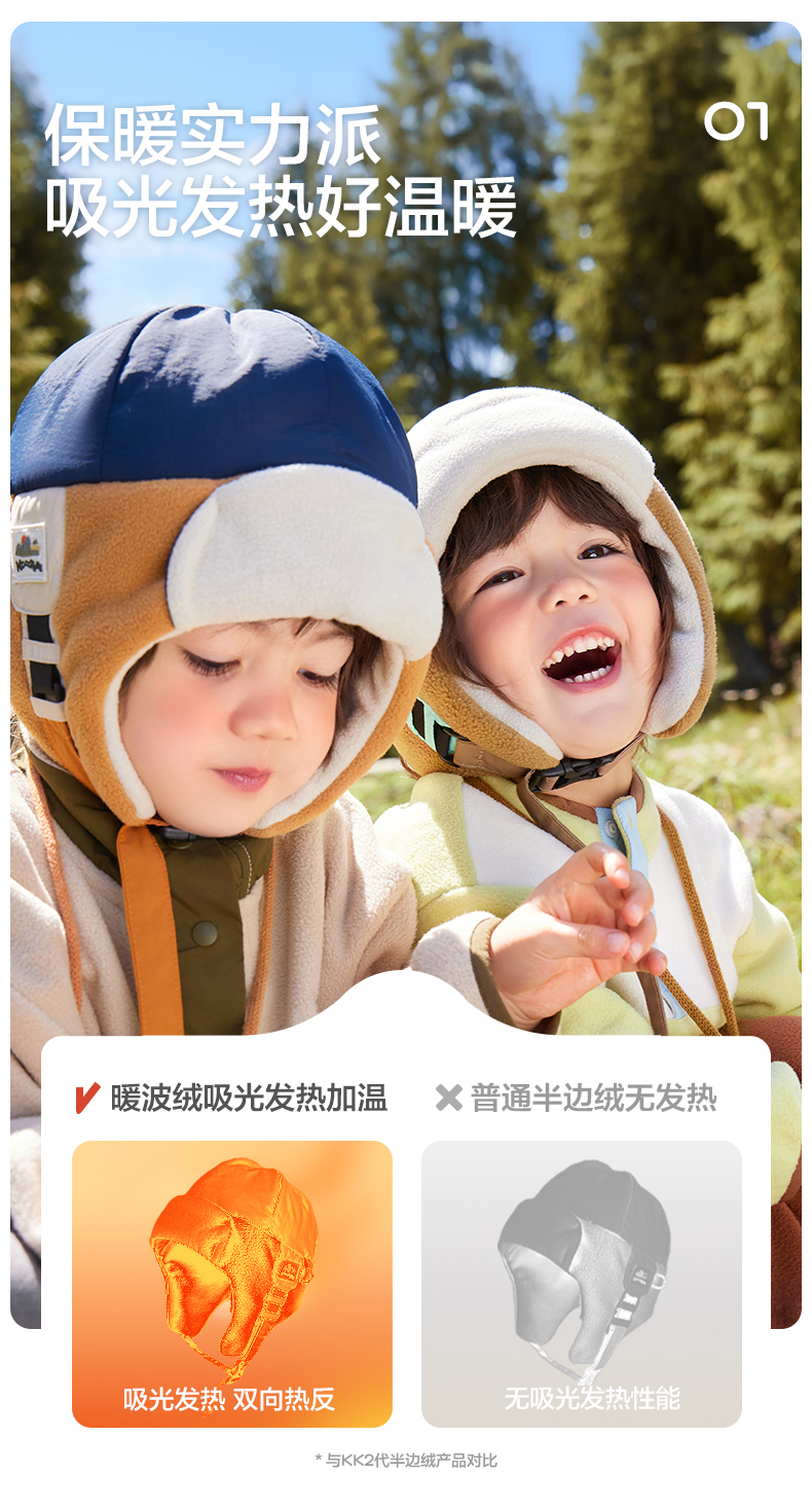 KK树儿童帽子秋冬男女孩雷锋帽宝宝防风护耳保暖飞行员帽2025新款小小牧野者护耳帽