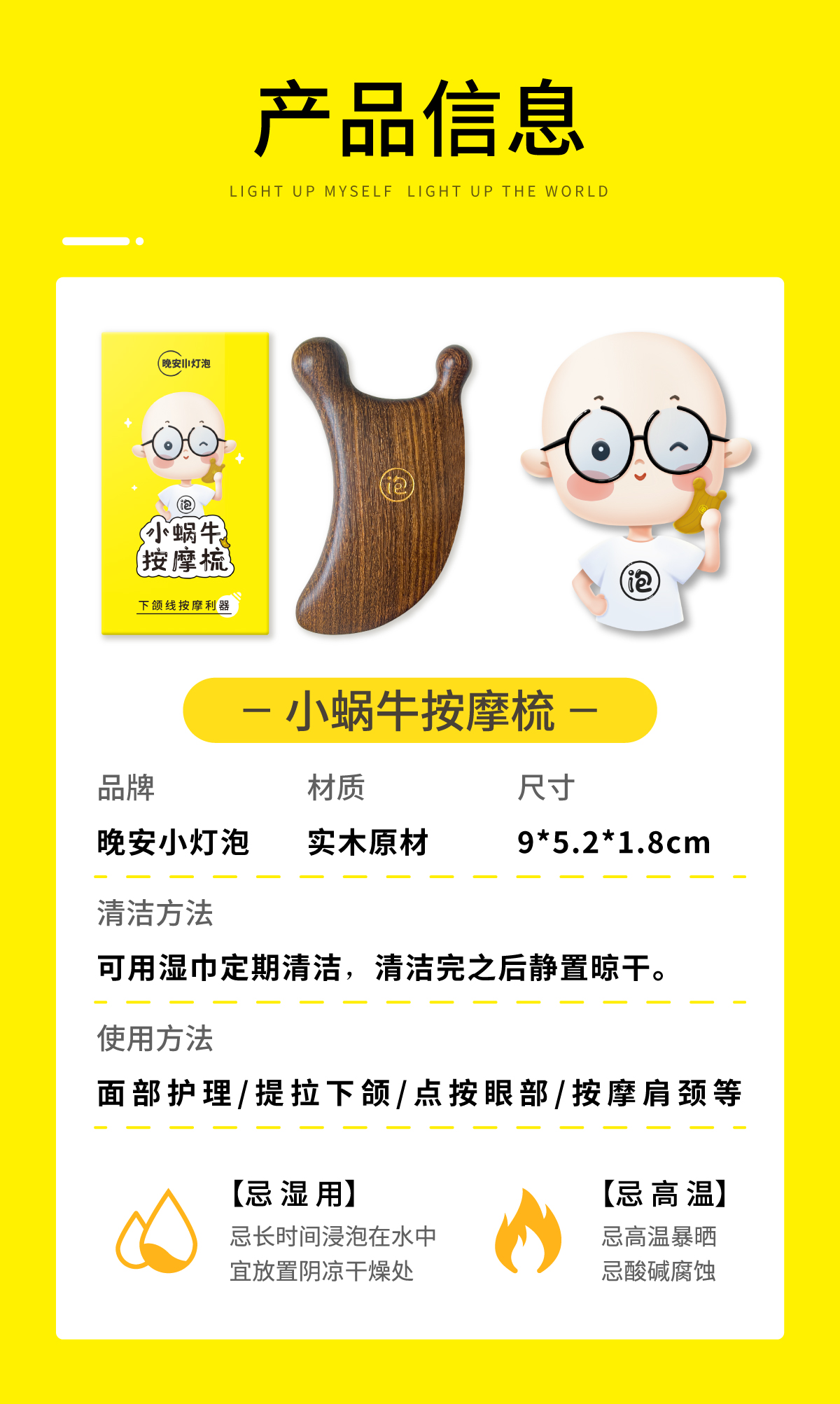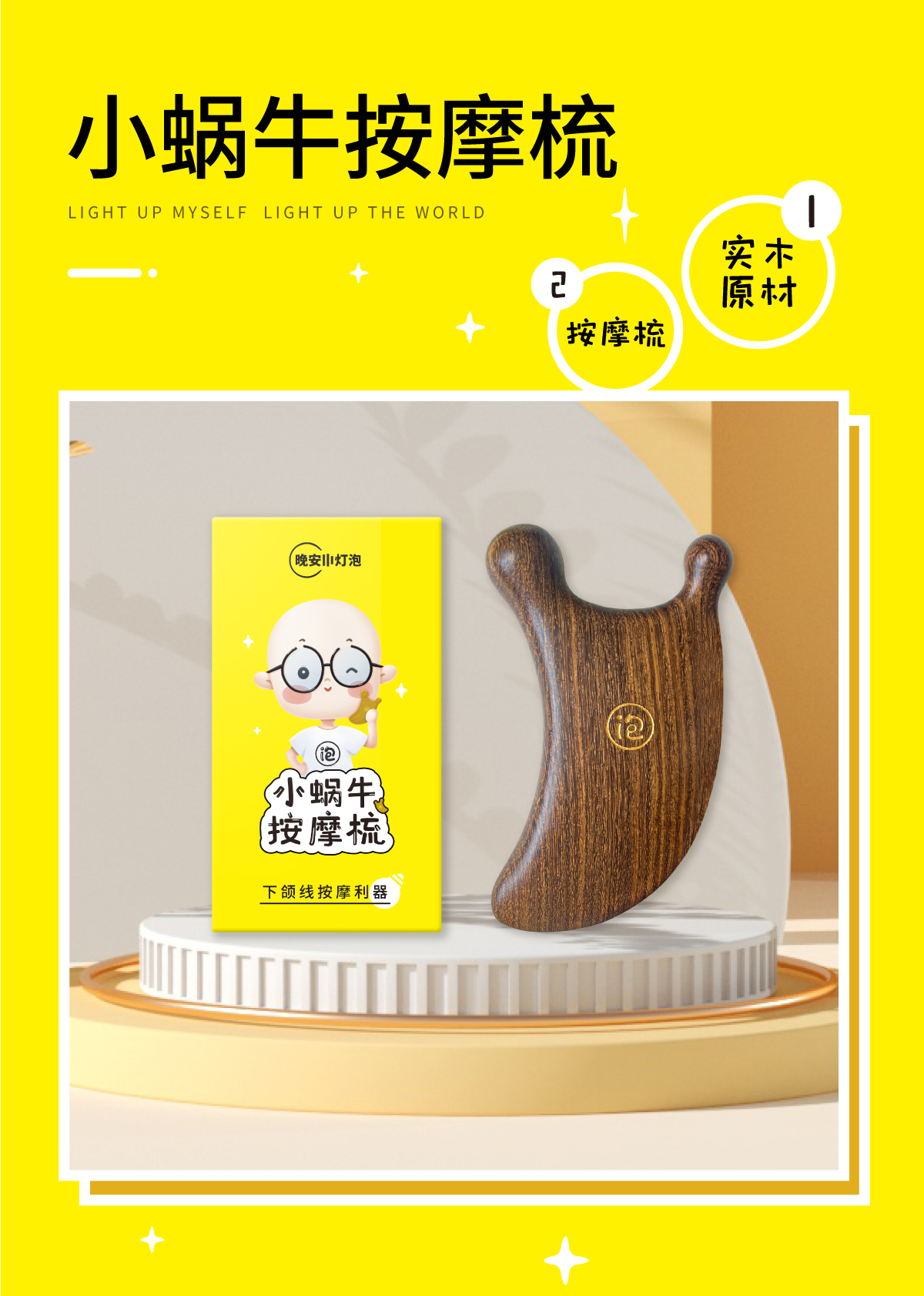 【晚安小灯泡小蜗牛按摩梳 下颌线按摩利器】实木按摩梳 按摩下颌线/面部/额头/肩颈