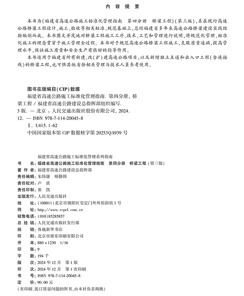 书名:福建省高速公路施工标准化管理指南 第四分册 桥梁工程 (第三版)