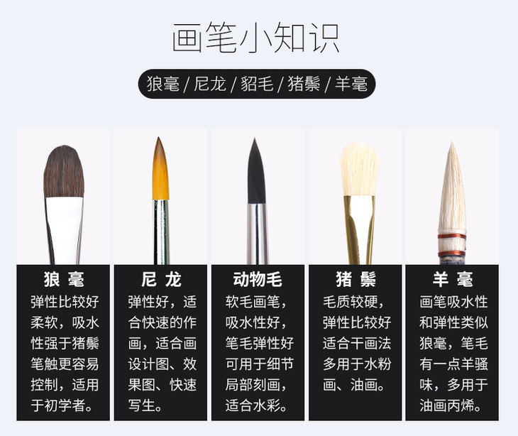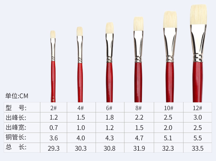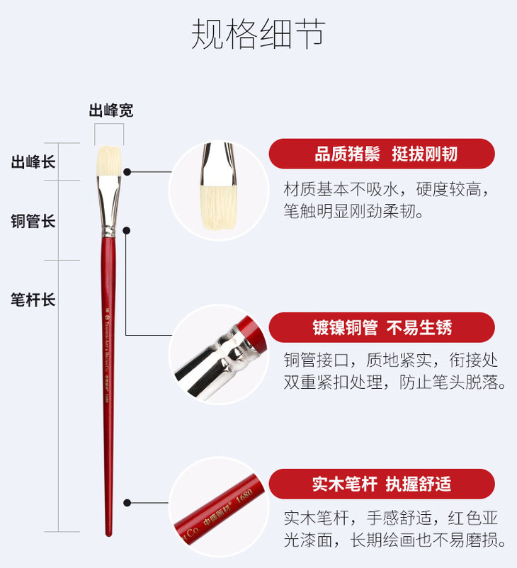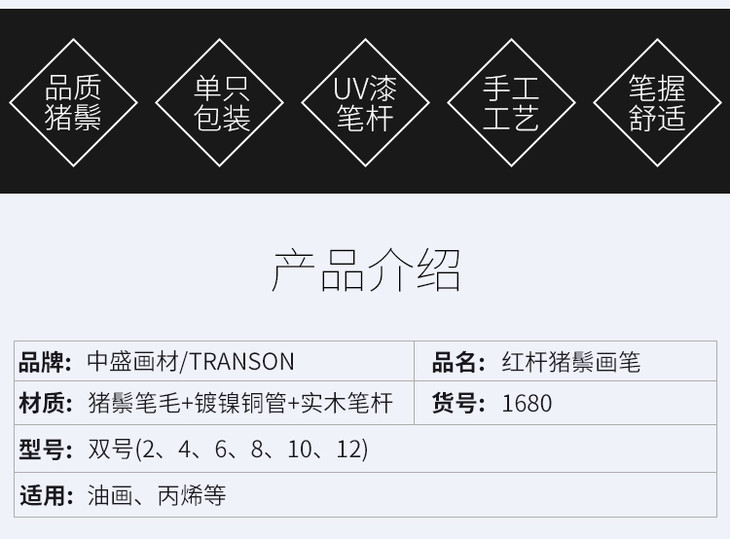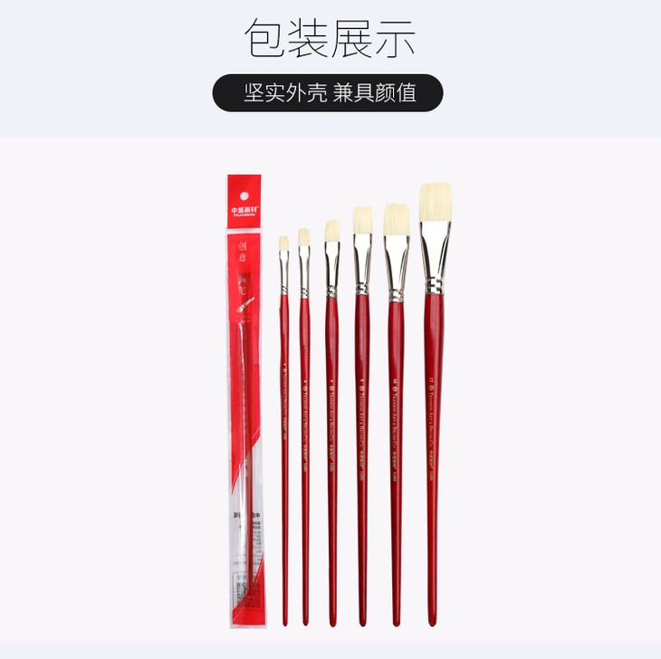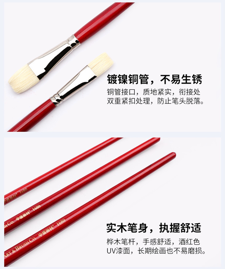 中盛画材 1680猪鬃油画笔水粉画笔水彩笔丙烯颜料初学者单支排笔