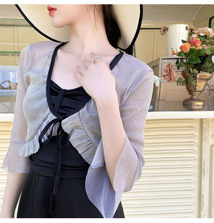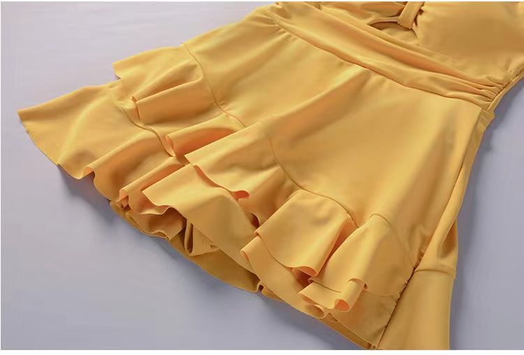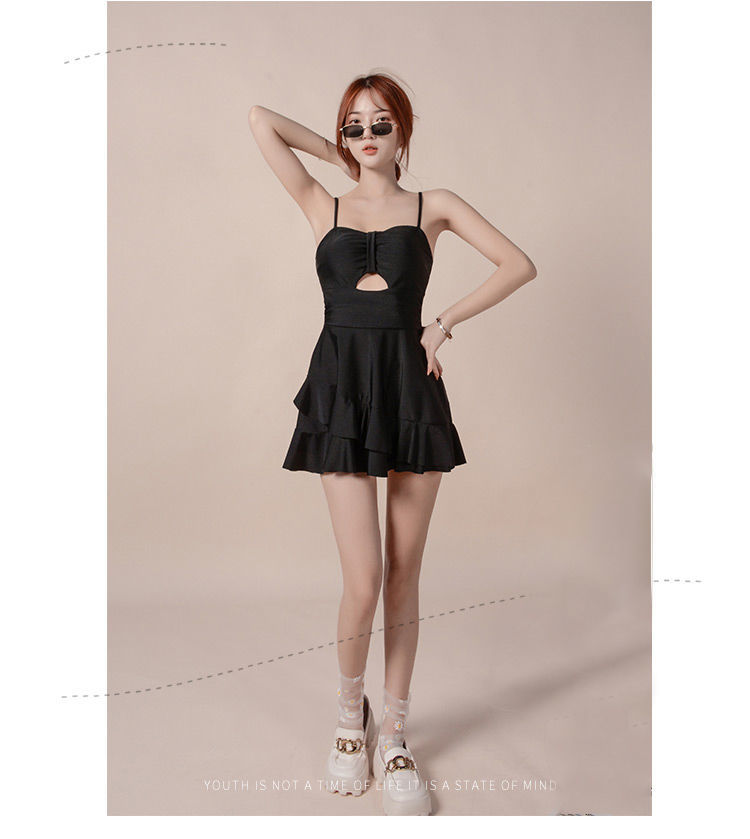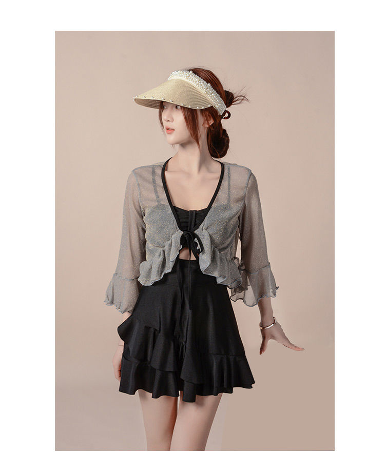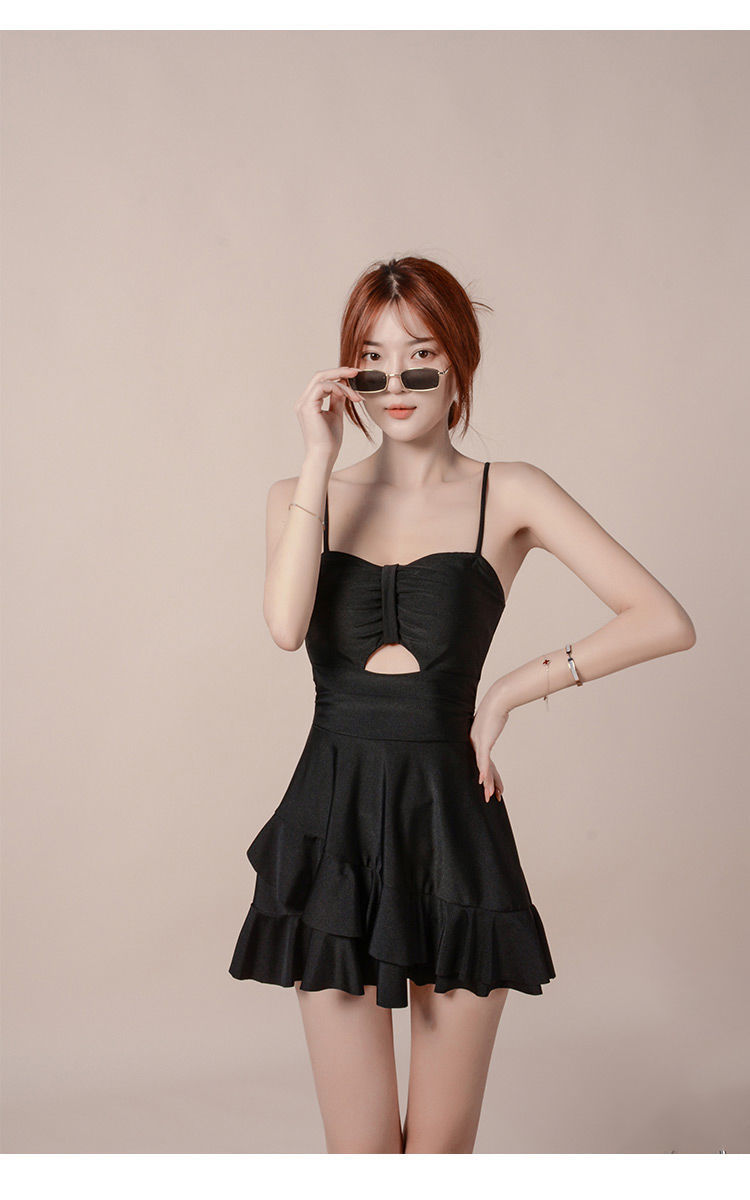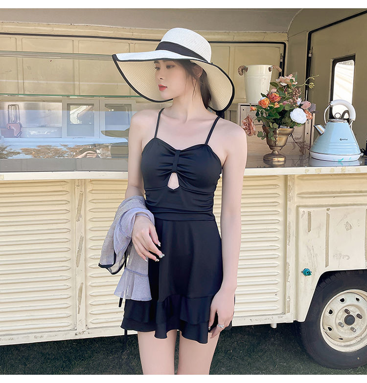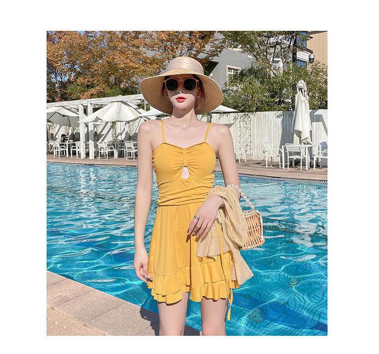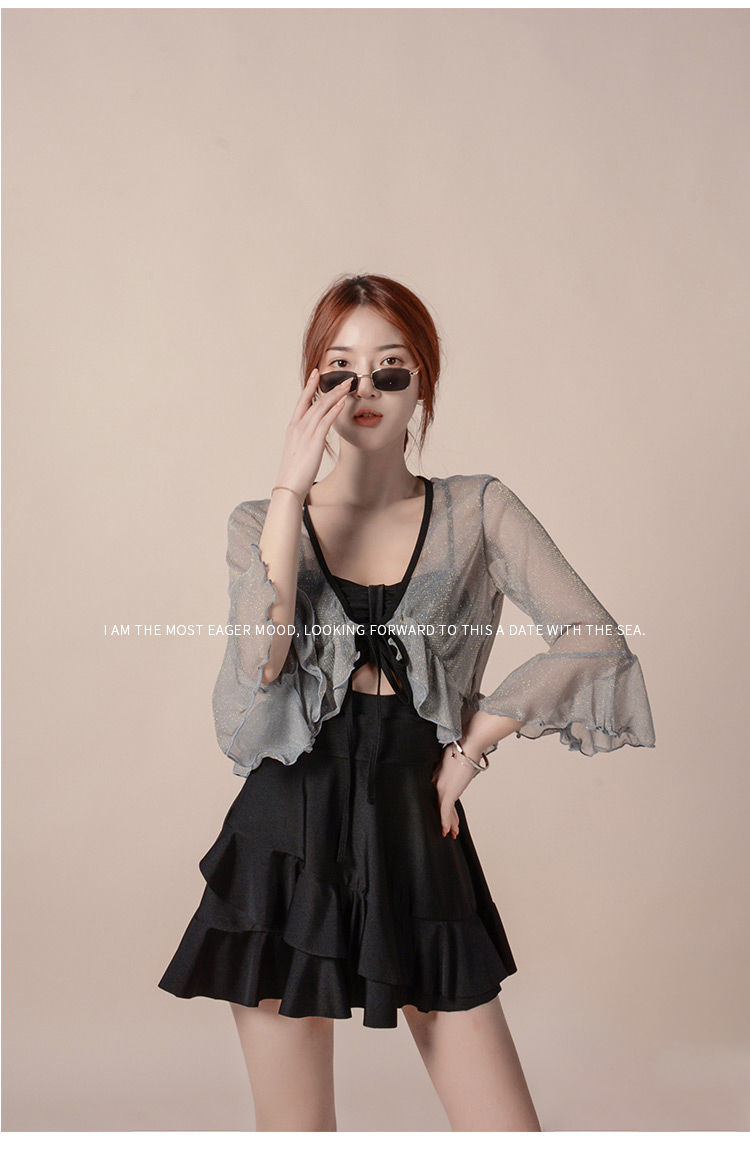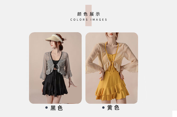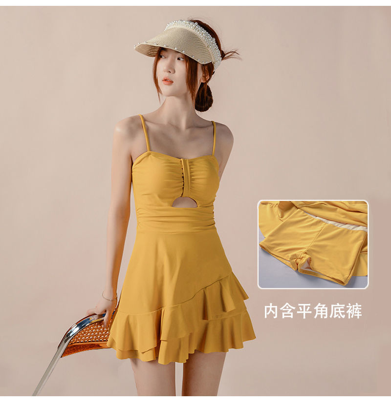 泡温泉游泳衣女士连体保守遮肚长袖仙裙式套装rbl24