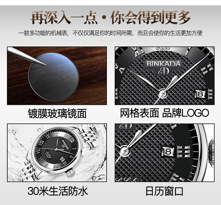 宾卡达(BINKADA)宾卡达男士手表 男 皮带 全自动镂空机械手表 防水时尚男表 7007