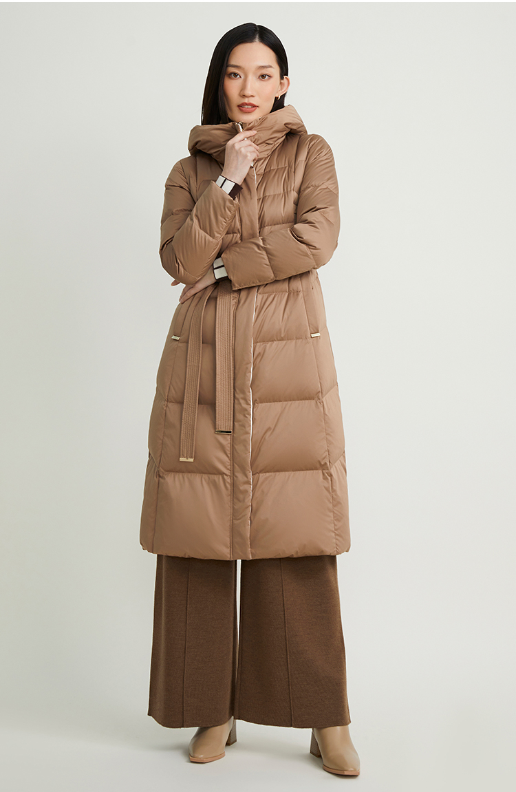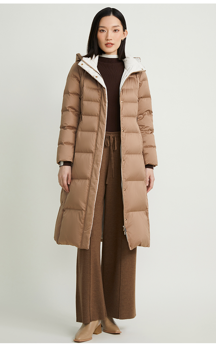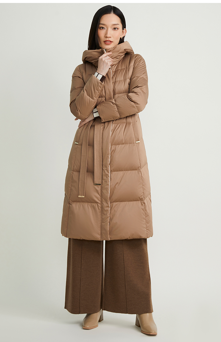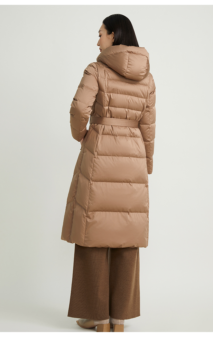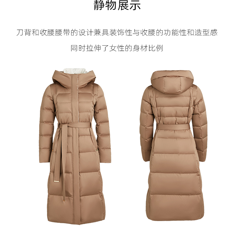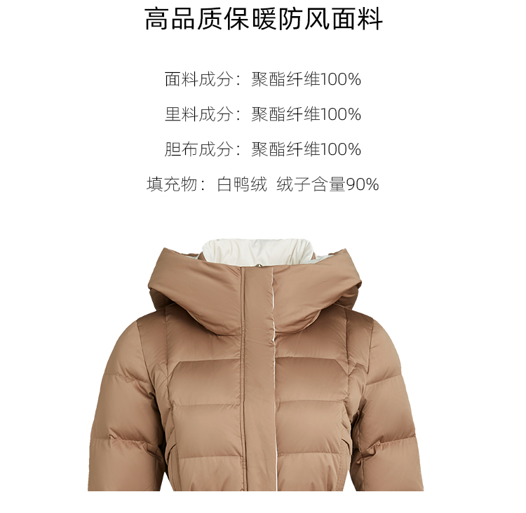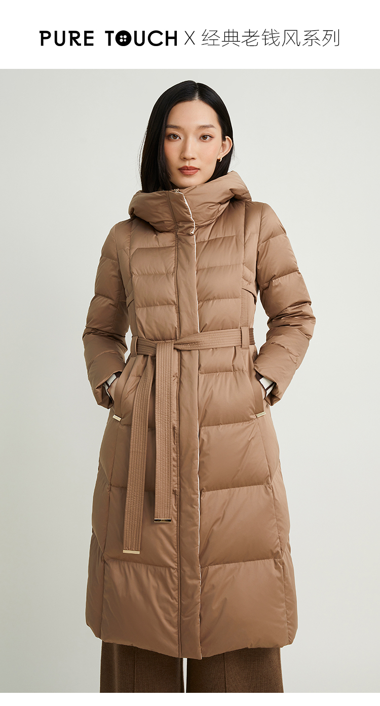 pure touch冬季女士羽绒服连帽长款外套白鸭绒修身时尚加厚上衣新
