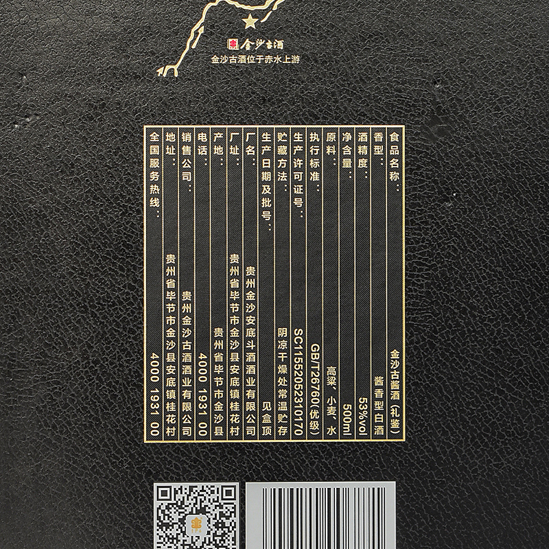 贵州金沙古礼鉴酱香型白酒53度500ml*6瓶