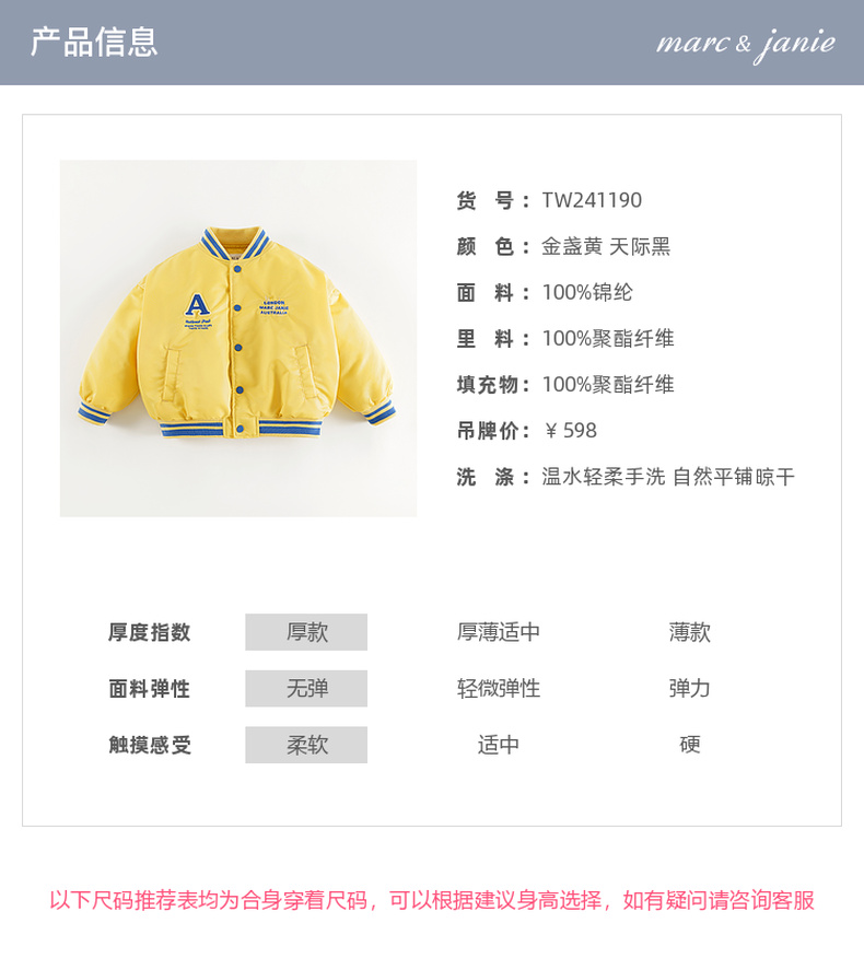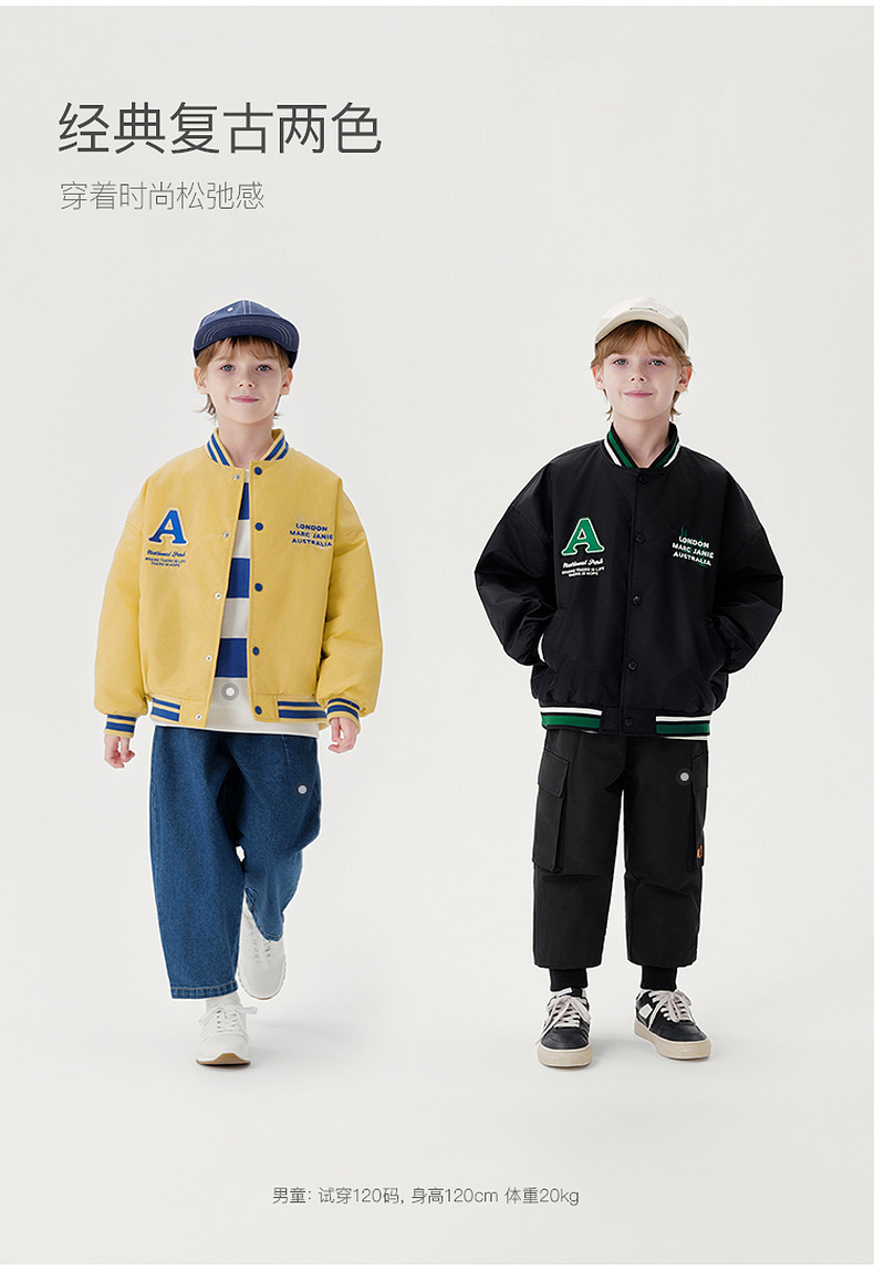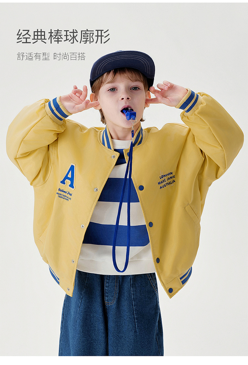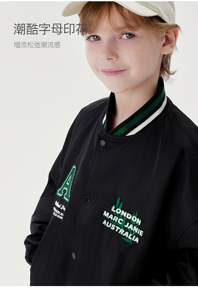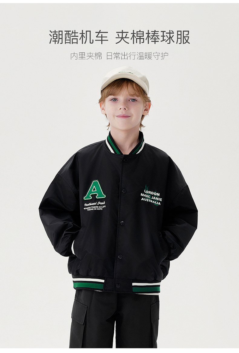 马克珍妮男童潮酷机车宽松棒球服儿童棉衣外套2024秋冬新款241190