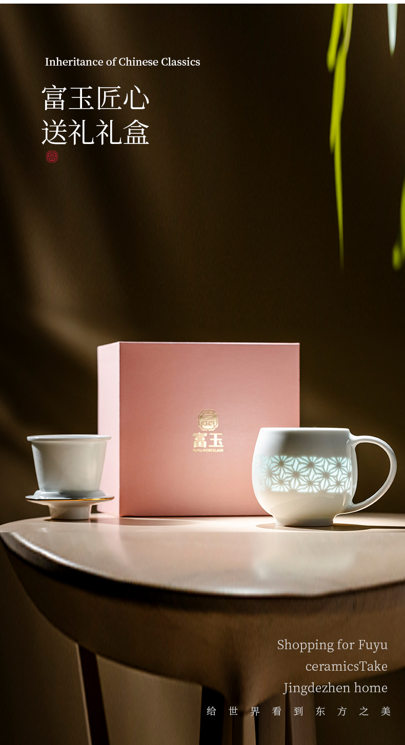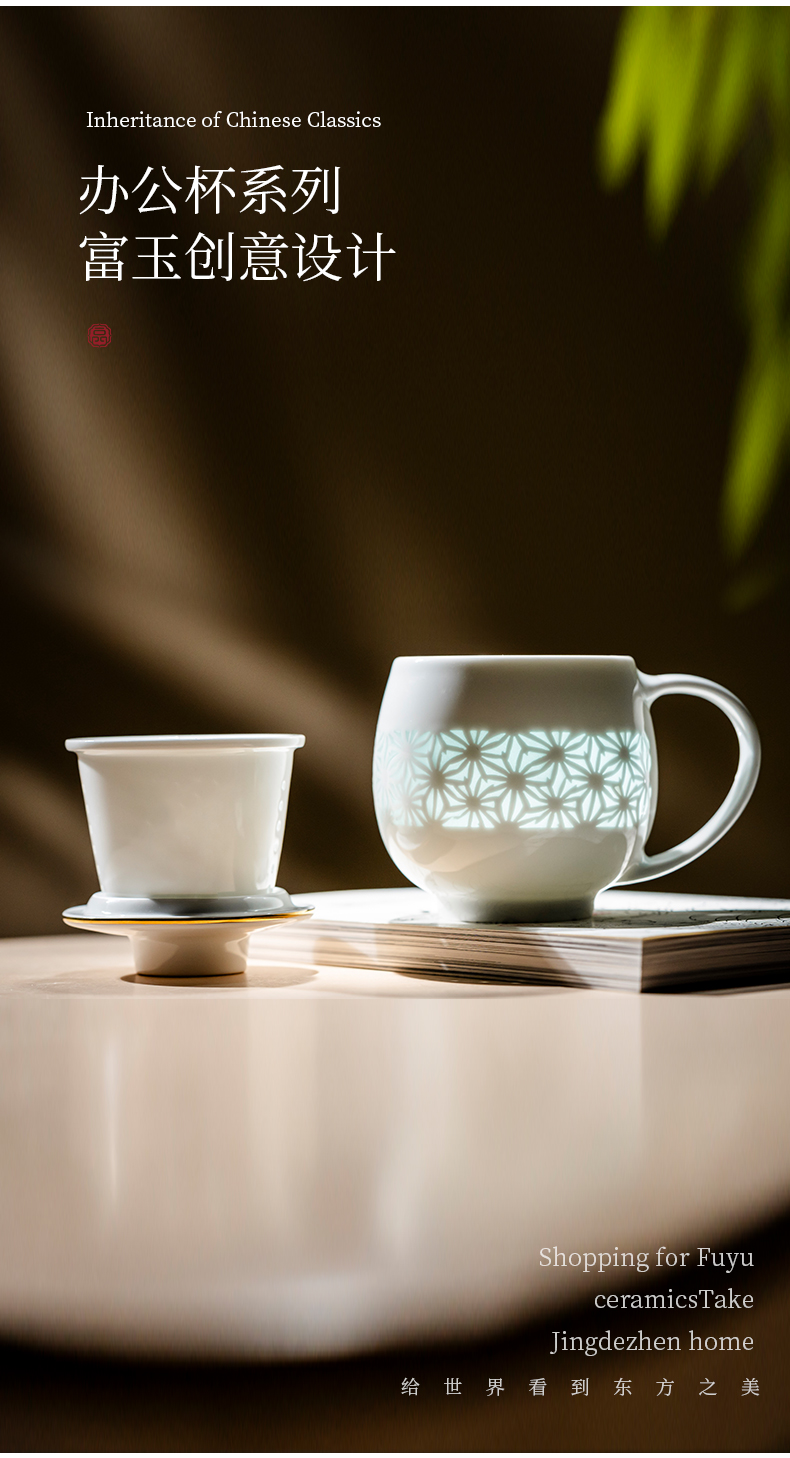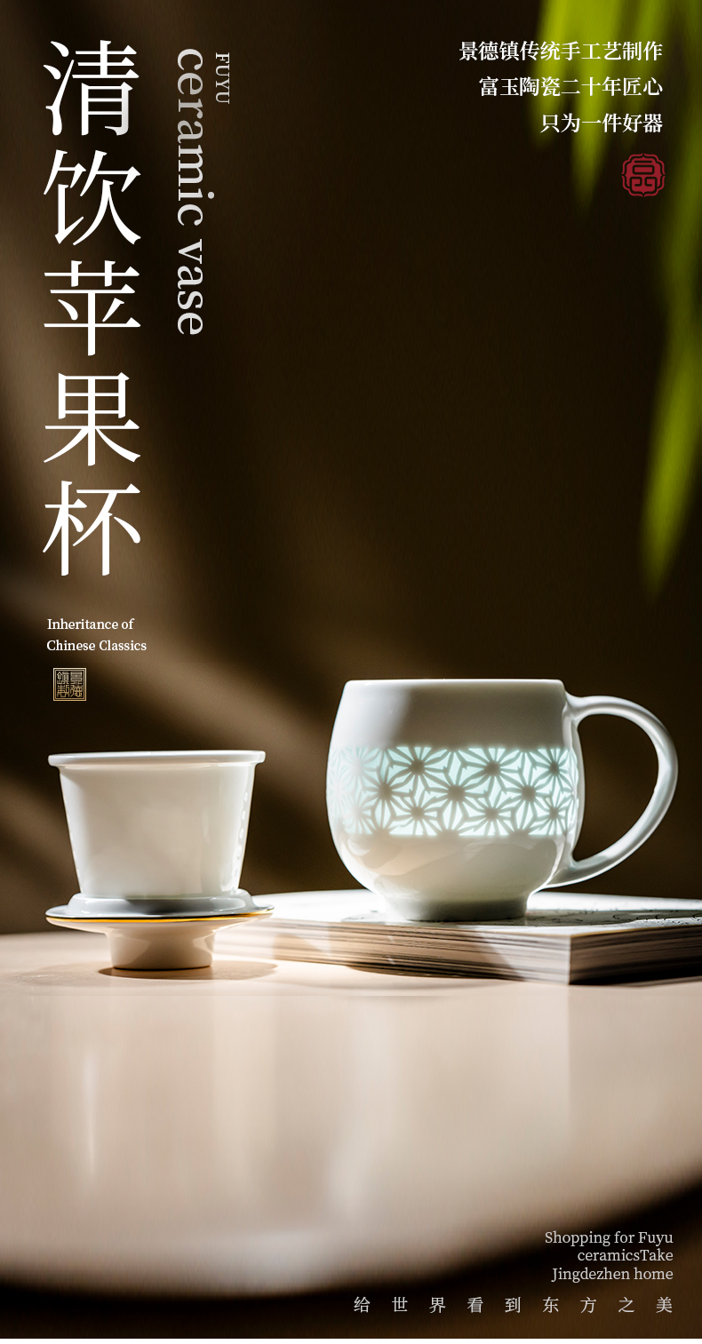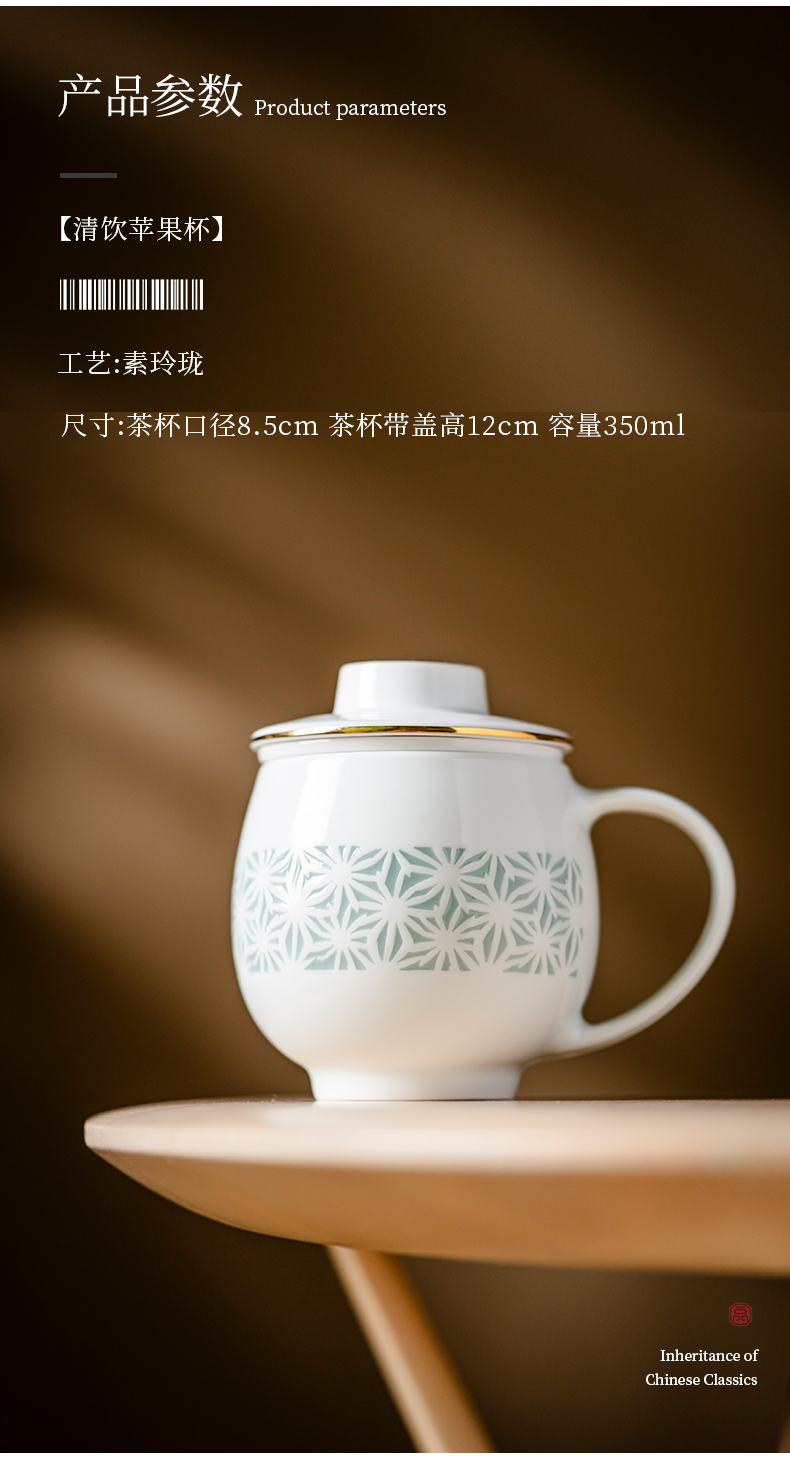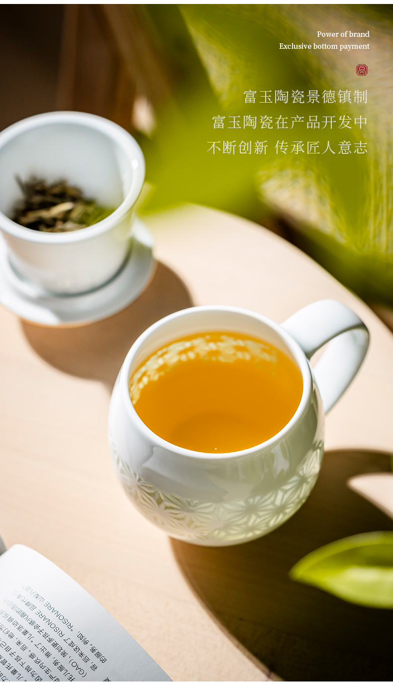富玉 景德镇陶瓷茶杯个人专用高档女士茶漏杯茶水分离清饮苹果杯