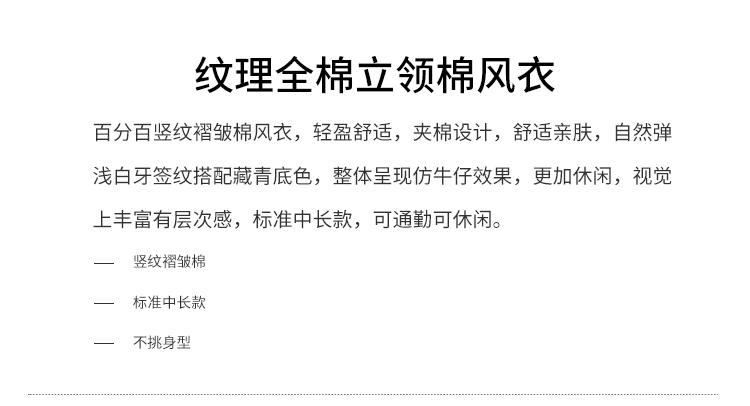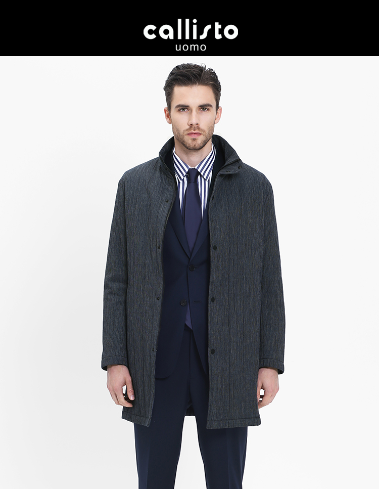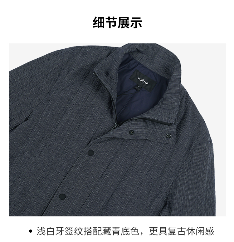 callisto深蓝纹理全棉立领棉风衣 SRFES026C