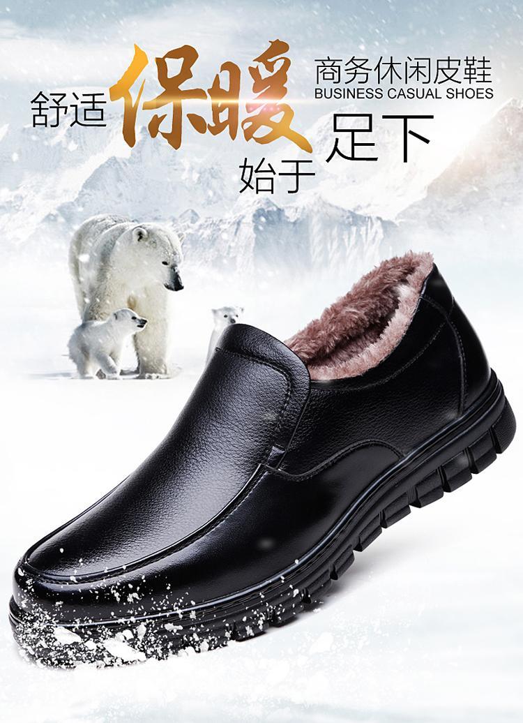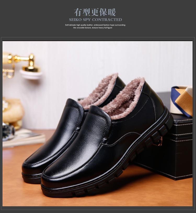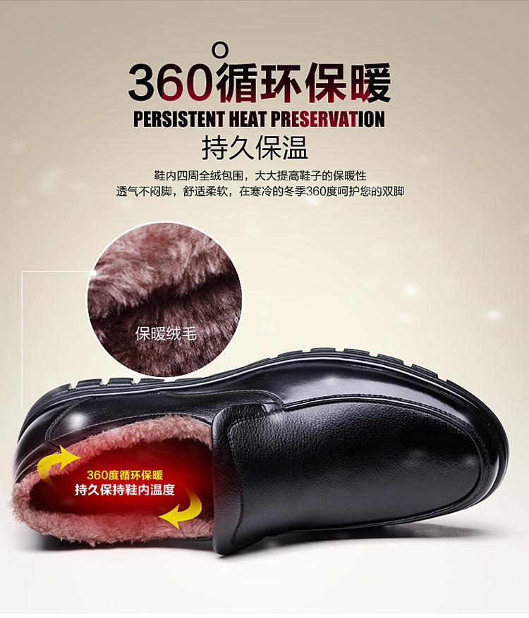 冬季加绒男士皮鞋男中老年保暖加厚棉鞋中年人爸爸鞋软底防滑男鞋