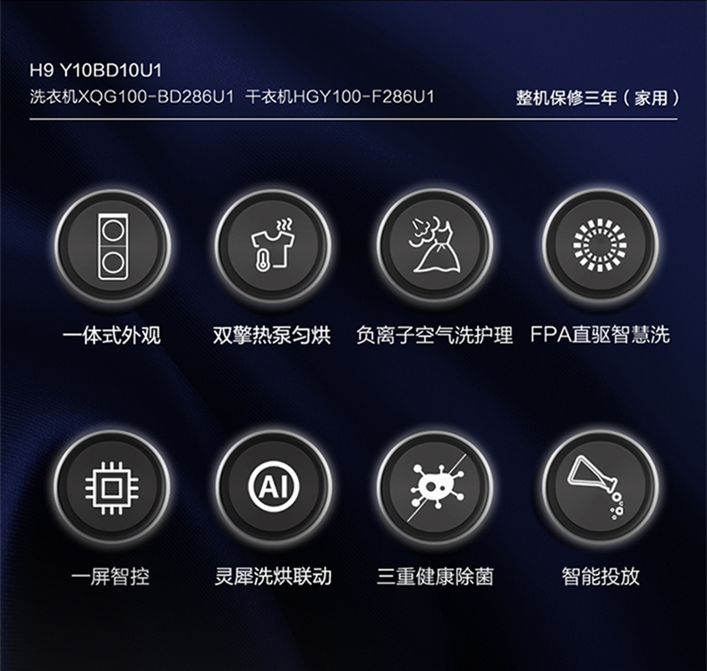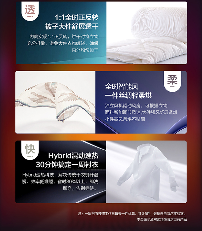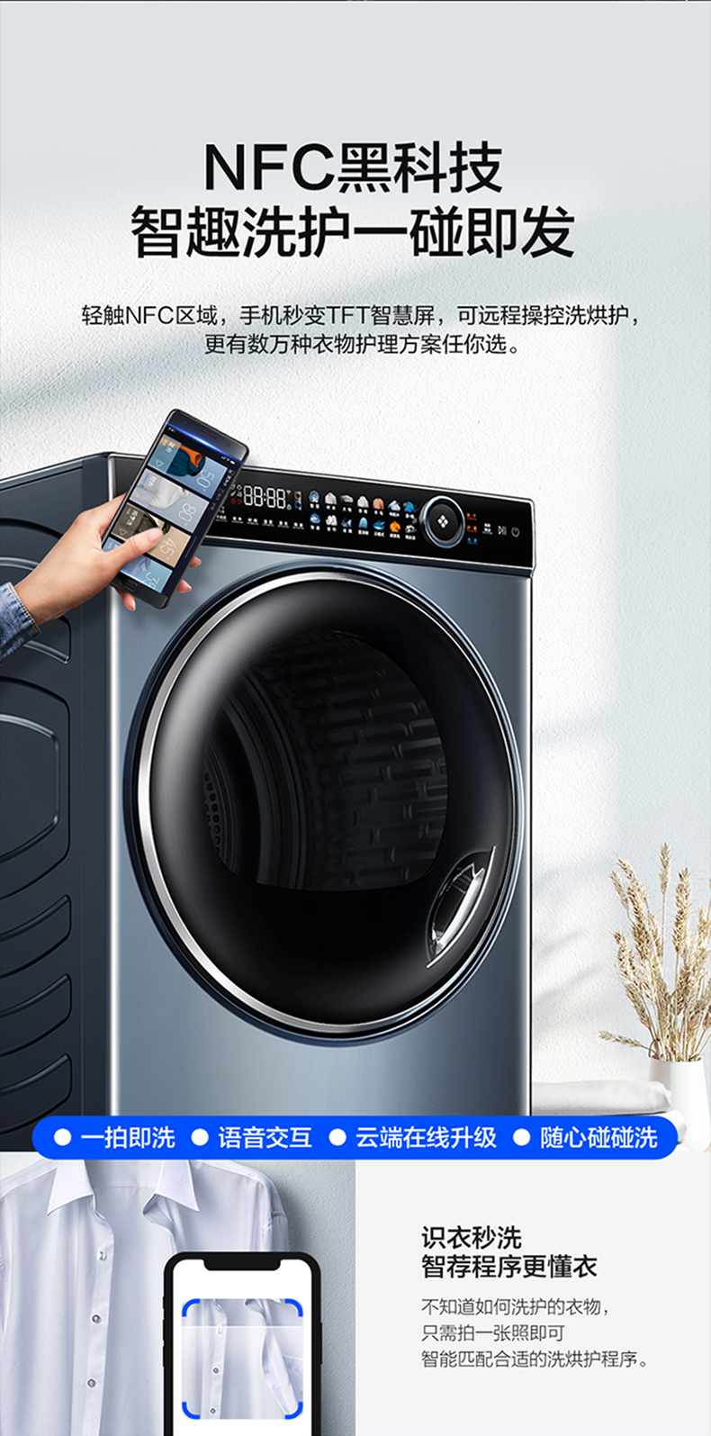 海尔【叠黛】10公斤热泵除菌烘干机洗烘套装H9【LY】