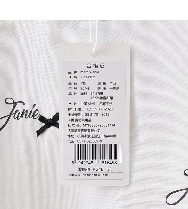 马克珍妮蝴蝶结派对女童凉感抽褶T2026年夏装新款560839