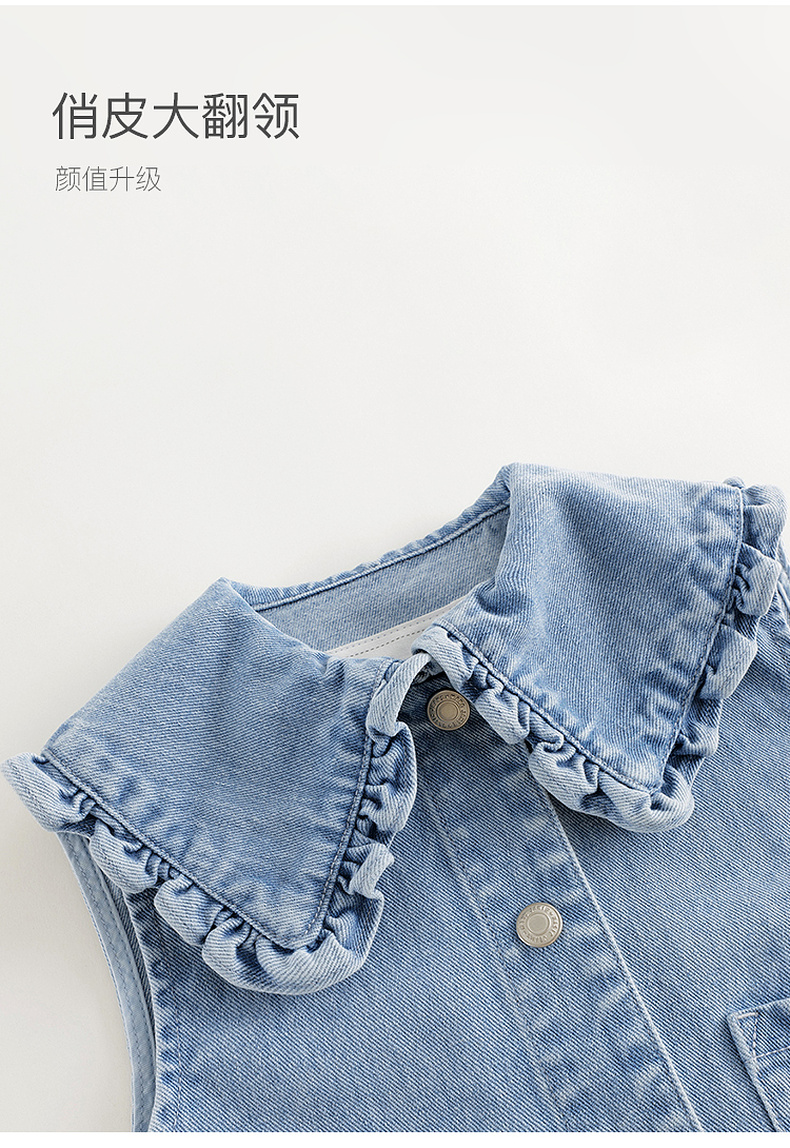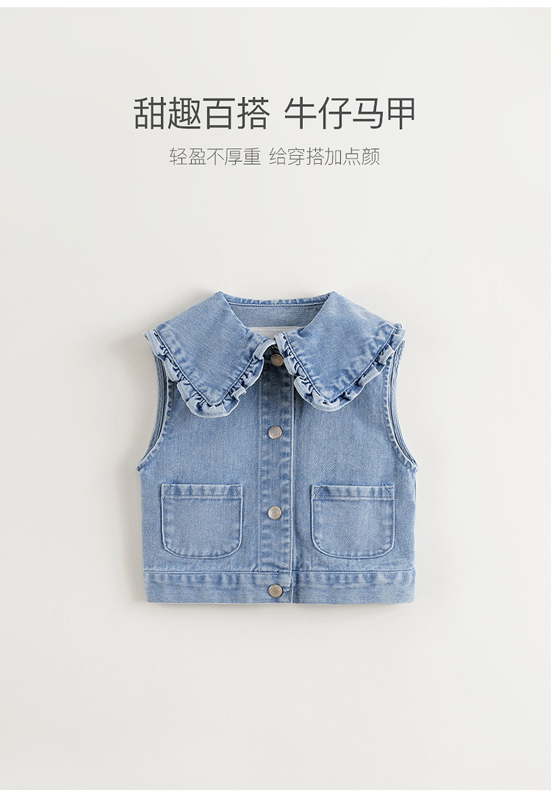 马克珍妮女童甜酷翻领牛仔马甲儿童上衣宝宝2025年春装新款250199