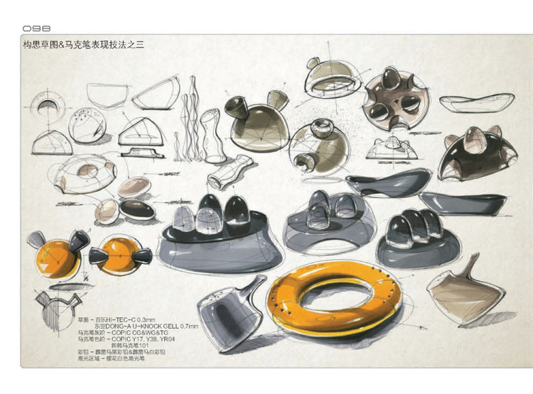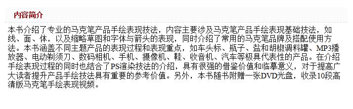 目 录 写在出版之前 前言 线、面、体 008 缩略草图 016 字体和箭头 026 马克笔表现技法 036 使用场景 058 车头标 068 瓶子 078 盐和胡椒调料罐 092 MP3播放器 102 电动剃须刀 128 数码相机 140 手机 150 摄像机 168 鞋 180 收音机 198 汽车 210 其他产品 222 |