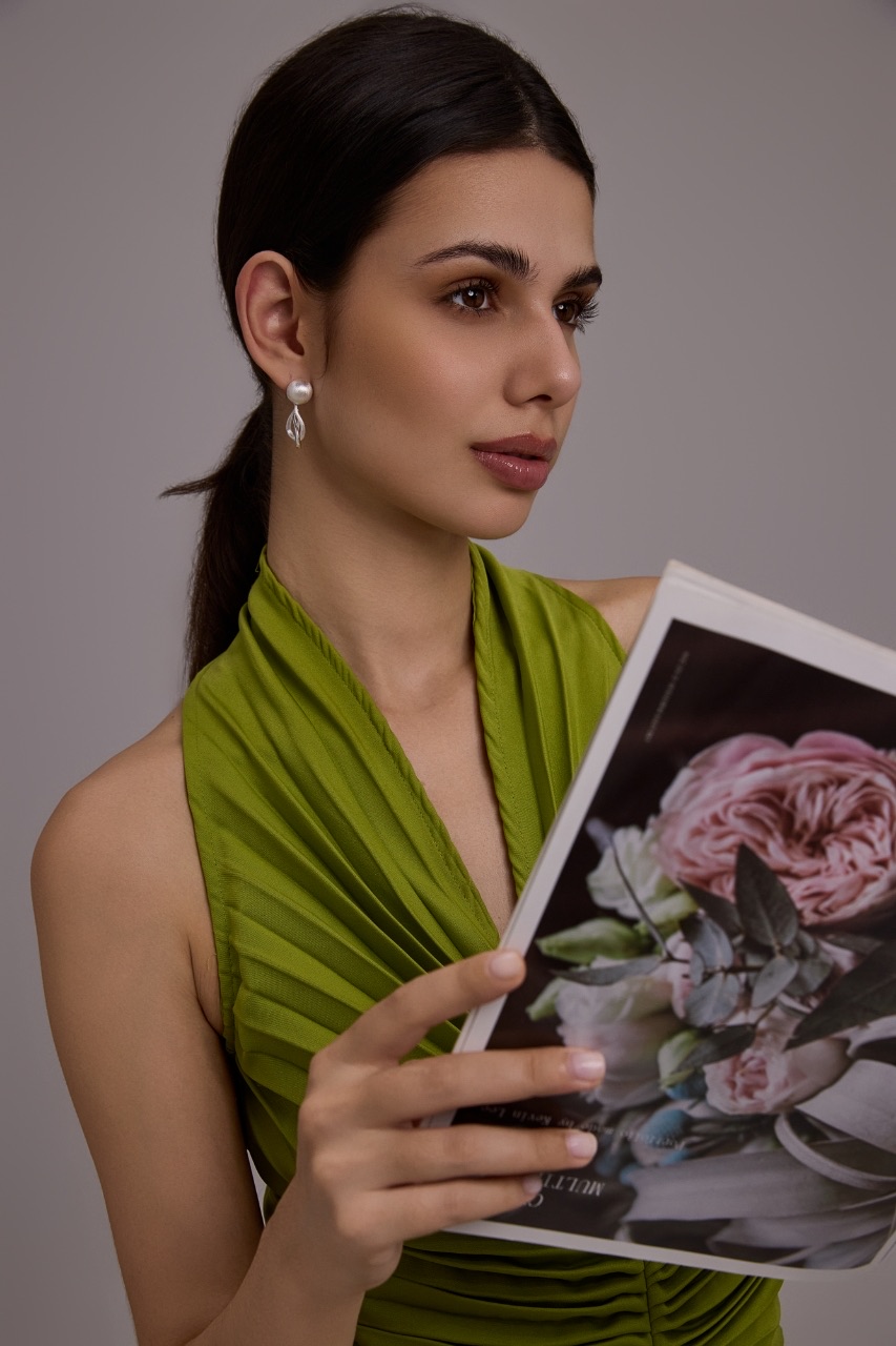 TYNVIE 荷叶边装饰袖口套头针织衫-蓝色