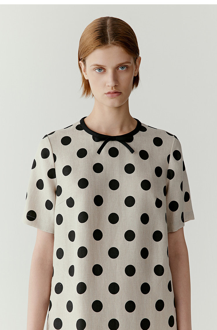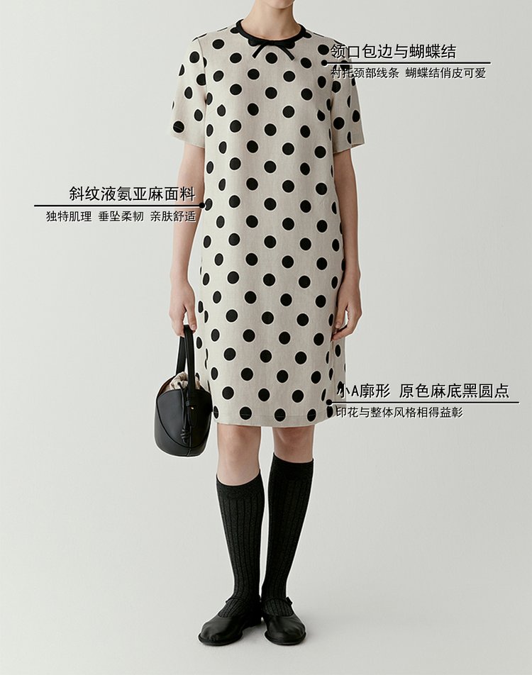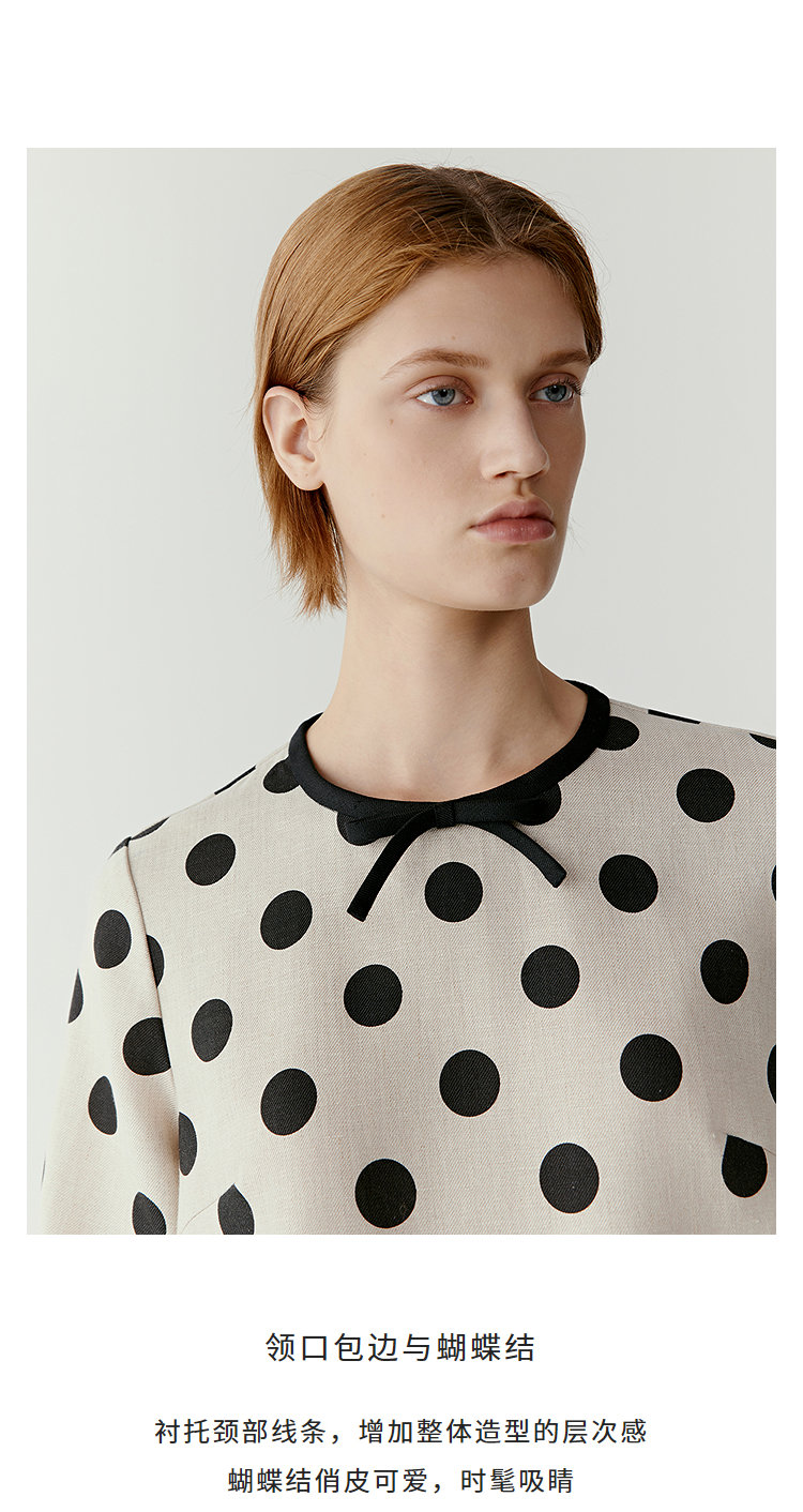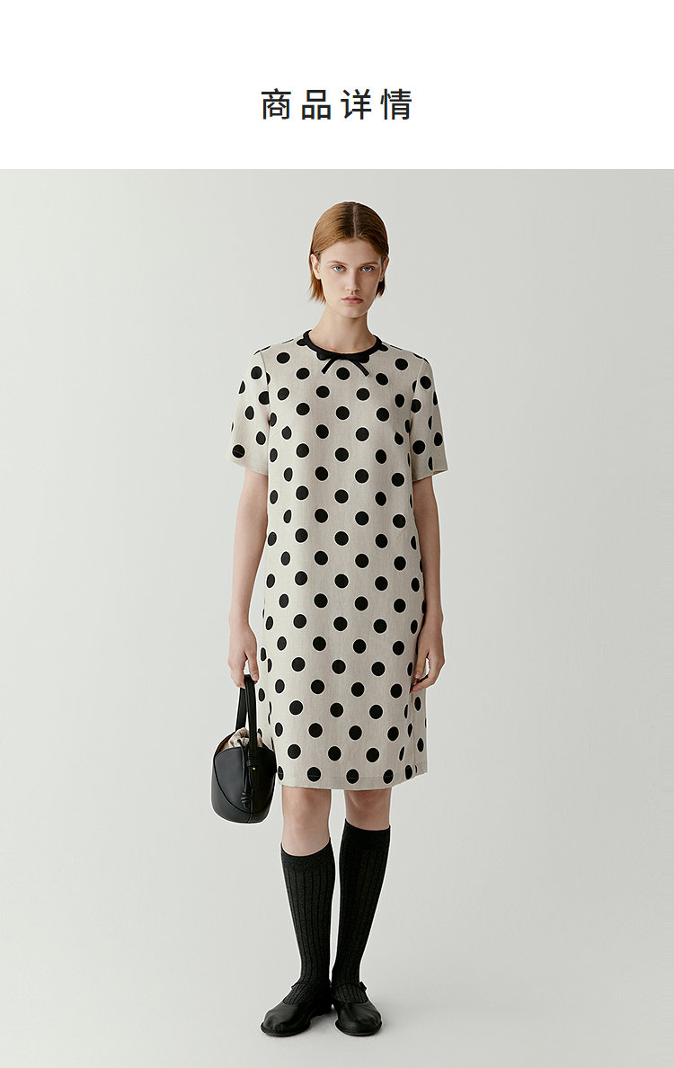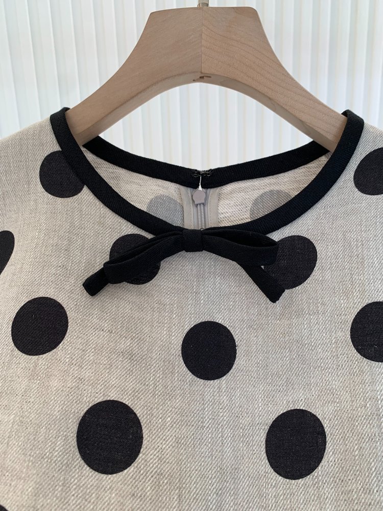 小禾同款新款麻质黑圆点结合,俏皮甜美蝴蝶结点缀