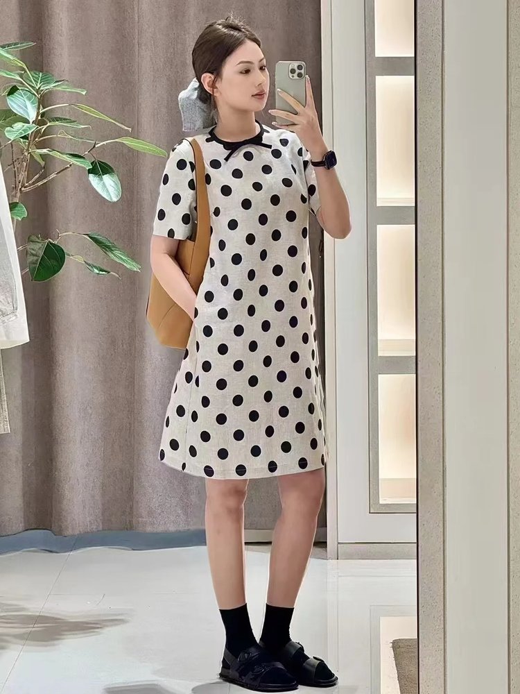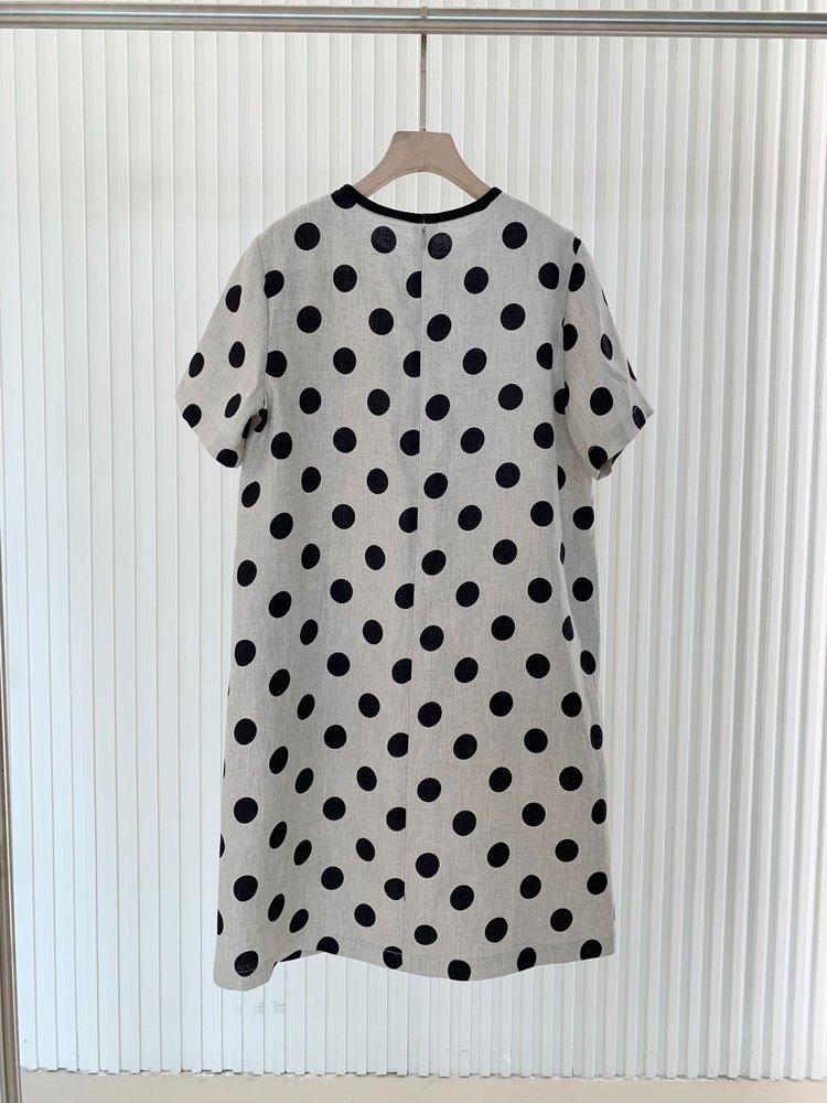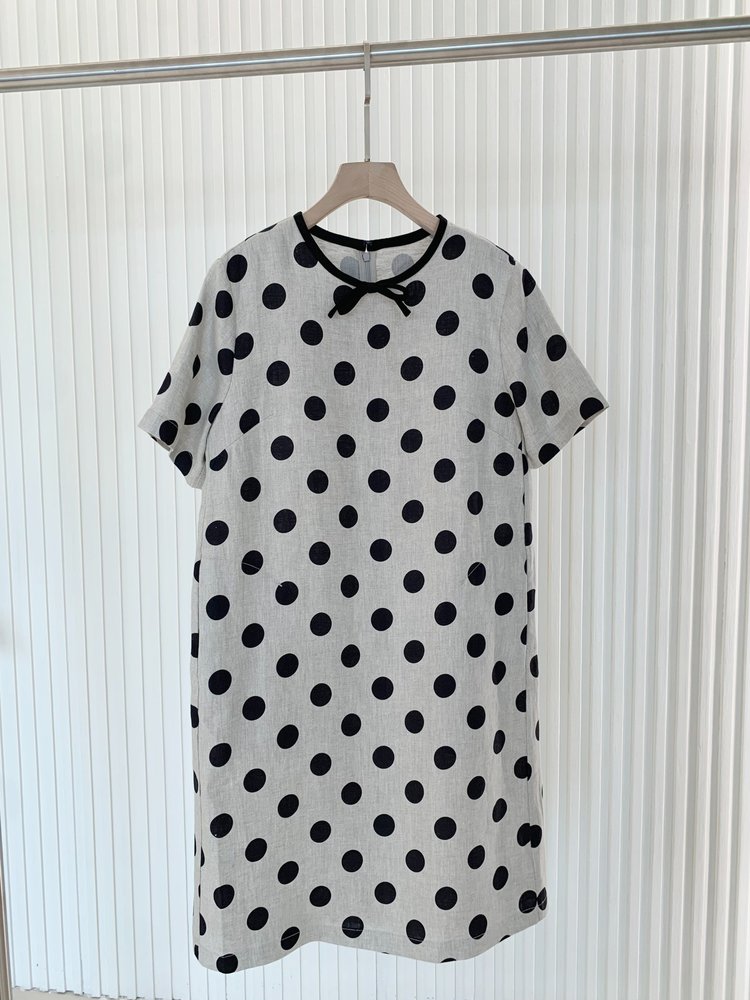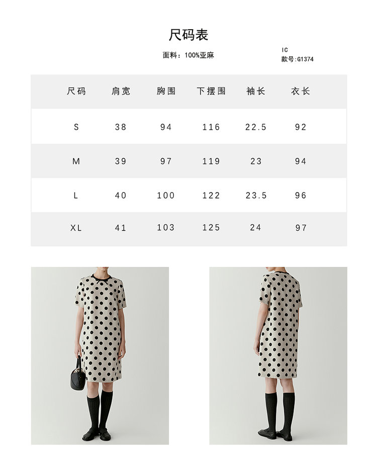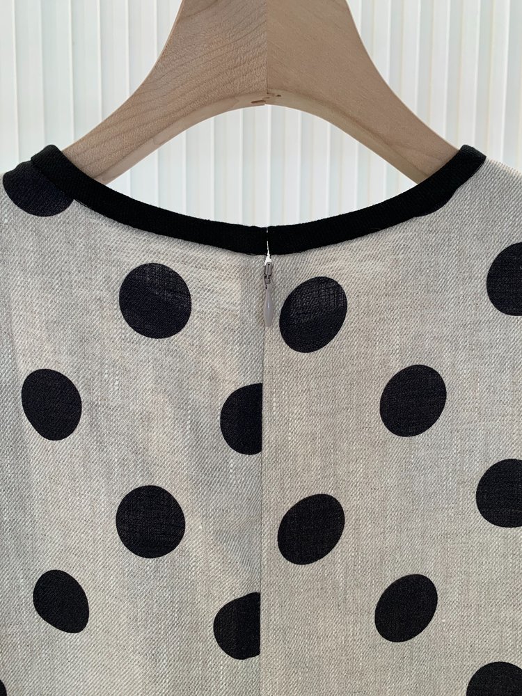 【高品质私服】【GIC斜纹亚麻波点及膝连衣裙】独特肌理 垂坠柔韧 亲肤舒适G1374【无标出货 介意慎拍】CC