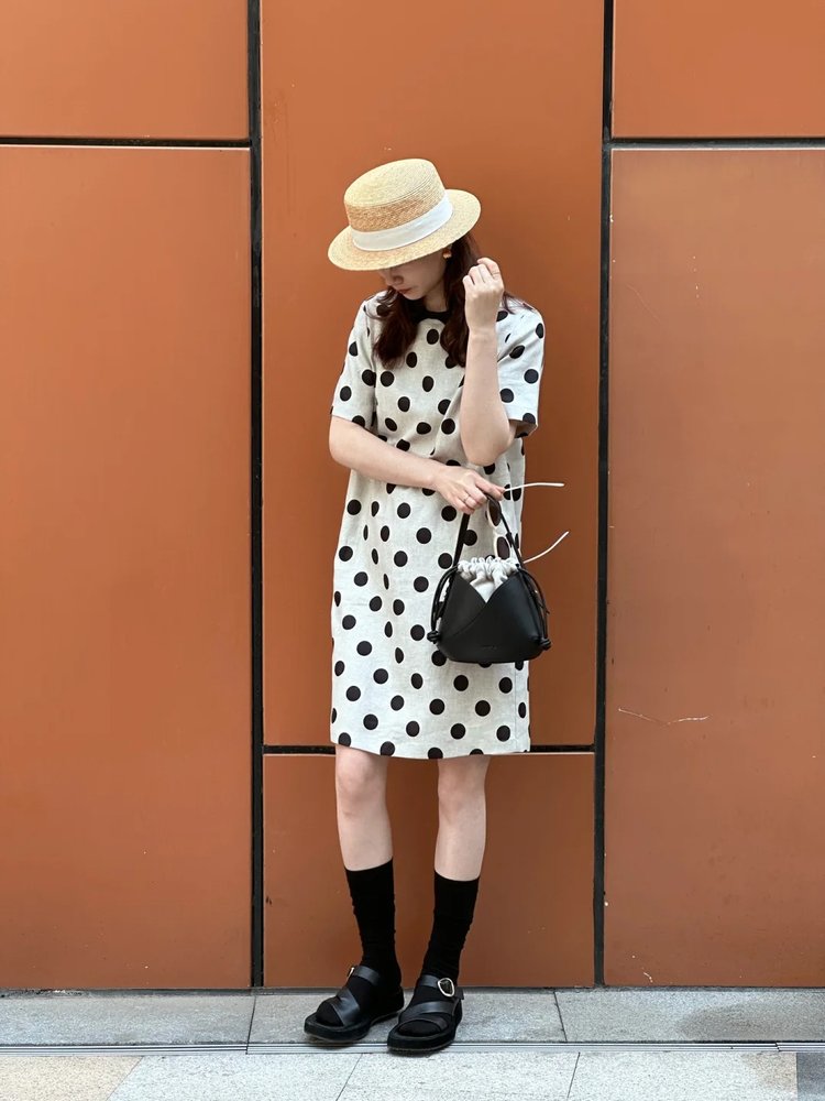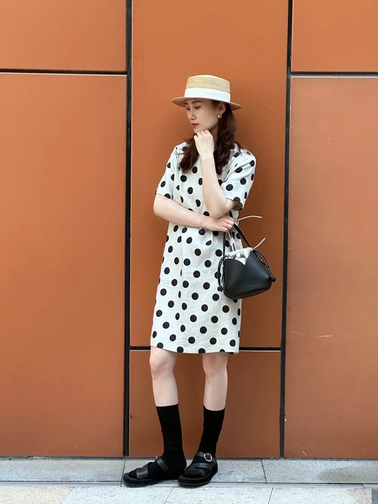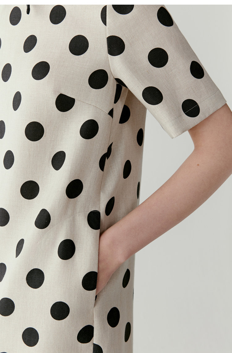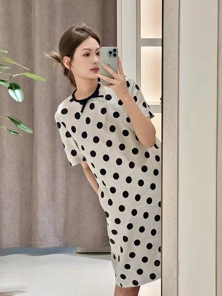 【高品质私服】【GIC斜纹亚麻波点及膝连衣裙】独特肌理 垂坠柔韧 亲肤舒适G1374【无标出货 介意慎拍】CC
