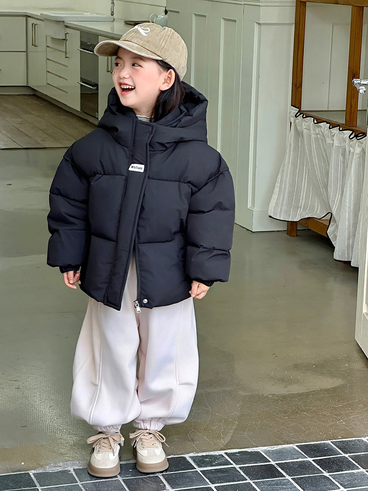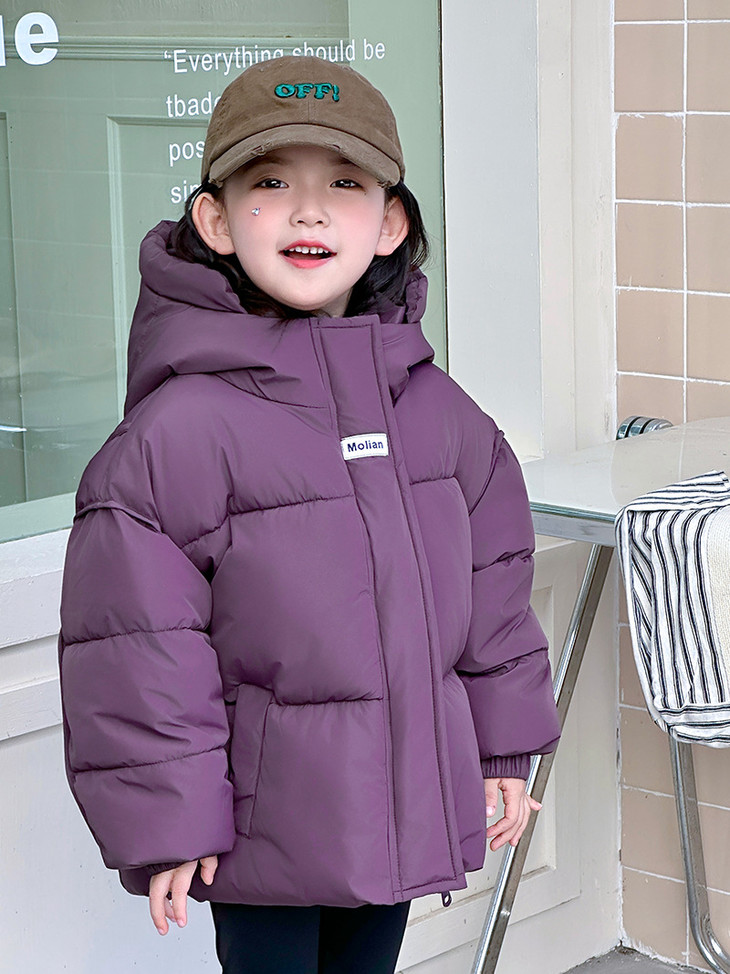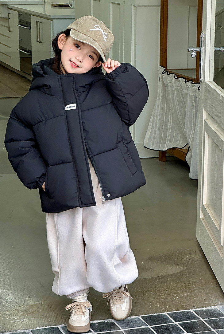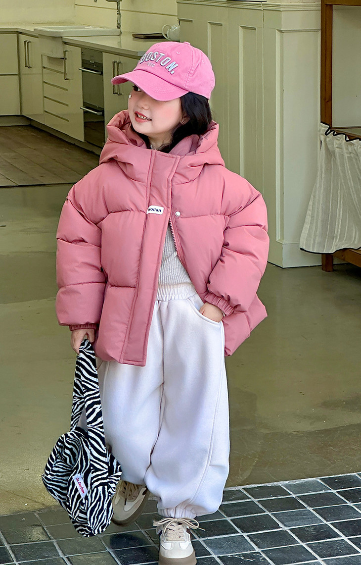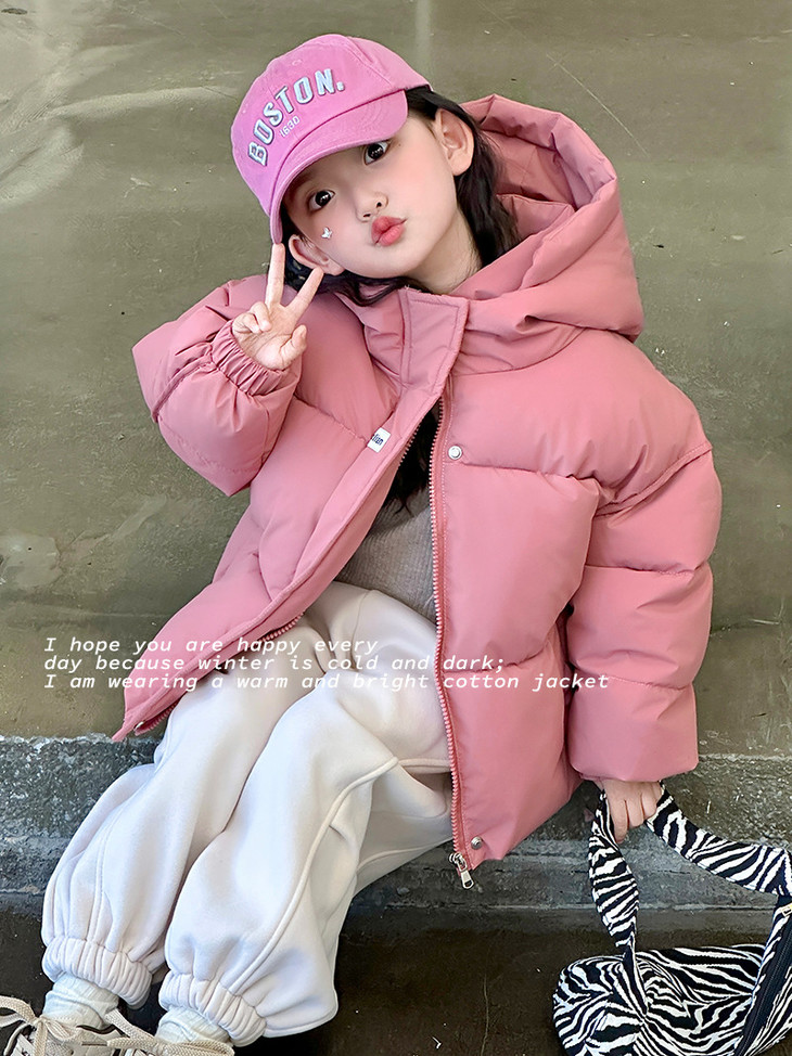 冬季韩版面包服儿童羽绒棉服男童女童加厚保暖连帽棉袄纯色外套