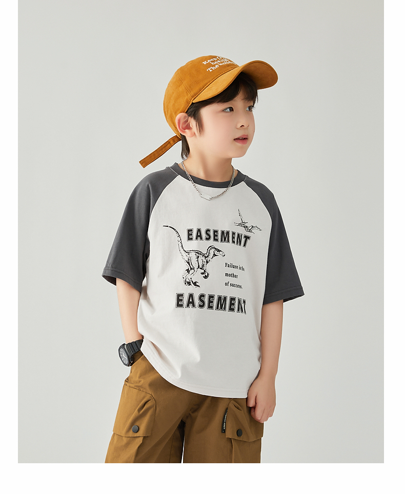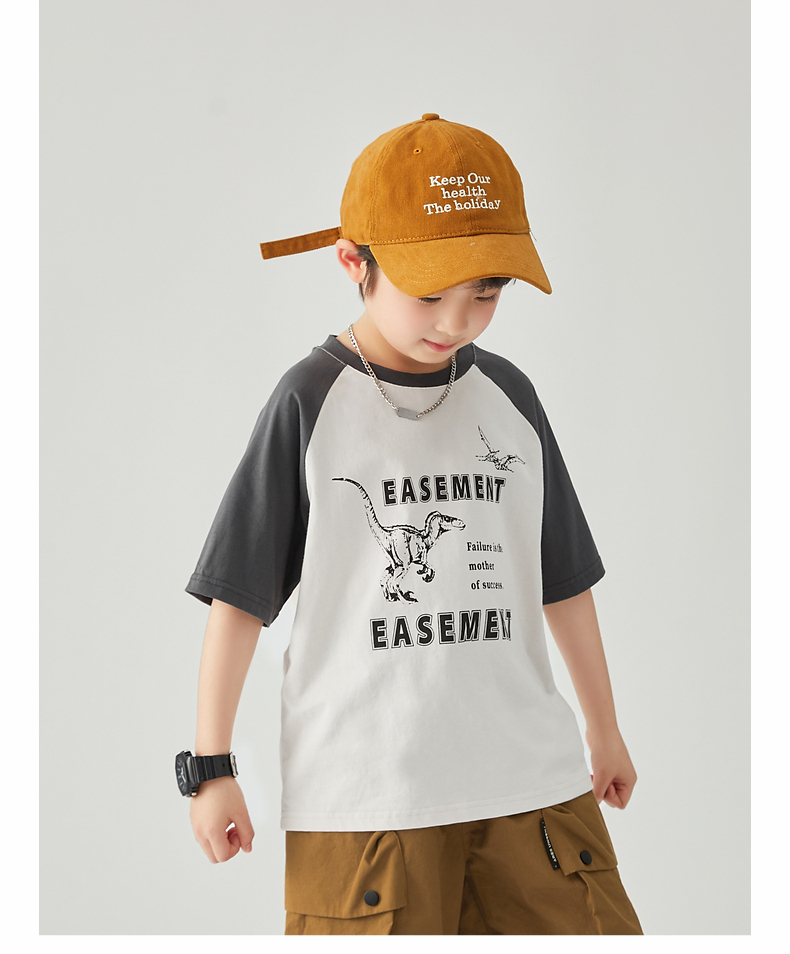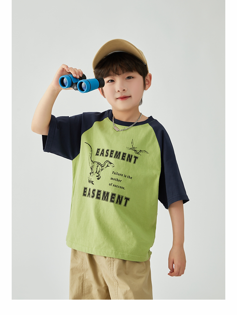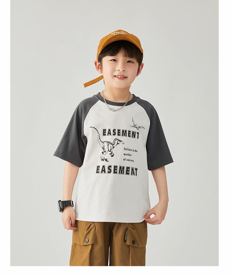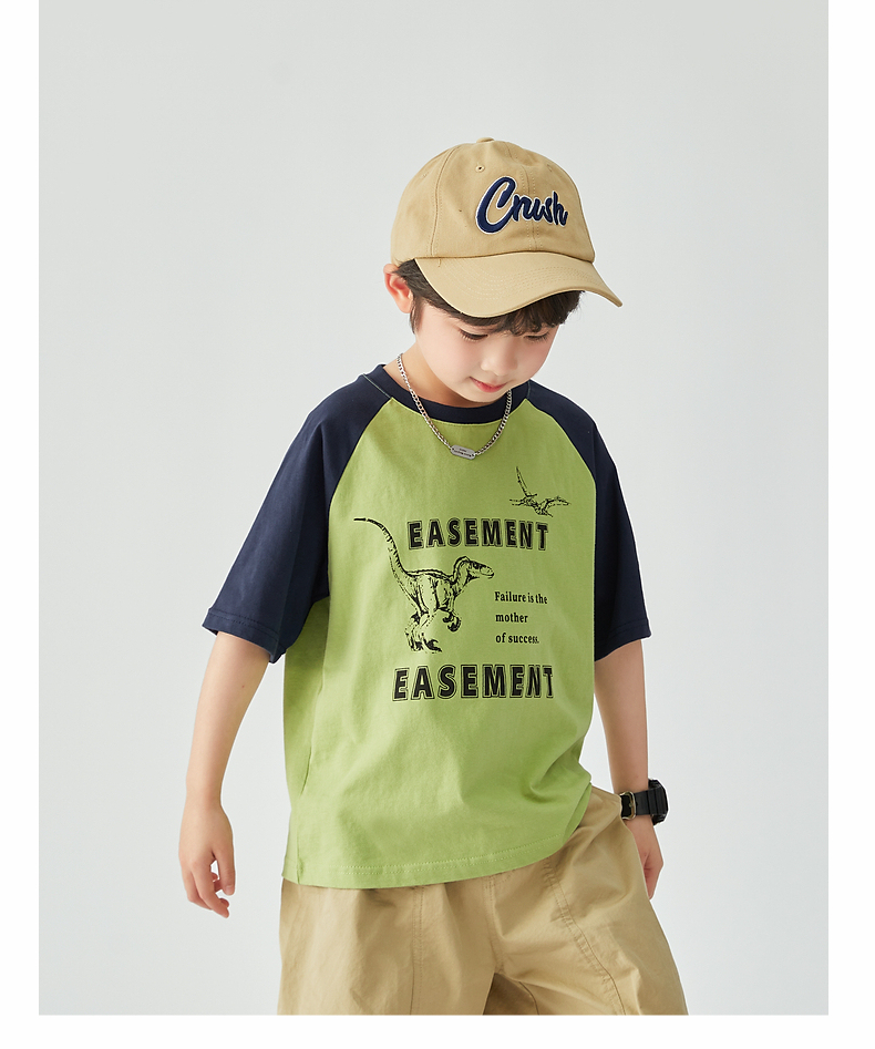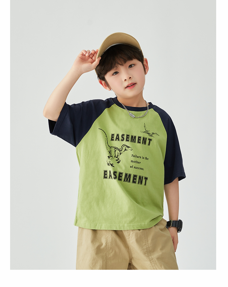 【团购价29.9元】多多家 男童T恤2024夏季新款撞色恐龙上衣纯棉薄款儿童中大童9372