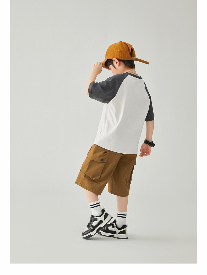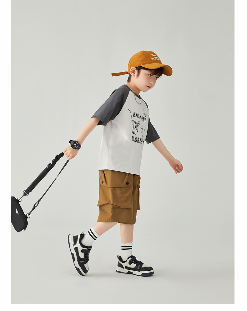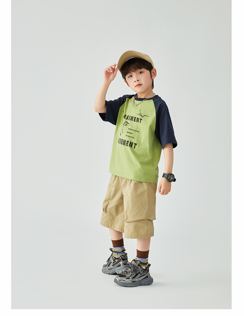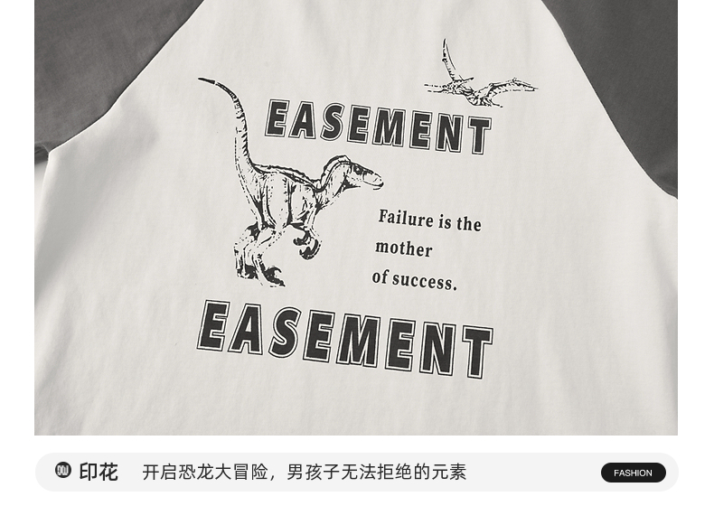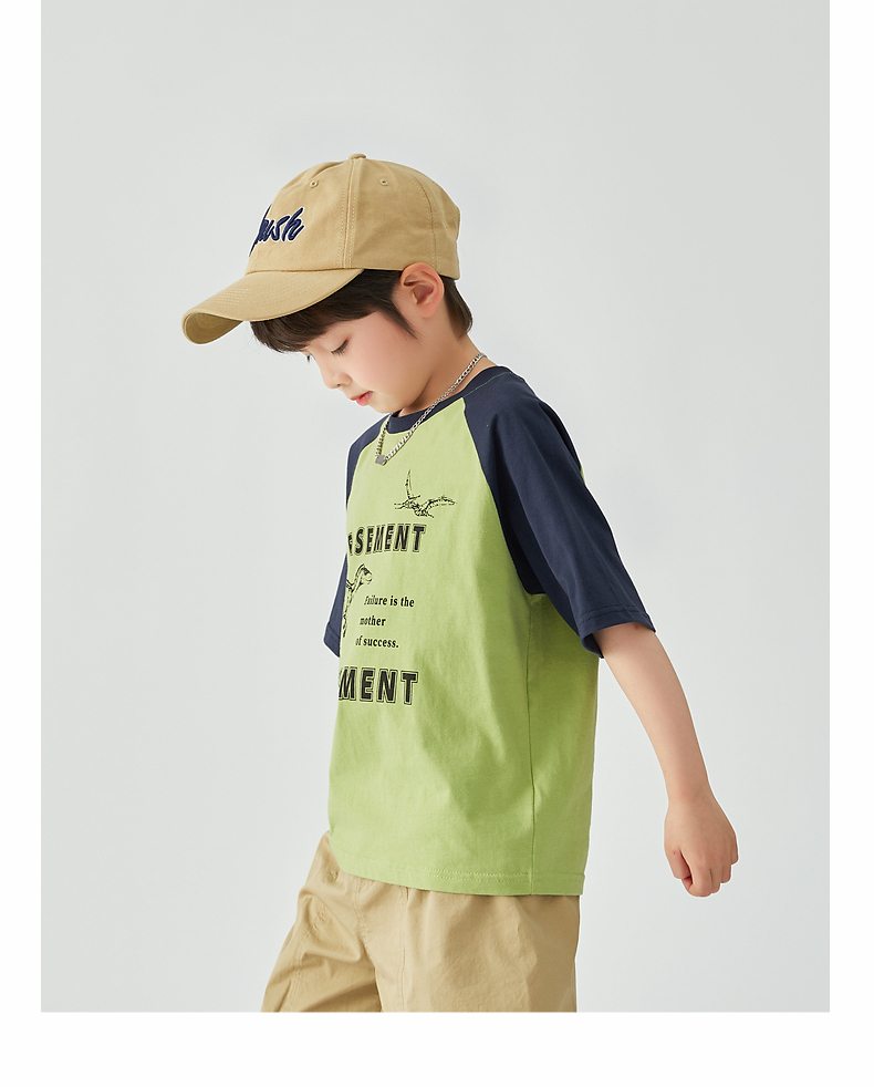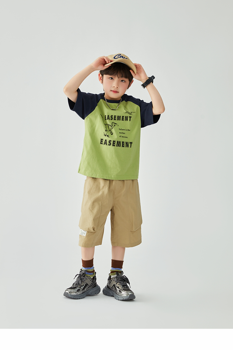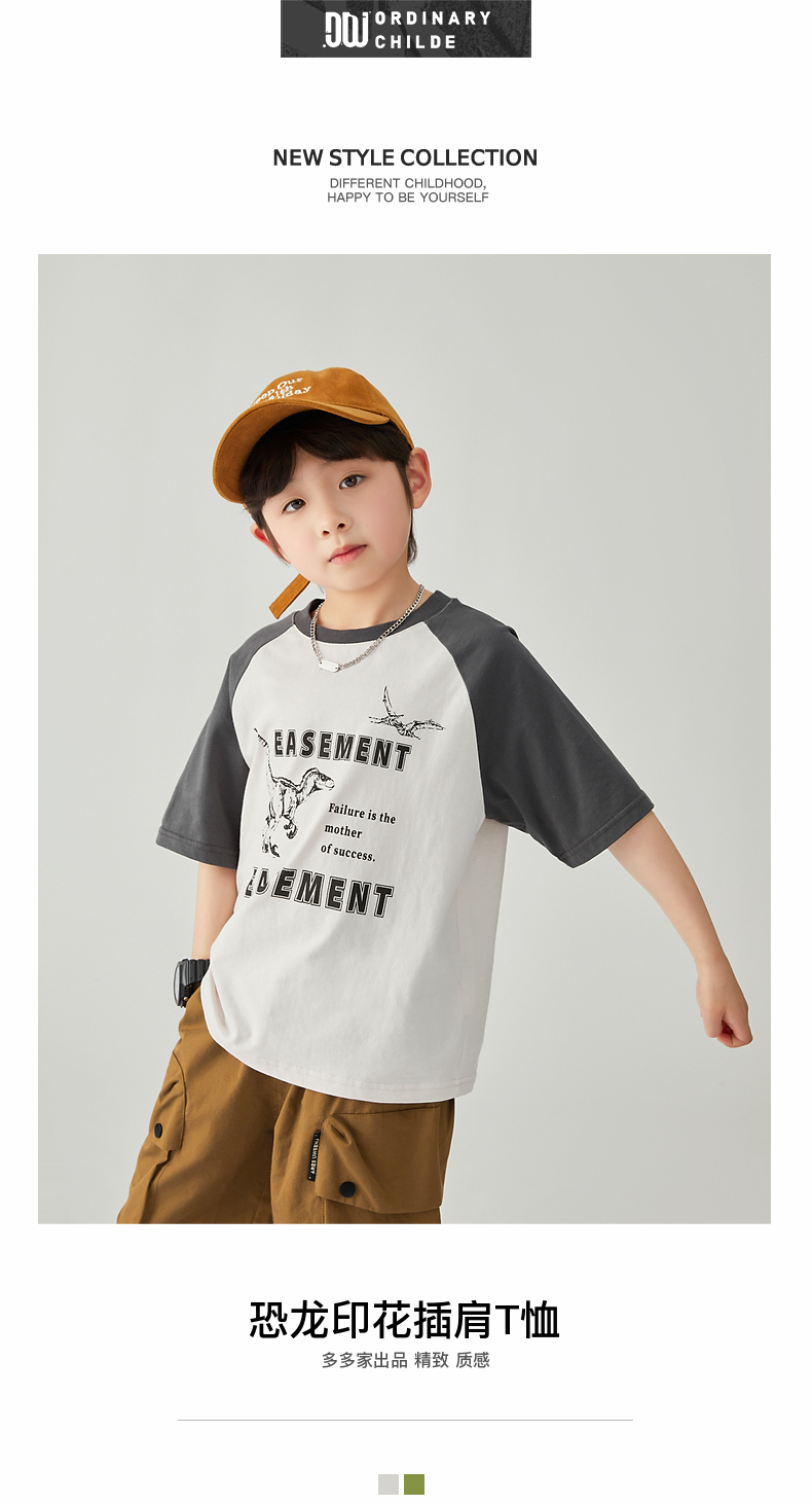 【团购价29.9元】多多家 男童T恤2024夏季新款撞色恐龙上衣纯棉薄款儿童中大童9372
