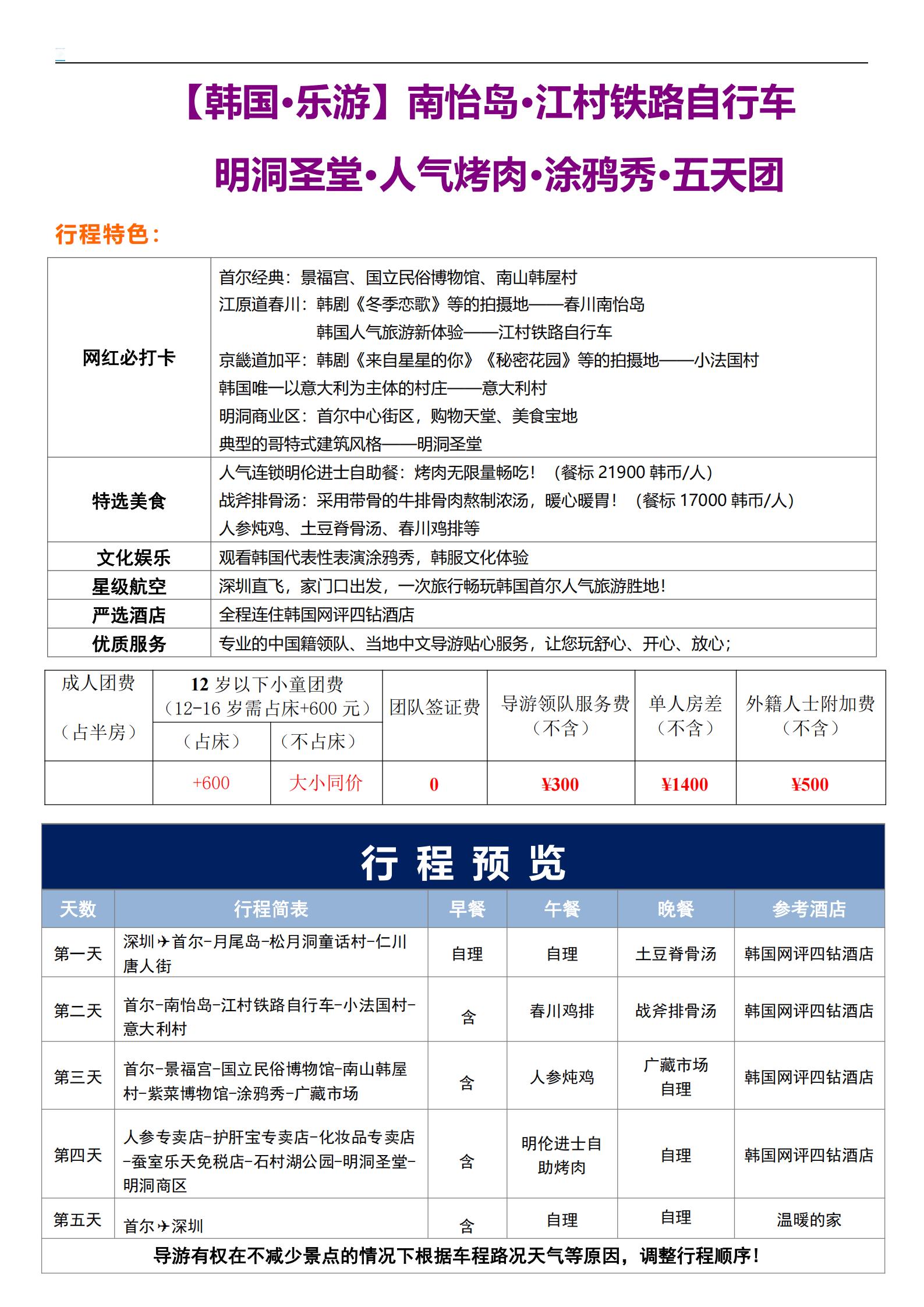 【五一特惠游】<韩国首尔+南怡岛5天>景福宫、国立民俗博物馆、南山韩屋村、江村铁路自行车、小法国村、意大利村、明洞、涂鸦秀