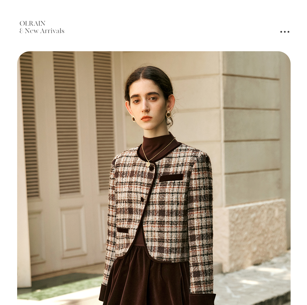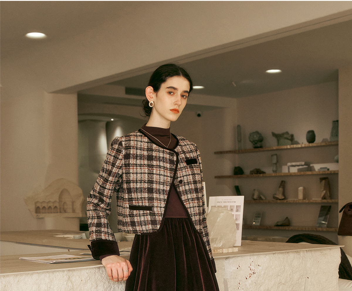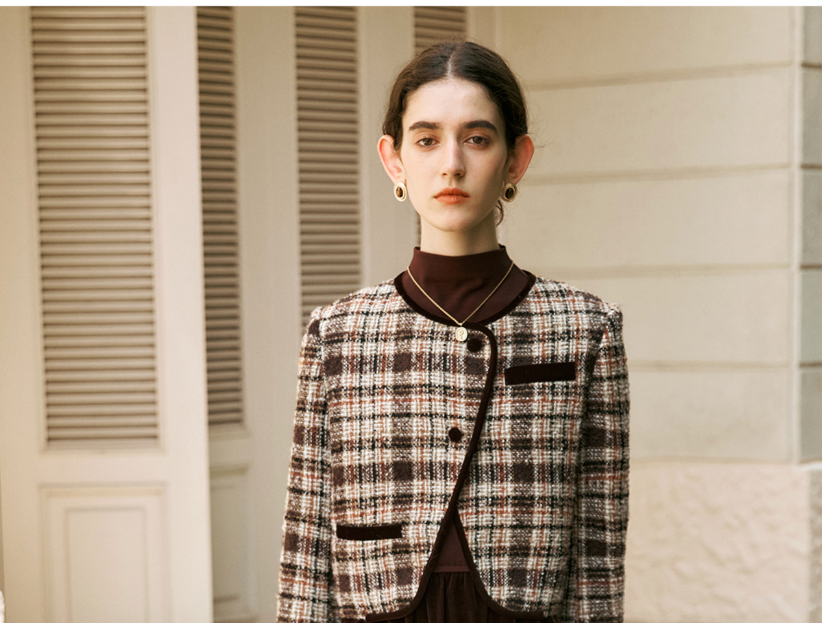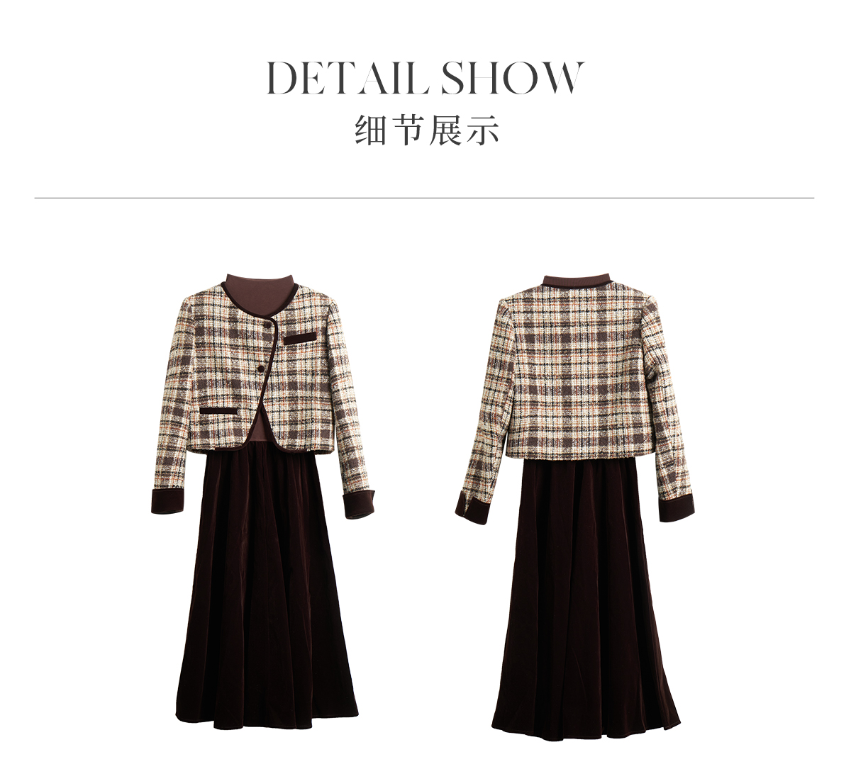 OLrain欧芮儿咖色时尚套装女冬季2024年新款通勤丝绒小香风两件套
