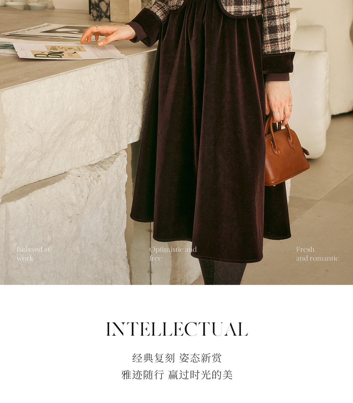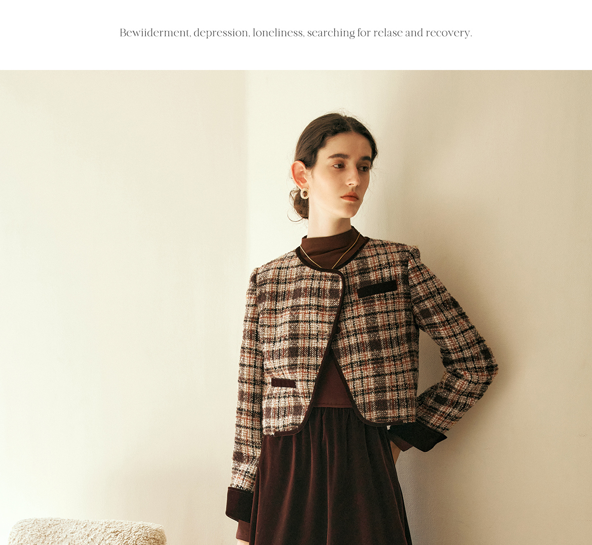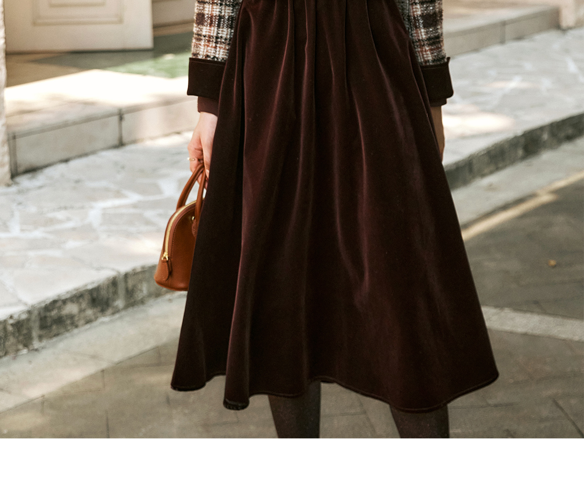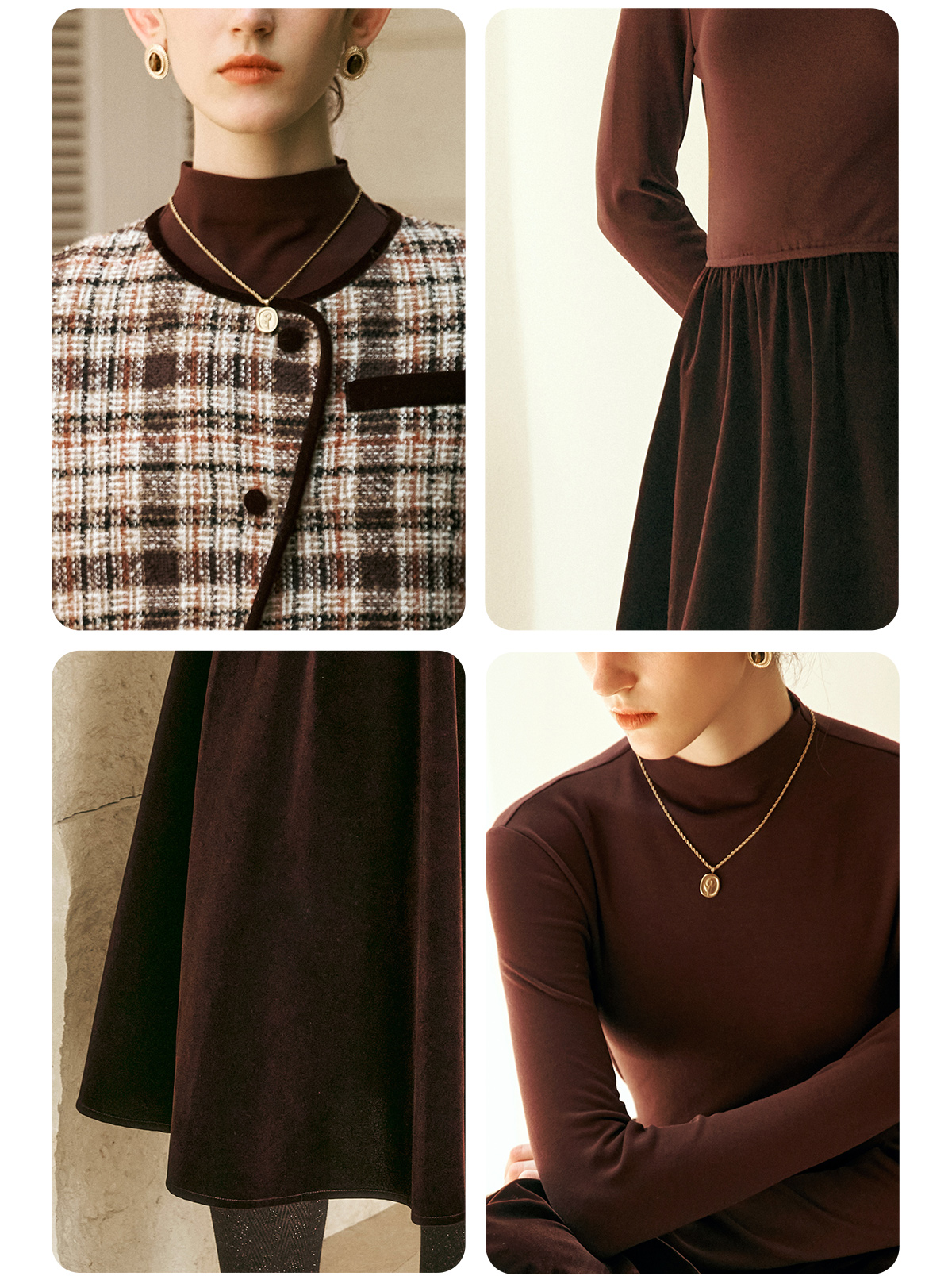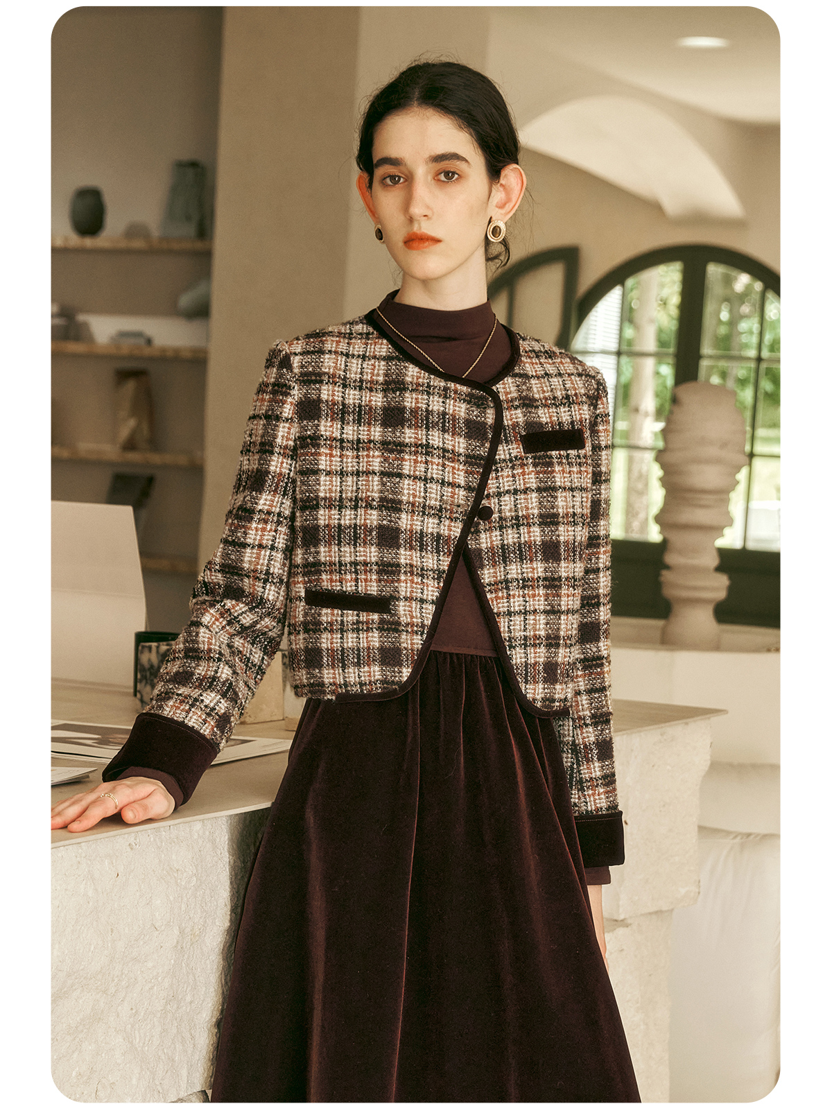 OLrain欧芮儿咖色时尚套装女冬季2024年新款通勤丝绒小香风两件套