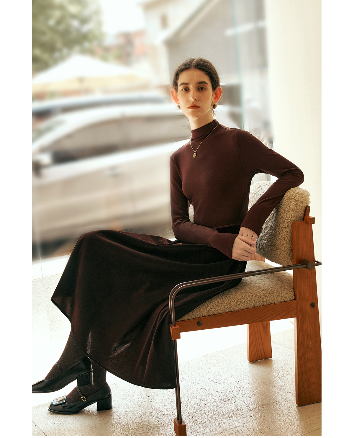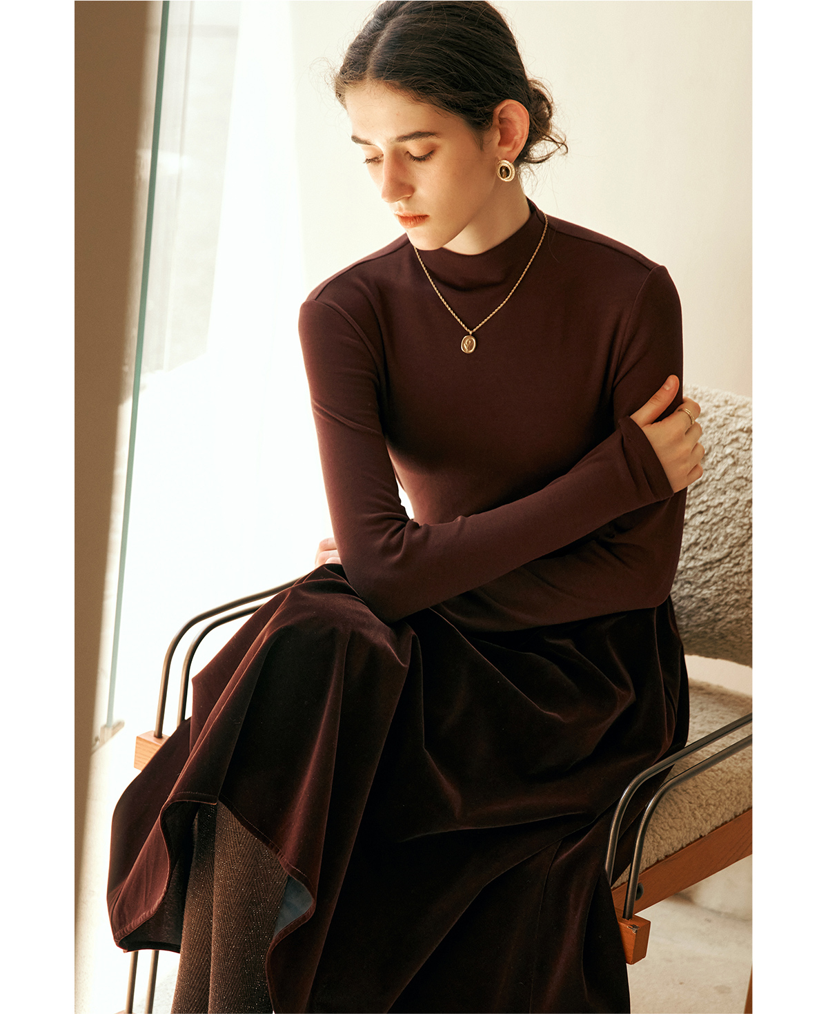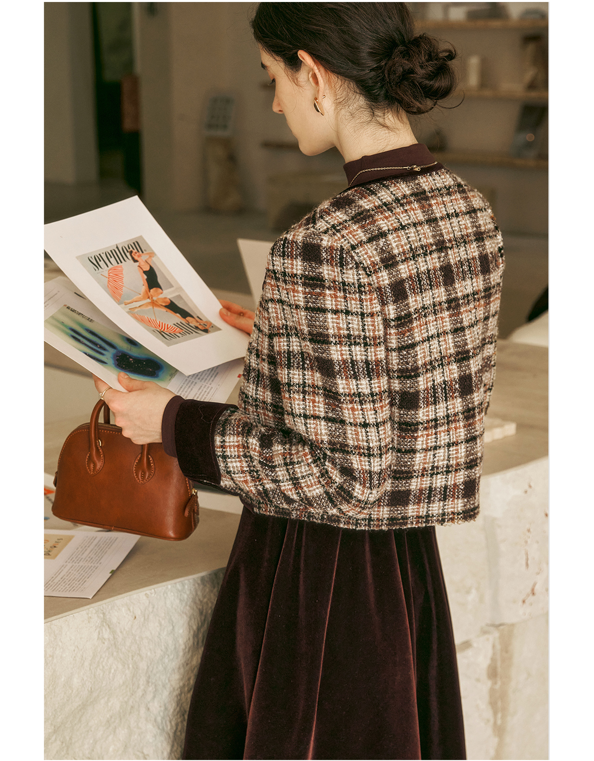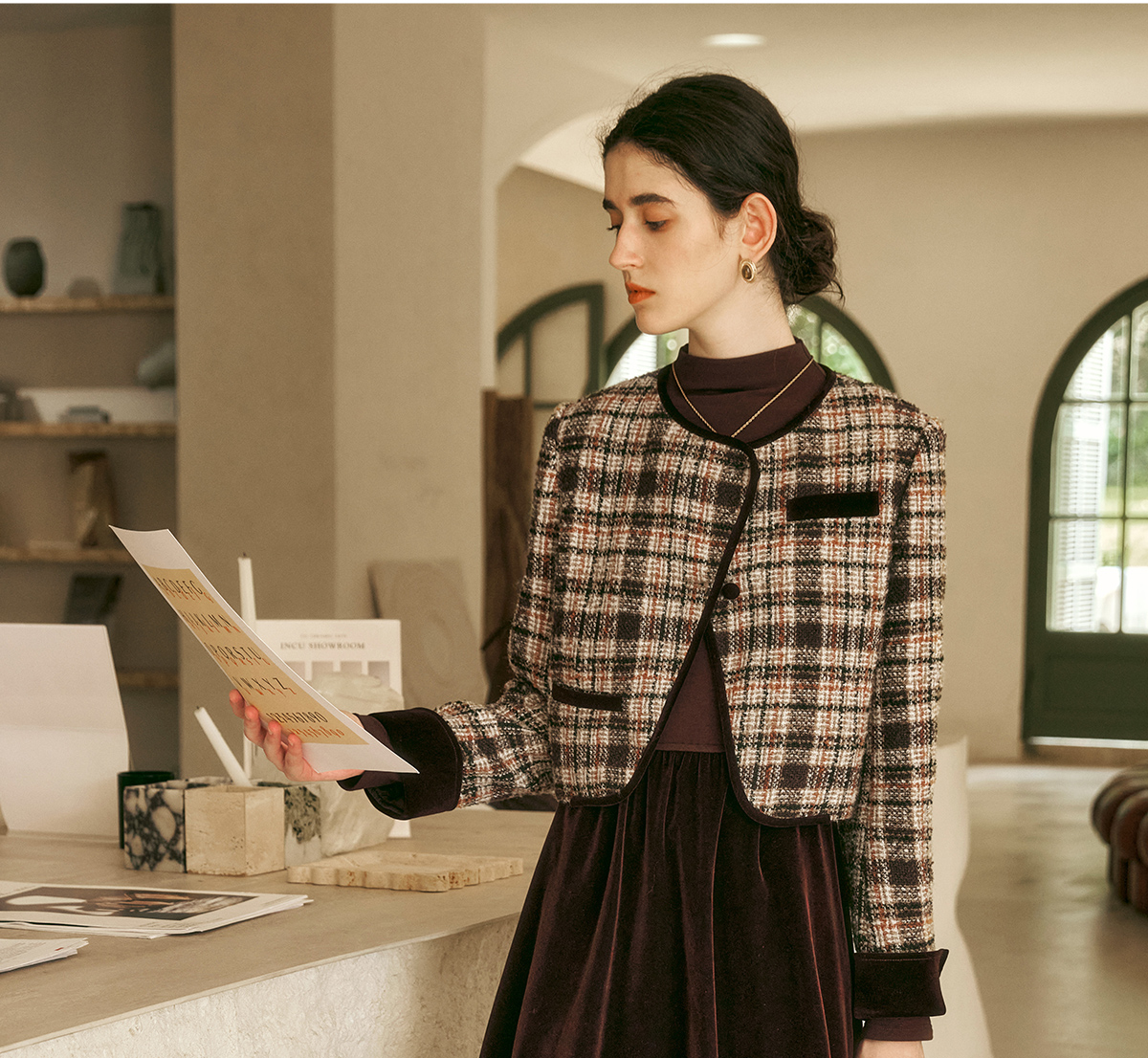 OLrain欧芮儿咖色时尚套装女冬季2024年新款通勤丝绒小香风两件套