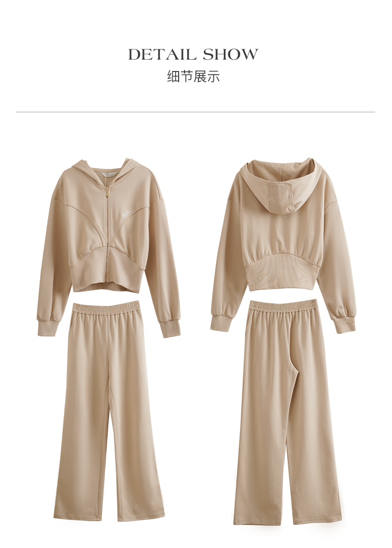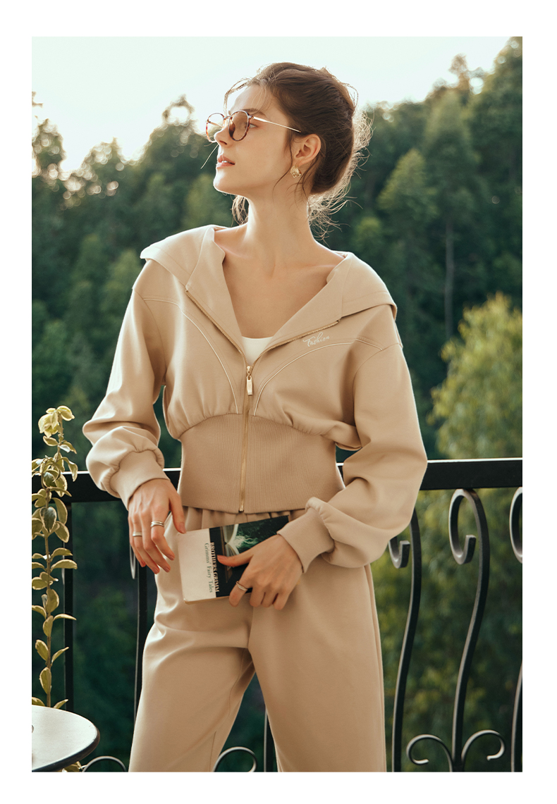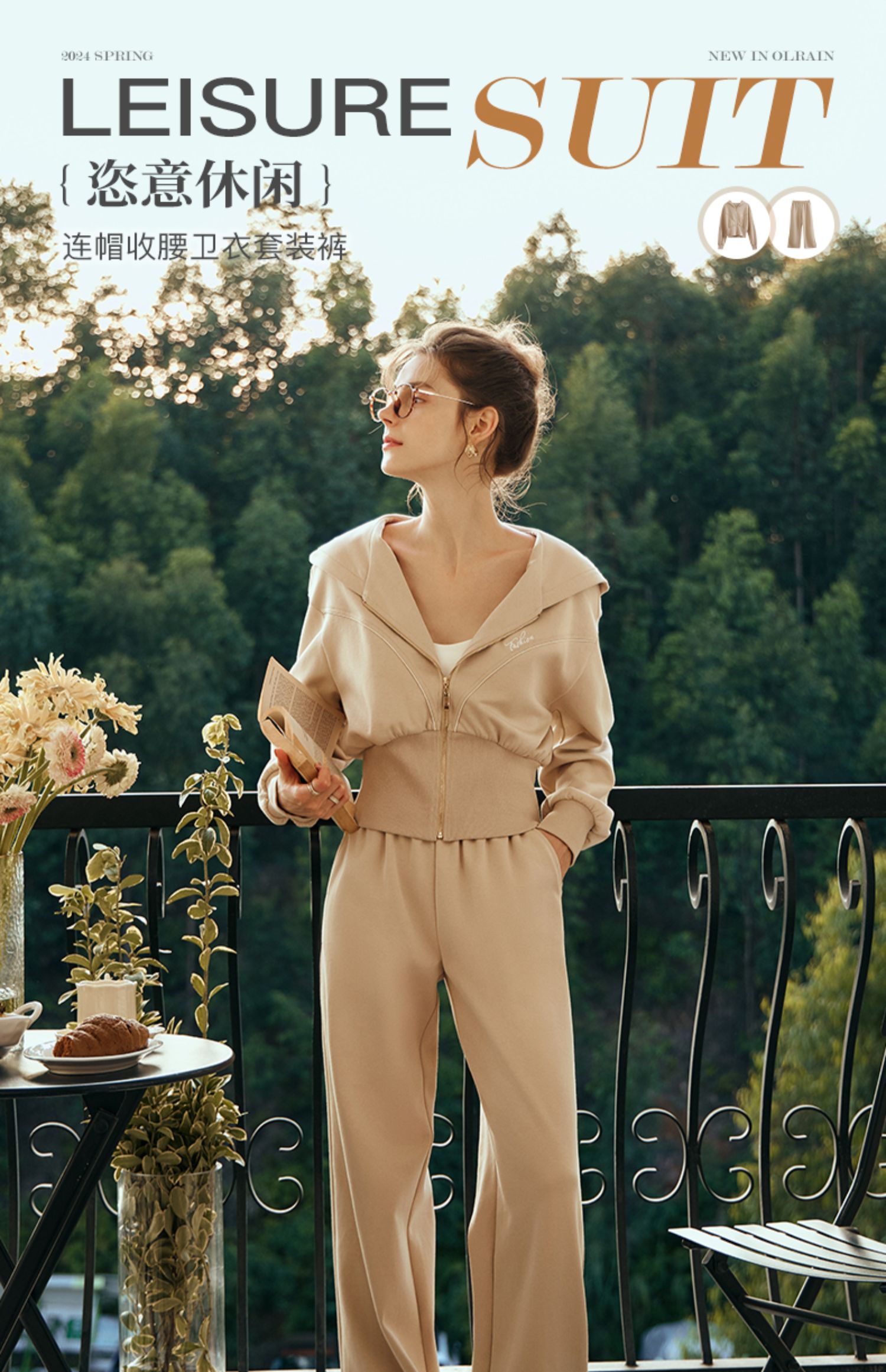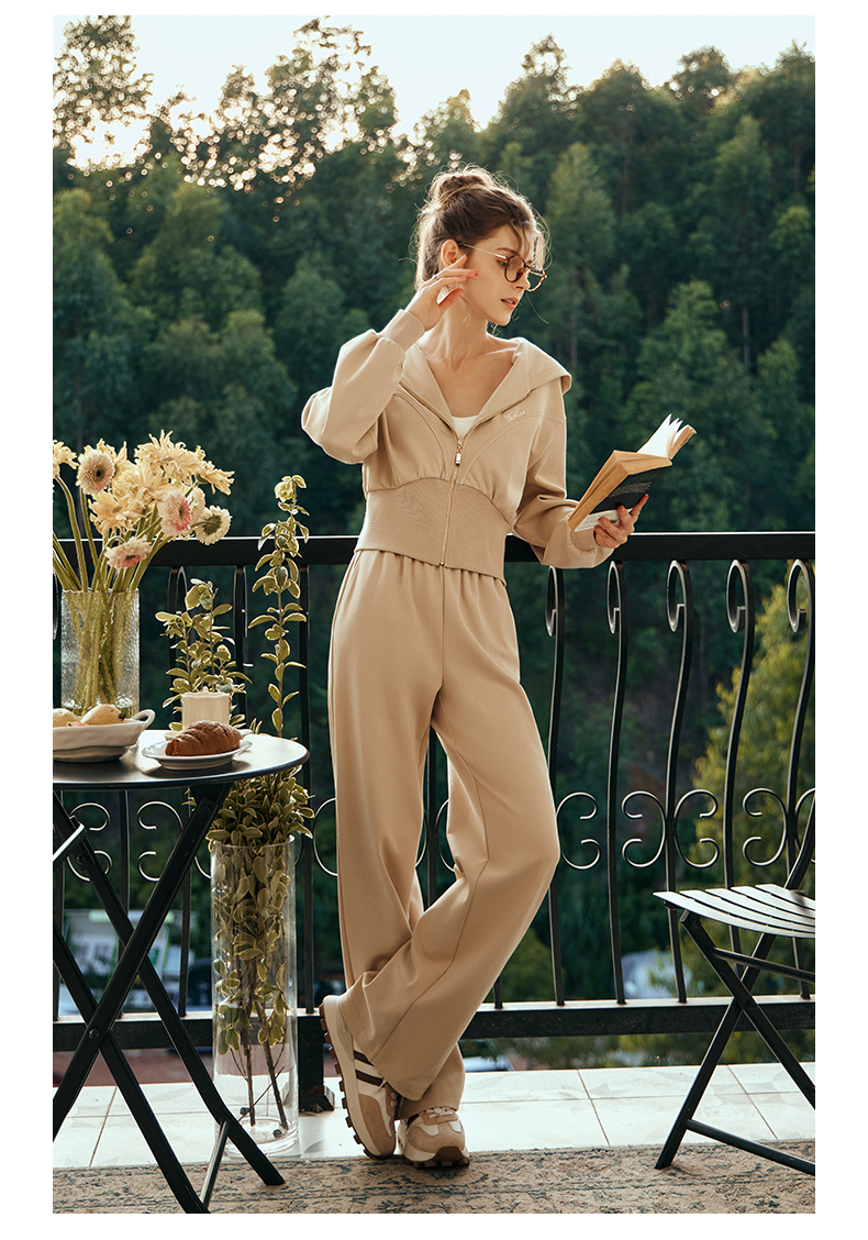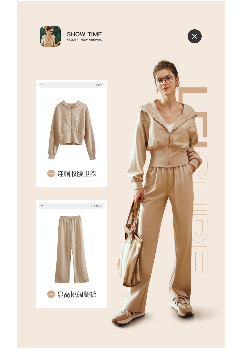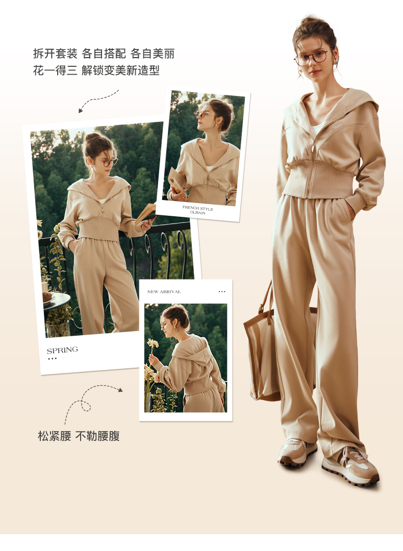 OLrain欧芮儿奶茶色时尚套装女早春2024新款时尚百搭轻运动两件套
