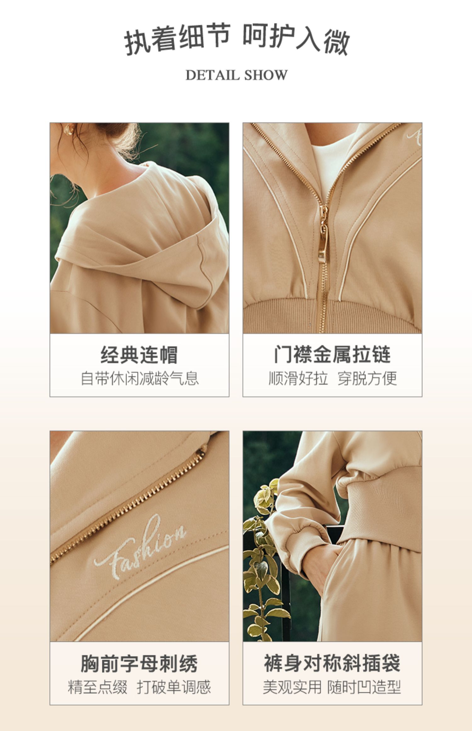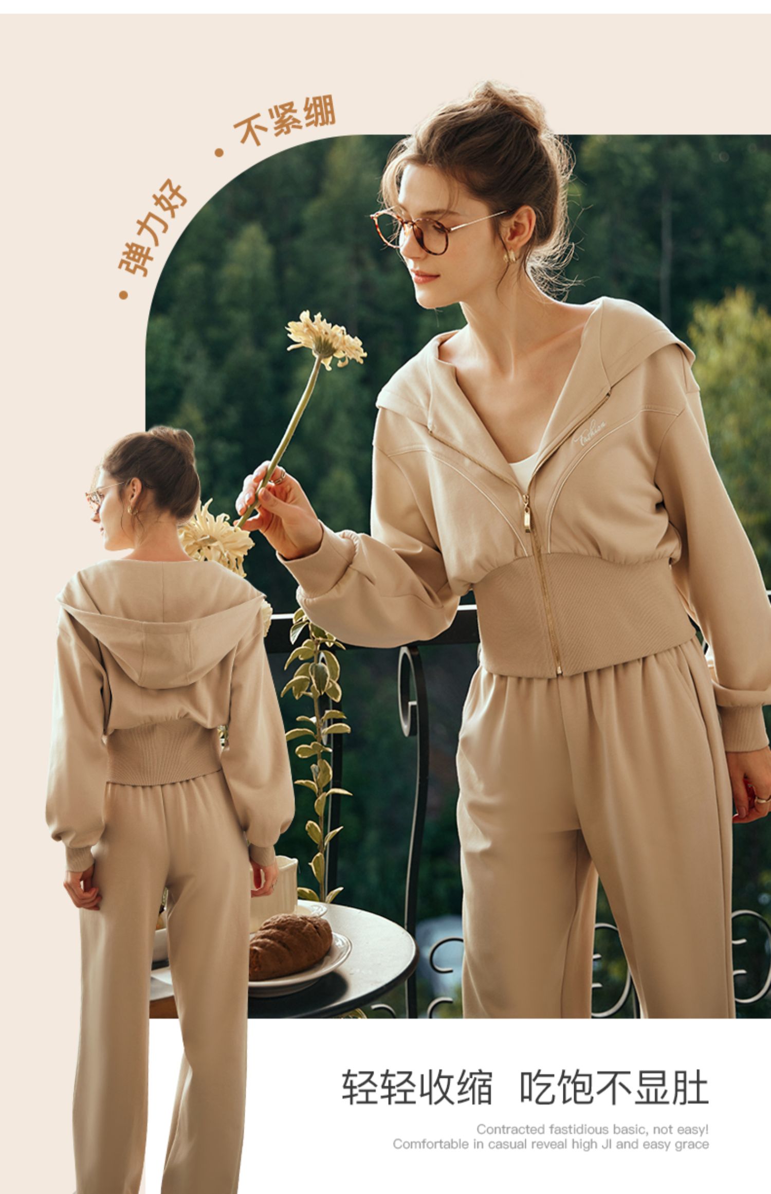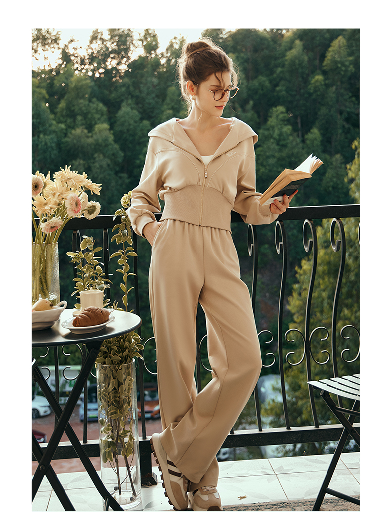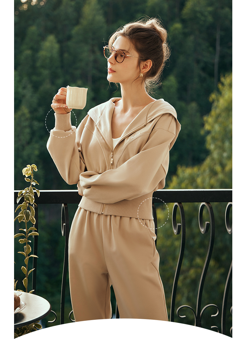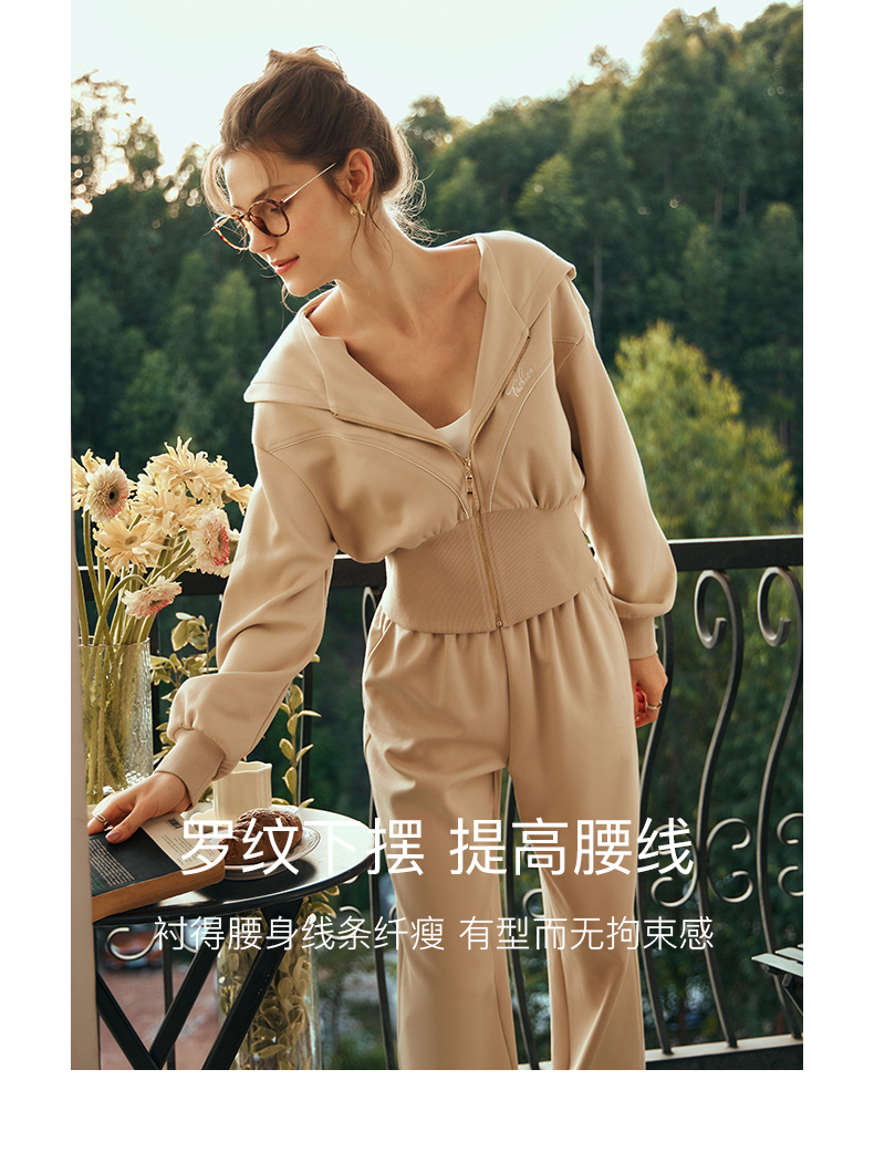 OLrain欧芮儿奶茶色时尚套装女早春2024新款时尚百搭轻运动两件套