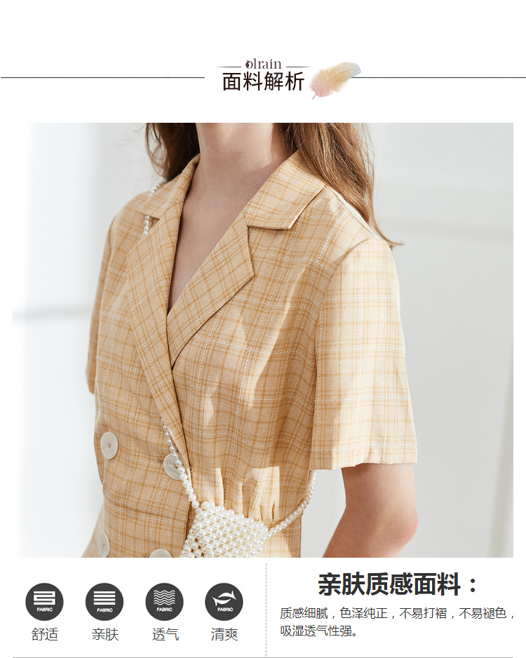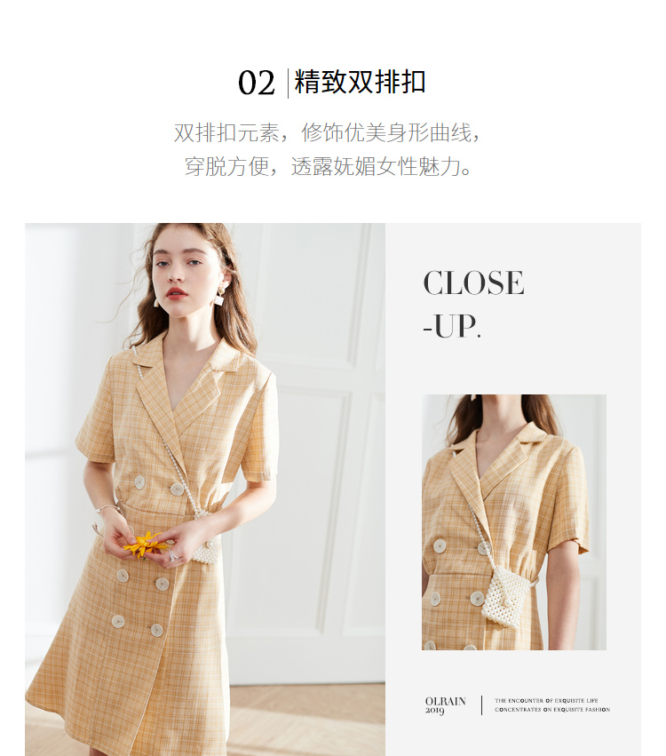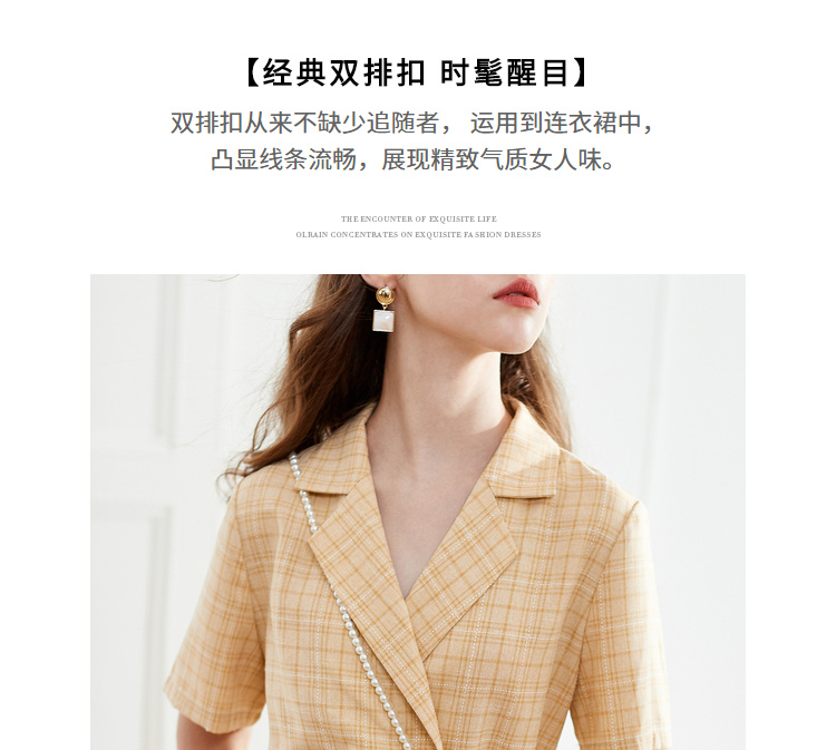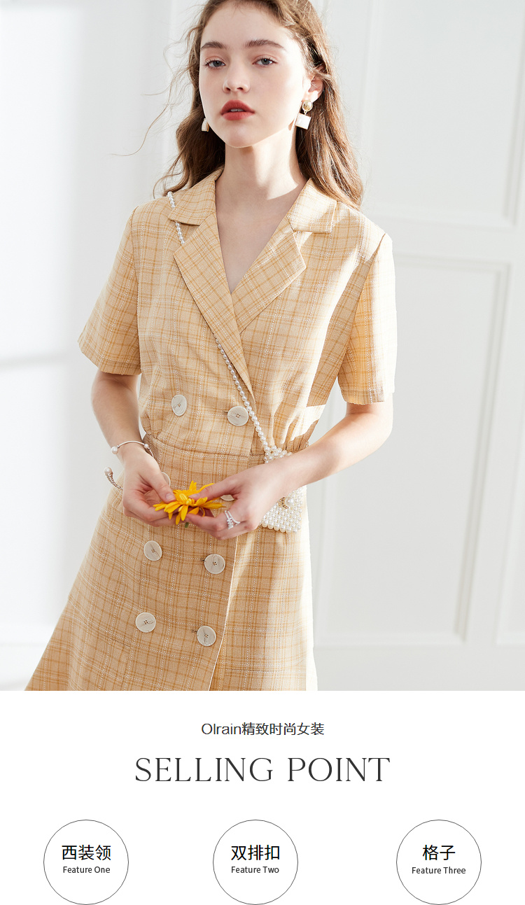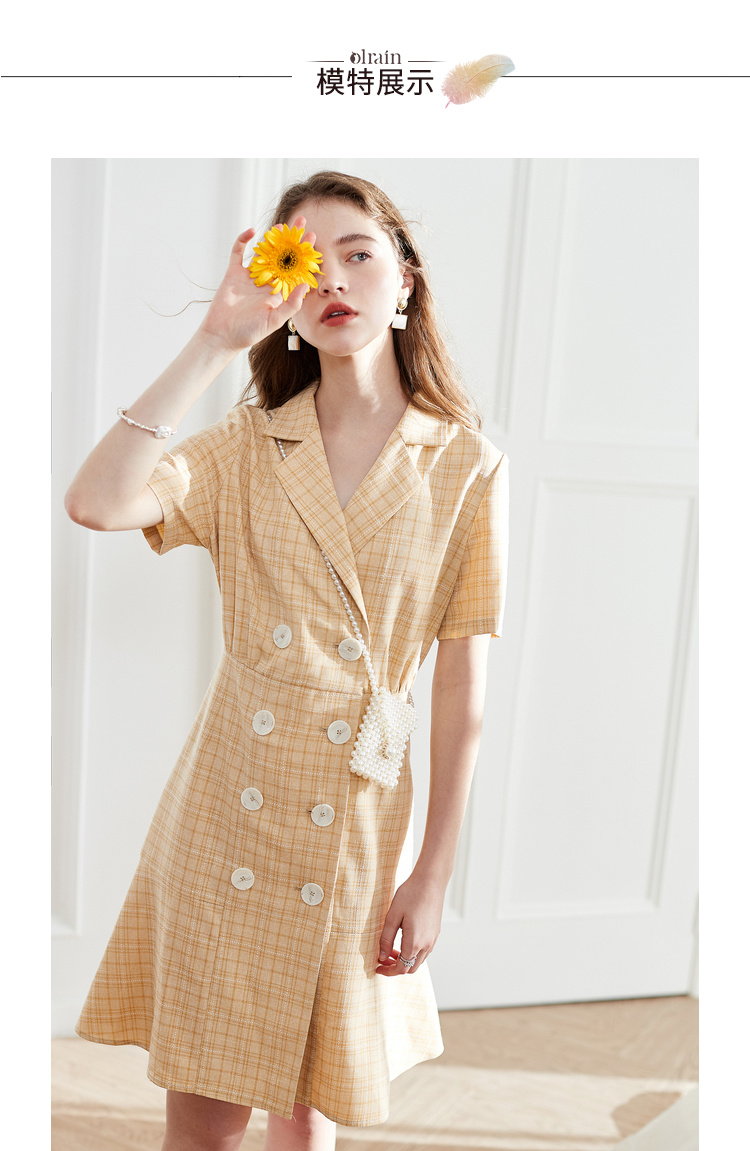 OLrain法式高级穿搭西装格子连衣裙女夏季2022时尚气质收腰裙