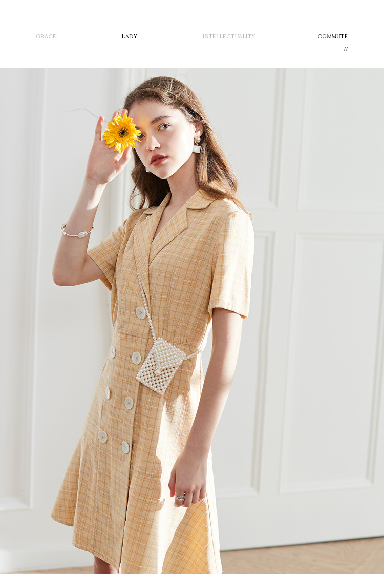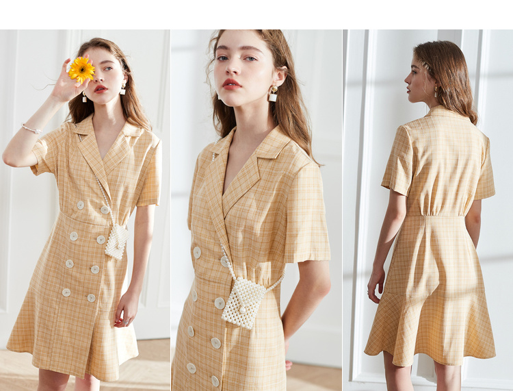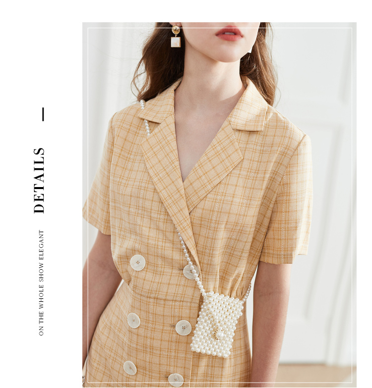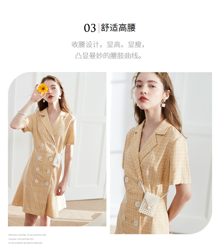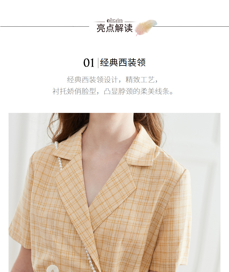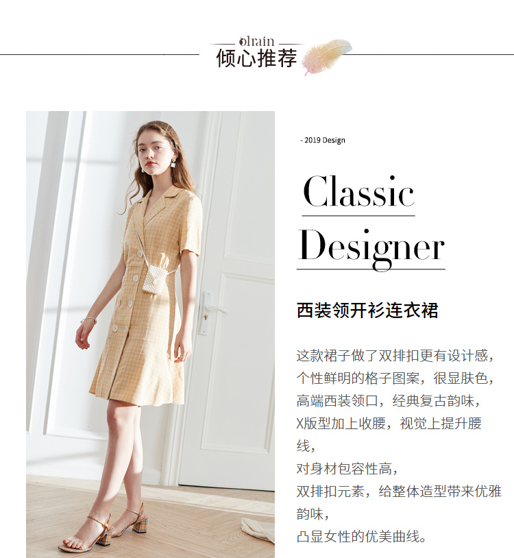 OLrain法式高级穿搭西装格子连衣裙女夏季2022时尚气质收腰裙