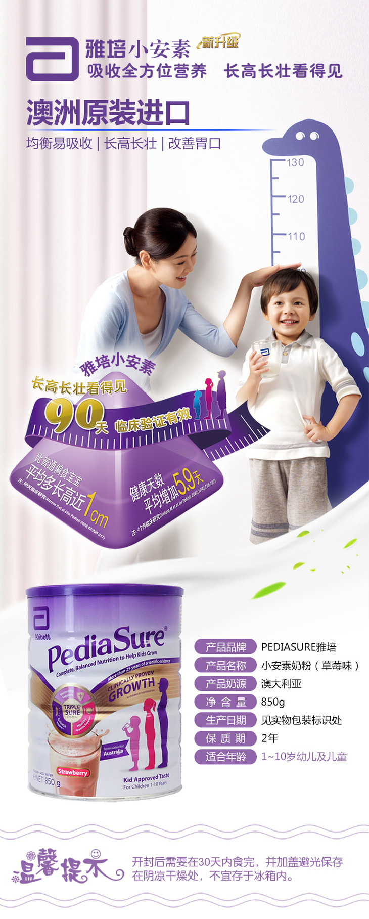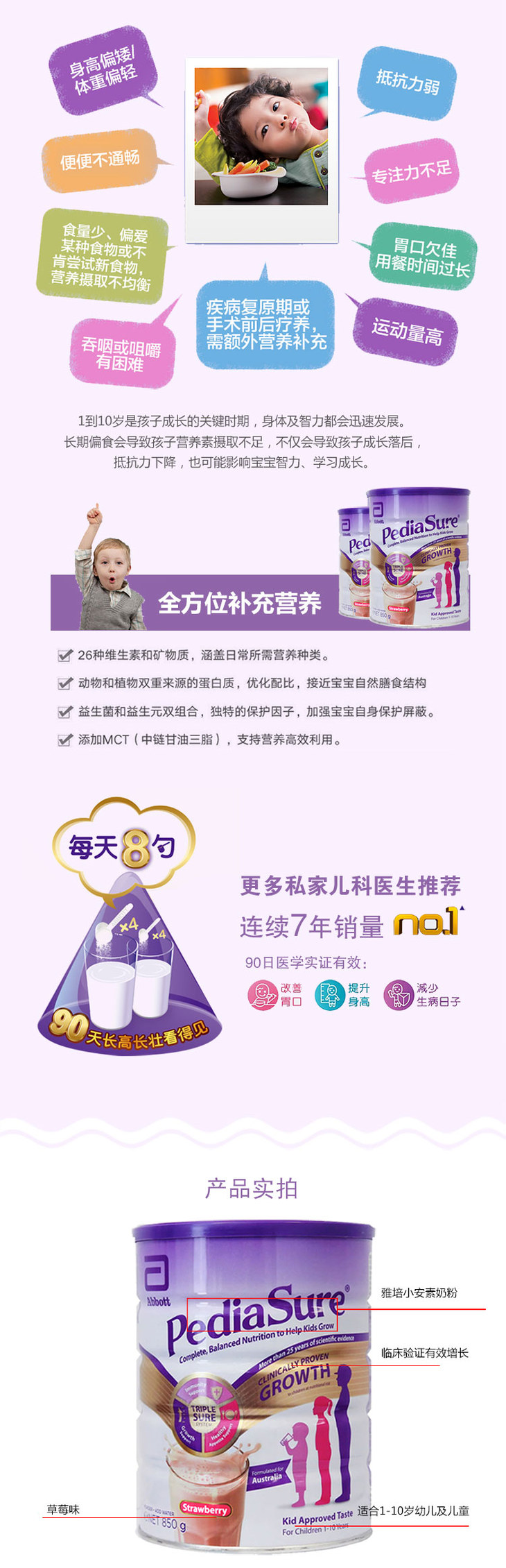 澳洲PediaSure雅培小安素营养粉奶粉草莓味