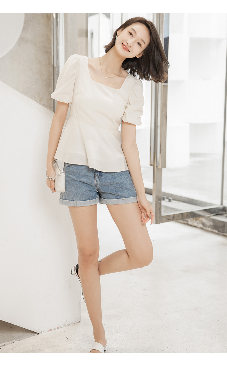 oldcolour纯色T恤春季新款设计感圆领长袖短款上衣女P12023234