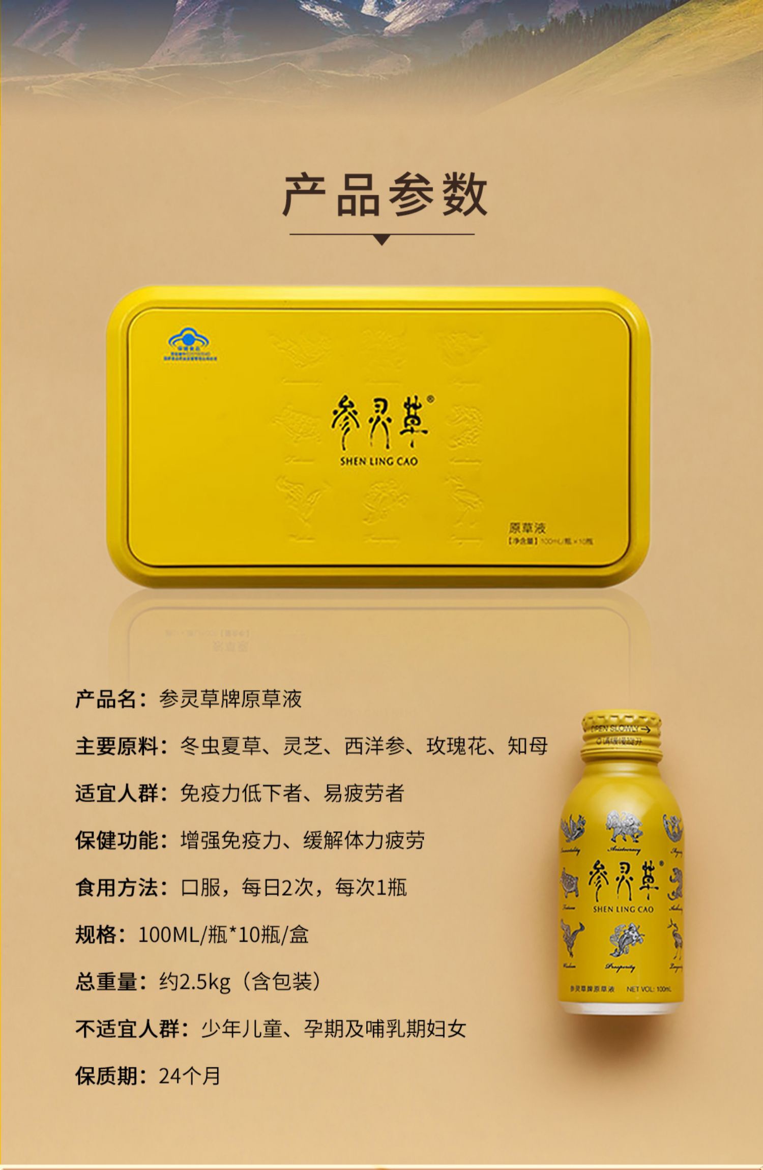 江中参灵草原草液冬虫夏草10瓶礼盒增强免疫力