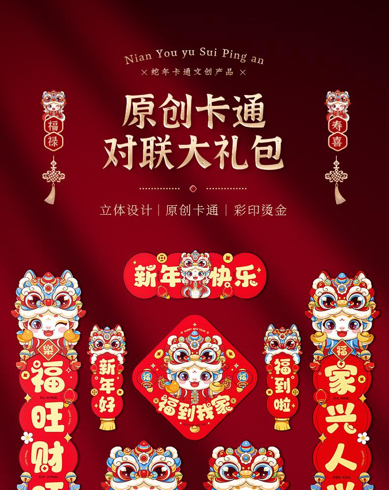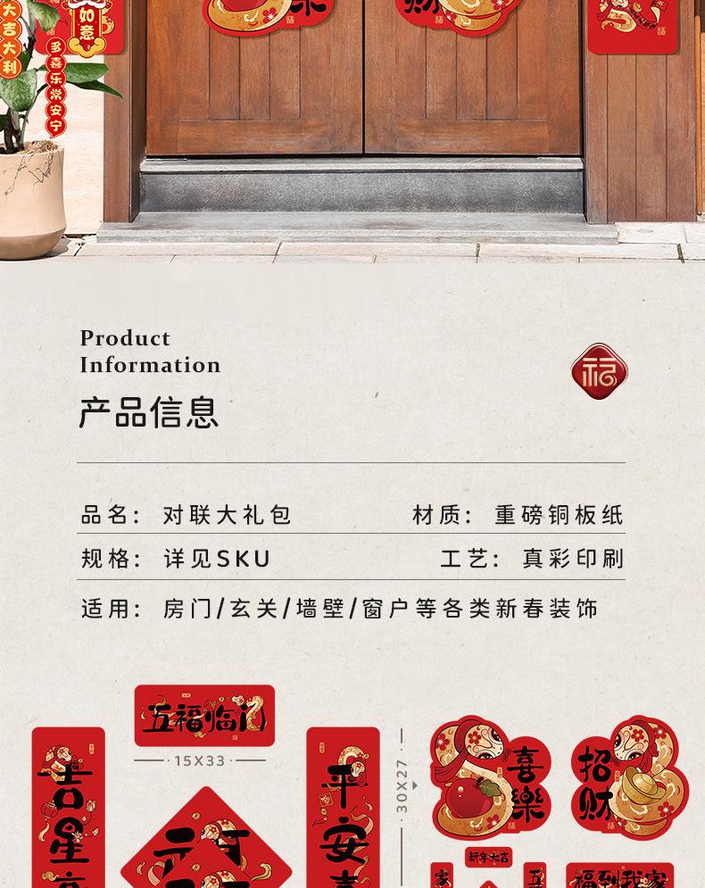 2025春节蛇年春联对联大礼包过年门联福字窗花红包套装